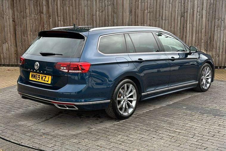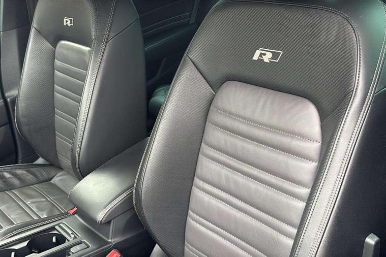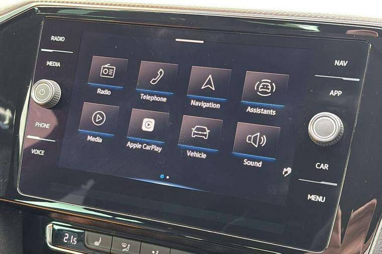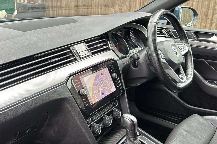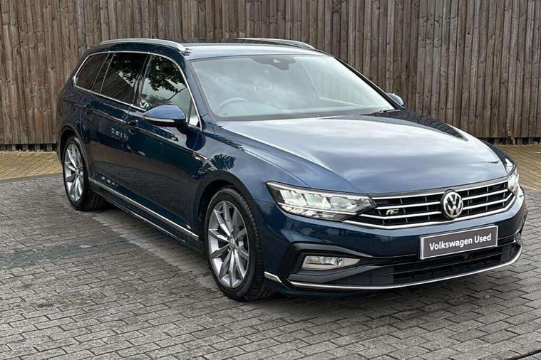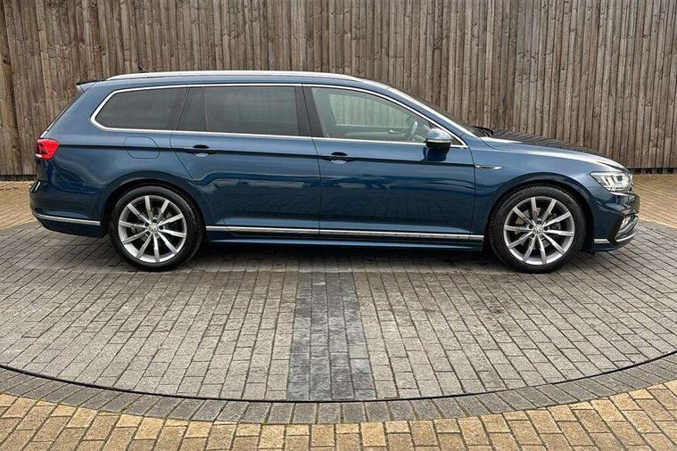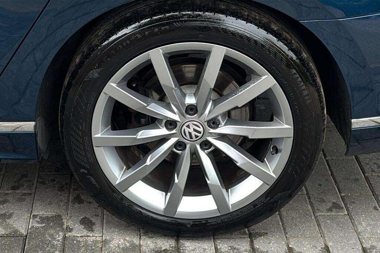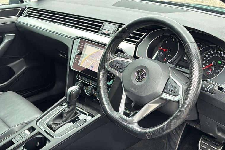 Adaptive cruise control including Front Assist, radar sensor controlled distance monitoring system, City emergency braking system, Driver alert system, Driver profile selection, Exterior temperature gauge with frost alarm, Lane assist, Low washer fluid warning light, Multifunction computer includes visual gear, One touch indicator turn signal, Proactive occupant protection, Security and service including e-call, Speed sensitive power steering, Speedo and rev counter, electronic odometer, trip, service interval display and fuel gauge, Start/Stop function, Traffic jam assist, Warning buzzer and light for front seatbelts unfastened, Wireless app connect, Battery regeneration during braking, Diesel particulate filter, Misfuel prevention device, Aerial for radio integrated into rear windscreen, DAB Digital radio receiver, Auto dimming interior rear view mirror, Automatic headlights with dusk sensor, Automatic leaving home and manual coming home lighting functions, Black radiator grille with chrome louvres, Body colour bumpers, Body colour door handles, Body coloured door mirrors with intergrated indicators, Chrome side window surrounds, Front and rear electric windows, Fully galvanised body, Gloss black finish on B pillar, Heated rear window, Heated windscreen washer jets, High level 3rd brake light, LED rear lights, LED rear number plate lights, Plastic load sill protection, Rain sensor, Rear tinted glass from B pillar backwards, approx 65% tinted, Rear window wash/wipe, Remote electrically adjustable and foldable heated door mirrors including automatic dimming function on drivers side door mirror puddle lights, Silver anodised roof rails, Warning lights for open tailgate and doors, White instrument lighting, 12V socket in front centre console, 12V socket in luggage compartment, 40:20:40 split folding rear seat backrests, Black roof lining, Carbon optic side bolsters, Climate control - 3 Zone electronic air conditioning with automatic air recirculation, Driver's door storage compartment for 1.0 litre bottle, Extending luggage compartment cover with convenience opening, stowable, Front and rear interior lighting with delay and dimming function, Front centre armrest with storage compartment and two rear air vents, Front cupholders x2 with covers, Front passenger storage compartment for 1.5 litre bottle, Front seats with embroidered R Line logo on backrest, Heated front seats, Height adjustable and removable variable boot floor, Height adjustable rear seat head restraints (x3), Height/reach adjust steering wheel, Illuminated vanity mirrors, Isofix child seat preparation, outer rear seats, Load lashing points x 4 in luggage compartment, Load through provision, Lockable, illuminated, cooled glovebox, Luggage compartment lighting, Nappa leather upholstery, Rear seat centre armrest with storage compartment, Stainless steel pedals in clutch, brake and accelerator, Storage compartment in rear doors, Storage compartment in roof console with cover, Unique R Line door sill protectors, Unique R Line front and rear carpet mats, Easy open package with full electric tailgate/ boot - Passat (Estate), R line styling pack - Passat (Estate), 3x3 point rear seatbelts, ABS (Anti locking brake system) includes BAS (Brake assist) and EBD (Electronic brake pressure distribution), Automatic post collision braking, Disc brakes front and rear, Door open warning reflectors, Driver/Front Passenger airbags, Drivers and front passengers safety optimised head restraints, longitudinal and height adjustable, Drivers knee airbag, Electronic parking brake with auto hold, First aid kit, Front airbags with deactivation switch, Front and rear passenger curtain airbags, Front side impact airbag, Height adjustable front 3 point seatbelts + pretensioners, Hill hold function, Pre crash preventive occupant protection, Rear seat side impact airbags, Rigid safety cell with front and rear crumple zones, Volkswagen roadside assistance, Warning light for rear seat belts if unfastened, Alarm with interior protection and deactivation via infotainment system, Electronic engine immobiliser, Chrome air vent and instrument surround, Unique R Line dark diamond flag decorative inserts in dash and door panels,