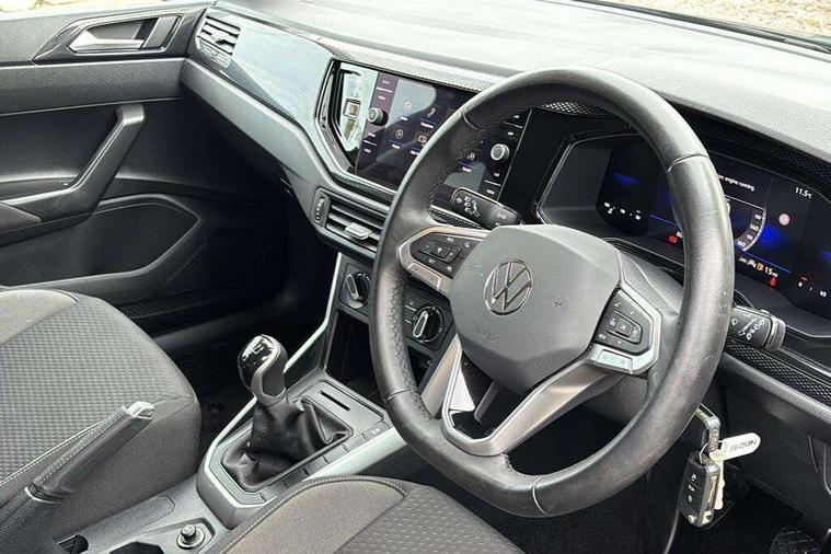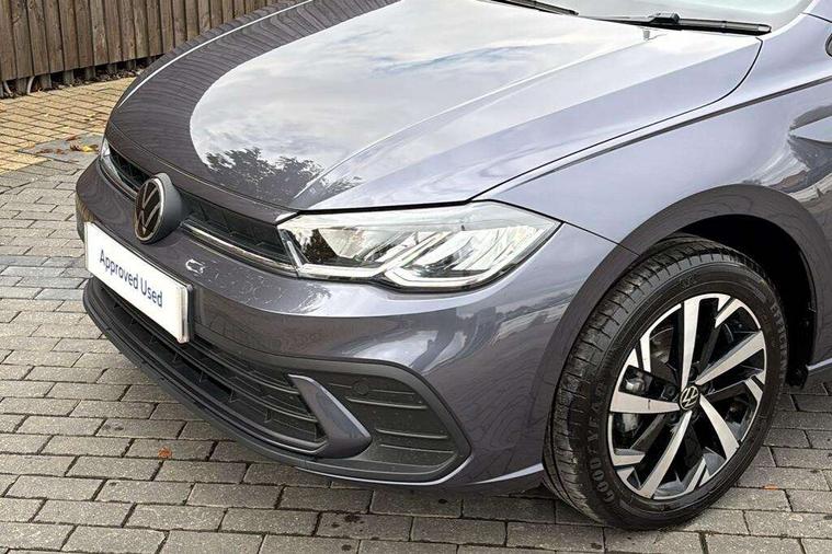 Adaptive cruise control without follow-to-stop and speed limiter, Advanced driver attention and drowsiness monitor, Bluetooth mobile phone interface, Dynamic road sign display, Emergency call service, Multifunction front facing camera for distance control, Park distance control, Power assisted speed sensitive steering, Preparation for navigation system with media and internet package, Preparation for We connect and We connect plus, Rear view camera, Speedo and rev counter, electronic odometer, trip, service interval display and exterior temperature gauge, Standard rear axle, Travel Assist - Lane keeping system and traffic jam assist, Travel assist including emergency assist, Trip computer, Warning signal and warning light for front and rear seatbelts not fastened, Washer fluid level indicator, Wireless app connect, Front wheel drive, Rear shock absorpion, Start-stop system with battery regeneration (recuperation - energy recovery during braking), DAB Digital radio, Diversity antenna for FM reception, Front and rear 6 speakers, Automatic dimming interior rear view mirror, Automatic headlight control with LED separate daytime running lights with coming/leaving home function, Body colour bumpers with chrome inserts, Body colour door handles, Body colour door mirrors, Electric front windows, Engine badge deletion, Headlight range adjustment, Heat insulating and laminated safety glass windshield, LED Headlights, LED rear combination lamps, Power folding adjustable/heated exterior mirrors and front passenger exterior mirror lowering function, Rain sensor, Rear electric windows, Rear fog light, Rear side wing doors, Rear tinted glass from B-pillar backwards approx 65% tinted, Rear windscreen washer and wiper with interval delay, Third brake light, 12V power socket in centre console, 2 front and 2 rear reading lights with switch off delay and dimmer, 2 USB-C ports in the front, 2 USB-C charging sockets on the center console in the rear, 3 rear head restraints, 60/40 split folding rear seat and rear seat bench not split, Ceramique roof lining, Chrome plated radiator grille inserts, air vent surrounds and light switch surrounds, Door and side trim panel, Driver and front passenger seat height adjustment, Driver/passenger sunvisors with illuminated vanity mirrors, Front centre armrest, Front seat backrest storage pockets, Front standard seats, Handbrake lever handle in leather, Hartley/Thomas cloth upholstery, Headliner in recycled material, Isofix child seat preparation easy-fit (for two outer rear seats, and front passenger seat) compatible with I-size, Leather trimmed gear knob, Luggage compartment cover, Luggage compartment lighting, Removable luggage compartment floor, Single front passenger seat, Standard climatic zones, Standard pedal cluster, Three spoke leather wrapped multifunction steering wheel, Light and vision pack - Polo, 3 point height adj front seatbelts + pretensioners, 3 point seat belt for centre rear seat, 3 point seatbelts, outer rear with ECE lable, ABS, Driver and front passenger airbag with front passenger airbag deactivation, Drivers and front passengers safety optimised head restraints, ESC (Electronic stability control) + EDL (Electronic Differntial lock) and ASR (Traction control), Extended and predictive pedestrian/ cyclist protection, Front assist with autonomous emergency braking (for Adaptive Cruise Control ACC up to 130 mph), Front curtain and side airbags with center airbag, Front disc brakes, Hill hold control, Manual child lock in rear doors, Rear drum brakes, Single tone horn, Tyre pressure loss indicator, Alarm with interior protection, Anti-theft alarm system with interior monitoring, backup horn, and towing protection, Anti-theft wheel bolts, Electronic engine immobiliser, Lava stone black gloss/matt decorative inserts in dash and front door panels, 16" Torsby alloy wheels, Low rolling resistance tyres,