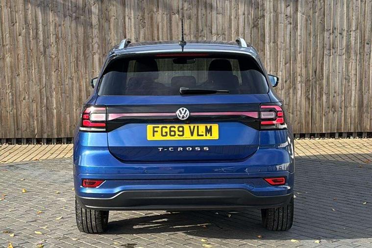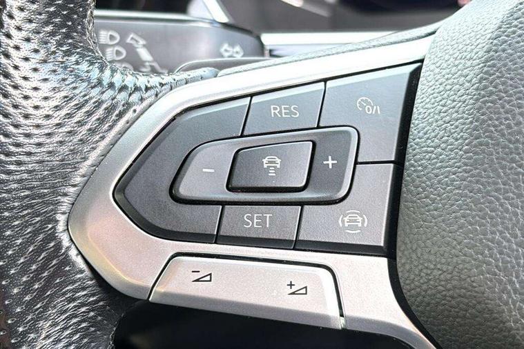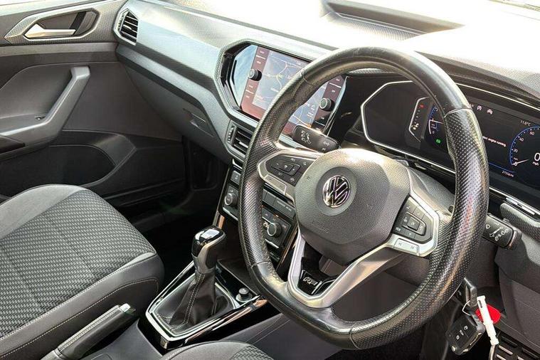 'Lights On' Reminder warning buzzer, Active Info display 10.25" high resolution TFT dash display with customisable menu and information, Adaptive cruise control including front assist, radar sensor controlled distance monitoring system, city emergency braking, cruise control/speed limit, Car-Net App-Connect with VW media control, Discover navigation system with 8.0" colour screen, radio/CD player, European map data, Driver alert system, eCall emergency call system, Lane assist with blind spot plus lane keeping system, Multifunction computer with visual gear change recommendation for fuel consumption, Power assisted speed sensitive steering, Progressive steering, Side scan blind spot detection, Speedo, rev counter, electronic odometer, trip, service interval display, exterior temperature and fuel gauge, Stop/start system, Warning sound and light for doors and tailgate open, Warning sound and light for front seatbelts unfastened, Battery regeneration during braking, Misfuel prevention device, 2 USB sockets in rear, Composition Media with 8"colour touch screen including DAB/CD drive, MP3/WMA, AUX-in/SD slot, 1 USB port and Bluetooth telephone connectivity, Multi device interface (MDI) with USB connection, Premium USB cable for Apple or Android smartphone compatibility, Simultaneous pairing of 2 compatible mobile devices, Title and cover art display, Automatic dimming interior rear view mirror with rain sensor, Automatic hazard lights activation under emergency braking, Body colour door handles, Body colour door mirrors with integrated indicators, Body colour rear roof spoiler, Body coloured bumpers, Dusk sensor, Front and rear electric windows, Front fog lights with static cornering function, Galvanised body, Heated rear window, High level 3rd brake light, LED headlights with auto range adjustment + LED daytime running lights, Lower door sills and door pillars in black, Manual coming/automatic leaving home lighting function, Radiator grille with chrome lamelel and bumpers in wagon paint, Rear tail lights LED except turn signals, Rear tinted glass 65% approx light absorbing from B pillar backwards, Rear window aerial, Rear windscreen washer and wiper with interval delay, Reflectors in all doors, Silver roof rails, Stainless steel door sill protection, Tailgate with integrated roof spoiler, Unique R Line badging, Windscreen wipers/ intermittent wipe + 4 position delay, 12V Accessory socket in centre console, 2 Front and rear reading lights incorporating LED technology, 2 Zone electronic climate control with automatic air recirculation, 3 rear head restraints and 3 rear three point seat belts with ECE label, 60/40 split folding rear seat backrest, Aluminium pedals, Black headlining, Carbon flag cloth upholstery, Drawer under drivers seat, Driver and front passenger sunvisor with vanity mirror, Driver's sunvisor with ticket holder, DSG Paddle Shifts, Dust and pollen filter, Front + rear carpet mats, Front centre armrest with storage compartment and two rear air vents, Front comfort seats, Front seat back storage pockets, Front seat R Line logo with rear seat backrest, Front sports seat with height and lumbar adjustment, Glovebox, Heating and fresh air system with 4 stage blower, Height/reach adjust steering wheel, Instrument lighting white adjustable panel illumination, Interior light with delay, Isofix child seat preparation for 2 rear child seats, Luggage compartment cover, Luggage compartment lighting, Moveable and foldable Rear bench seat, Removable luggage cover, Storage compartment in driver and passenger doors, Three spoke multi-function leather trimmed steering wheel and gearknob, Variable boot floor, R Line styling pack - T-cross, 3 point seat belt with electric pre tensioner, Anti-lock Braking System (ABS) with Hydraulic Brake Assist (HBA), Automatic post collision braking system, Driver and front passenger safety-optimised head restraints, Drivers and Front Passengers airbags with front passengers airbag deactivation switch, ESC with EDL, ASR, EDTC and trailer stabilisation function, Extended and proactive pedestrian protection, Front and rear curtain airbags, Front seat side impact airbags, Front ventilated disc brakes and rear disc brakes, Height adjustable 3 point automatic front seatbelts with pretensioners, Hill start assist, Pre crash preventive occupant protection, Rigid safety cell with front and rear crumple zones, Tyre pressure loss indicator, Volkswagen roadside assistance, Alarm with remote central locking and interior protection, Central locking without safe fuse with radio remote control and 2 radio folding keys, Child security locks in rear doors, Electronic engine immobiliser, Remote tailgate unlocking using key fob, Race decorative inserts in dash and doors, 18" Nevada black alloy wheels + anti theft wheel bolts,