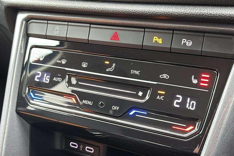 10.25" Digital cockpit pro, Bluetooth mobile phone interface, Driver alert system with fatigue detection, Driver tips and journey analysis, Emergency call service, Lane keeping system Lane Assist, Modified key software - reduce switch off time for key status change to Long no motion, Online services, Park assist including front and rear parking sensors, Service interval indicator, Tailgate/trunk lid release from outside, Think blue trainer driver tips and journey analysis, Warning sound and light for front seatbelts unfastened, Wireless app connect, Battery regeneration during braking, Start/stop function with battery regeneration, Diversity antenna for FM reception, Front and rear 6 speakers, Music playback - MP3, WMA and AAC files, Premium USB cable in choice of either Apple or Android smartphone compatibility, SD card slot, Simultaneous pairing of 2 compatible mobile devices, Title and cover art display, We Connect and We Connect Plus functionality, 3rd brake light, Auto dimming interior rear view mirror, Automatic hazard lights activation under emergency braking, Automatic headlight control with LED separate daytime running lights with coming/leaving home function, Body colour sports bumpers with silver metallic underbody fascia, Dynamic headlight range control with self adjusting whilst driving, Extended roof spoiler, Exterior mirrors aspherical on driver side, convex on front passenger side, External USB type C socket and charging sockets, Front windscreen wiper with intermittent wipe and 4 position delay, Heated rear window, LED Plus headlamps, LED rear combination lamps, LED rear number plate lights, LED tail lamp rear comination lamps, Light mode for poor weather, rain, fog or snow, Power windows with comfort operation and circuit breaker, Rain sensor, Rear exhaust tailpipe, Rear fog light on one side and reversing lights on both sides, Rear side wing doors, Rear wash/wipe with intermittent wipe setting, Remote electrically foldable door mirrors, puddle lights and reverse activated passenger's door mirror, 12V power socket in centre console, 3 rear head restraints, 3 seat bench in 2nd row, 4 load lashing points in luggage compartment, Air care climatronic air conditoning system with active combination filter and 2-zone temperature control, Chrome plated radiator grille inserts, air vent surrounds and light switch surrounds, Door and side trim panel with leatherette insert, Drawer under drivers seat, Front + rear carpet mats, Front centre armrest, Front comfort sports seats, Front cupholders x 2, Front footwell illumination, Instrument lighting, white adjustable panel illumination, Interior ambient lighting and surround lighting, Interior light delay, Isofix child seat preparation, Leather gearshift handle, LED interior light with switch off delay/dimmer and 2 front/rear LED reading lights, Load-through provision with cup holder when folded down ('Unsplit rear seat bench, split folding backrest, with centre armrest), Luggage compartment lighting, Non-folding front passenger seat backrest, Single front passenger seat, Storage compartment in left and right luggage area, Storage compartment in rear doors, Storage compartments in driver and front passenger doors, Sunvisors with illuminated vanity mirrors, Variable boot floor, height adjustable and removable, Driver assistance pack without proactive passenger protection - T-Roc, 3 point height adj front seatbelts + pretensioners, 3 point seatbelts in outer rear with ECE label, ABS, Child locks on rear doors, Driver and front passenger airbag with front passenger airbag deactivation, Driver and front passenger safety-optimised head restraints, Drivers seatbelt reminder, Electronic parking brake, Electronic Stability Control (ESC) inc EDL (Electronic Differential Lock) and ASR (Traction Control), Front and rear passengers curtain airbag system including front side airbags, Front assist with city emergency braking and pedestrian monitoring, Front seat side impact airbags, Predictive pedestrian protection, Rear disc brakes, Single tone horn, Tyre pressure loss indicator, Volkswagen roadside assistance, Alarm with interior protection, Anti-theft alarm system with interior monitoring, backup horn, and towing protection, Remote central locking with SAFELOCK, radio remote control with 2 remote control folding keys, Trims for alloy wheels,