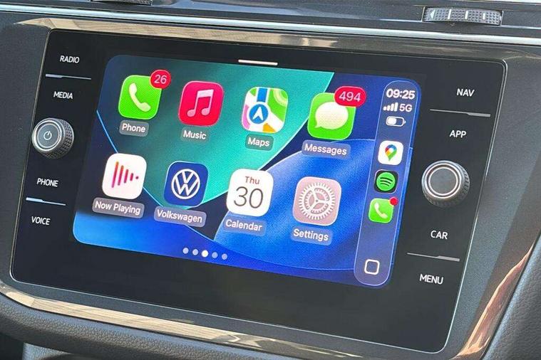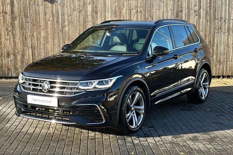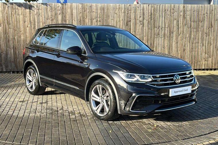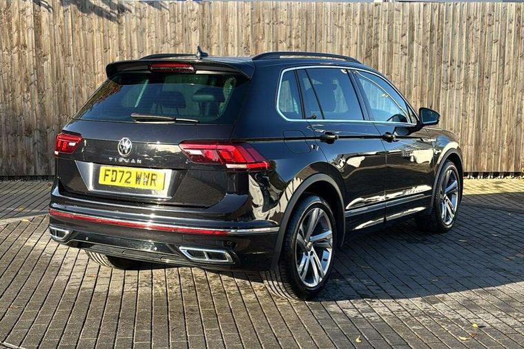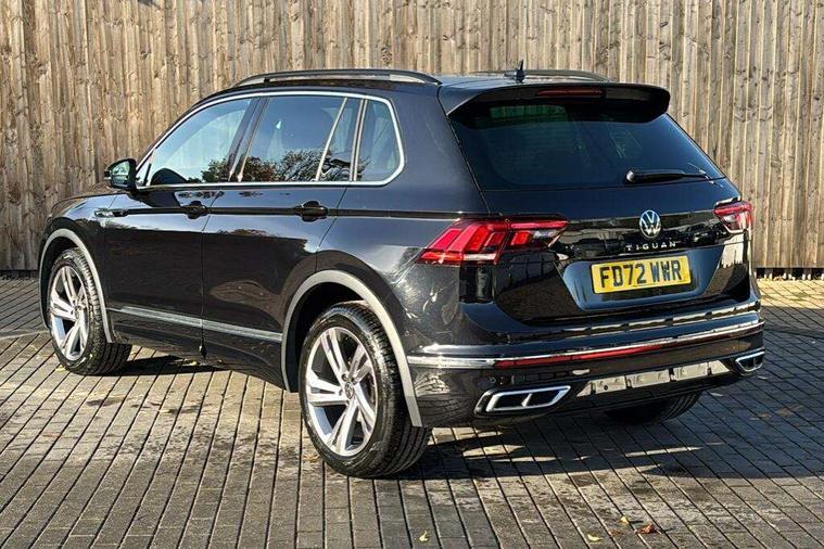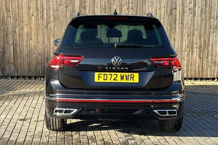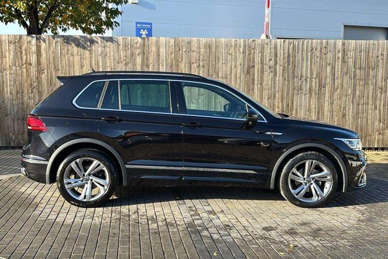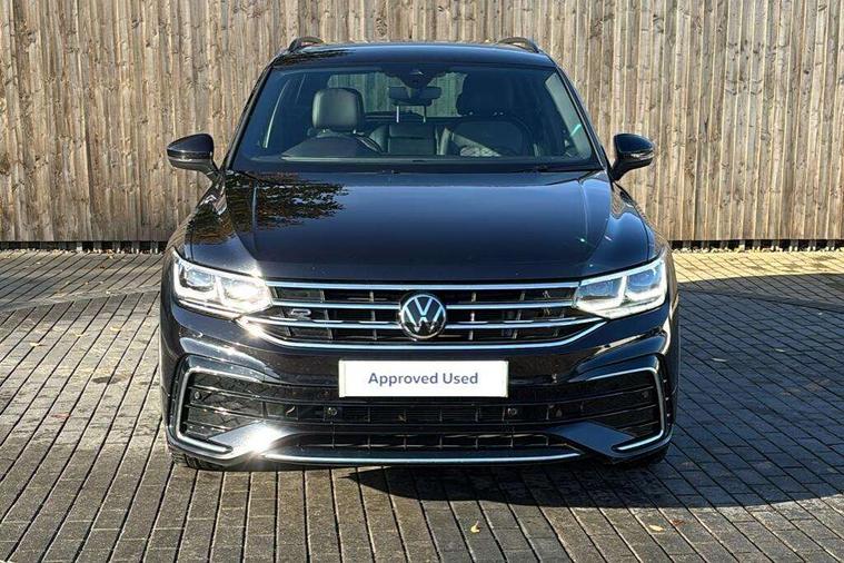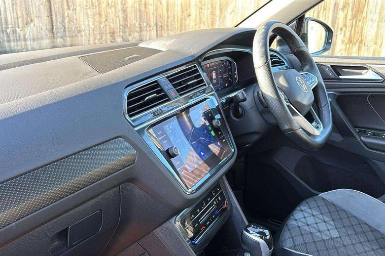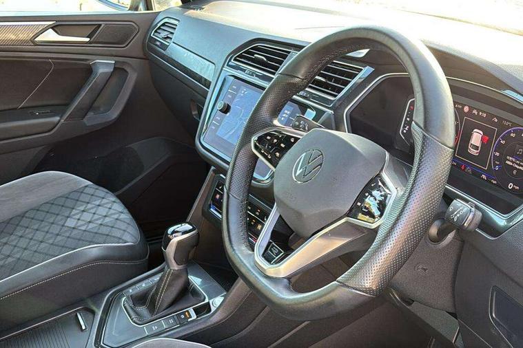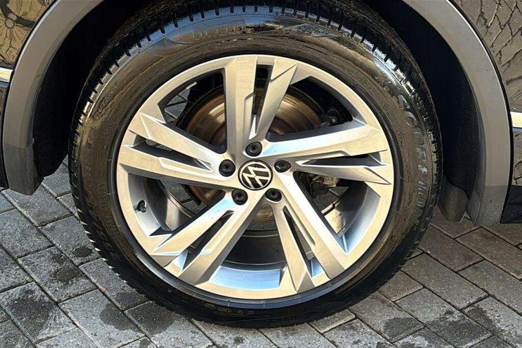 Adaptive cruise control ACC stop and go including speed limiter, App-Connect incl. App-Connect Wireless for Apple CarPlay and Android Auto, Bluetooth phone integration system, Comfort drive travel assist, Digital cockpit pro, Driver alert system, Driver profile selection, Dynamic road sign display, eCall emergency call system, Electromechanical speed sensitive power steering, Emergency assist, Front and rear parking distance sensors, Instrument cluster mph speedometer Great Britain, Lane keeping system Lane Assist, Lights on warning, Multifunction front facing camera, Outside temperature display, Premium multifunction display with multi colour display, Preparation for subsequent activation Navigation feature Discover Media includes Streaming and Internet, Remote control boot opening, Rev counter, Service interval indicator, Speed limit display, Start/stop system with regenerative braking, Tailgate/trunk lid unlocking from outside, Trip computer, Warning sound and light for doors and tailgate open, Battery regeneration during braking, Sports suspension, 8 Speakers, Digital radio reception DAB+, Diversity antenna for FM reception, Radio, Auto dimming interior rear view mirror, Automatic headlight control system, Body colored bumpers in R-Line style, Body colored exterior mirror housings, Body colour door handles, Chrome moldings on the side windows, Coming/leaving home lighting function, Dynamic headlight range control, Front and rear electric windows, Heated rear window, High level 3rd brake light, Laminated safety glass windshield, heat and sound insulating, LED headlamps with LED separate daytime running light and dynamic cornering light, LED rear combination lamps, LED rear number plate lights, License plate carrier in front and rear, Poor weather light and cornering light, Power adjustable, folding and heated door mirrors with surround lighting, front passenger exterior mirror lowering function, Privacy glass for rear side windows and rear window, R Line body kit, R Line side sills, Rain sensor, Rear exhaust tailpipe, Rear fog lamp, Rear side wing doors, Rear spoiler in R style, Rear windscreen washer and wiper with interval delay, Side and rear windows in heat insulating glass, Trailer Stability Programme, Unique R Line badging, Windscreen wipers/ intermittent wipe + 4 position delay, 12V outlet in center console rear and in luggage compartment, 12V outlet in front and tray, 2 LED front reading lights, 2 LED rear reading lights, 3 bench rear seats in 2nd row, 3 rear headrests, Air Care Climatronic 3 zone automatic climate control with enhanced air filter and controls in the rear, Art Velours greyson sports cloth upholstery, Backrest release for left front seat, Black headlining, Brushed stainless steel pedals and footrest, Carpet mats in front and rear with decorative stitching in Gray, Climate control unit rear with touch function, Door and side trim panel in foam film, insert in leatherette, Driver + front passenger lumbar support, Front footwell illumination, Front scuff plates in aluminum with R-Line logo, Front seats head restraints (x-adjustment), Height adjustable front seats, Height/reach adjust steering wheel, Isofix Preparation 2 Rear child seats, Leather gear knob, Rear bench seat asymetrically split folding, longitudinally movable and folding with load-through hatch and center armrest, Remote unlocking for rear seat backrest, Single front passenger seat, Sun visors with illuminated vanity mirrors, Top front comfort seats, Winter pack - Tiguan, 3 point seat belt for centre rear seats, 3 point seat belts with seat belt pretensioners for the outer rear seats, Curtain airbags for front and rear passengers, Driver/Front Passenger airbags, Drivers knee airbag, Electronic parking brake with auto hold, Electronic Stability Control with driver steering recommendation, ABS, ASR, EDL, EDTC and trailer stabilization, Front assist with autonomous emergency braking (for Adaptive Cruise Control ACC up to 130 mph), Front disc brakes, Front passenger airbag deactivation, Front side airbags, Height adjustable front 3 point seatbelts + pretensioners, Manual child proof rear door locks, Pedestrian monitoring system, Proactive passenger protection system in combination with front assist, Rear disc brakes, Two tone horn, Tyre pressure loss indicator, Warning sound and light for front seat belts if unfastened, Warning triangle, Anti theft alarm system with interior monitoring, backup horn and towing protection, Anti theft wheel bolts, Electronic engine immobiliser, Keyless locking and starting system keyless access with safelock, Chrome elements on the mirror switch power window switches and door pulls, Decorative inserts Carbon Gray for dashboard and front door trim panels, Interior door handle in matte chrome, 19" Valencia alloy wheels with AirStop tyres, Tool kit, Tyre mobility kit Includes 12V compressor and tyre sealant,