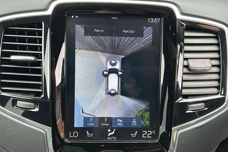 12.3" Active TFT crystal driver's instrument display, Adaptive cruise control with pilot assist, Bluetooth hands free telephone connection, Drive mode settings, adjustable steering wheel force + hill descent control, Forward collision warning, Handsfree power boot opening and closing, Lane departure warning with driver alert control, Oncoming Lane Mitigation, Service interval indicator, Speed dependant power steering system, Speed limiter, Touch screen centre multi info display, Trip computer, Voice control system, Volvo on call, Wireless internet connection, Active four C chassis - four corner adaptive dampers with electronic air suspension, Touring chassis, DAB Digital radio, Steering wheel audio controls, Active bending headlights, Adaptive brake lights, Auto dimming door mirrors, Auto dimming rear view mirror, Body colour bumpers, Cornering light, Dark tinted rear windows, Day time running light, Dual integrated exhaust pipes with high gloss black surround, Electric adjustable/heated/folding door mirrors, Front and rear electric windows, Headlamp cleaning system, Headlamp levelling, Heated front windscreen, Heated washer nozzles, High beam assist, High gloss black lower front bumper, High gloss black mesh grille, Home safe and approach lighting, Illuminated side steps, LED front fog lights, LED Headlights, Matt silver finish door mirrors, Puddle lights, Rain sensor windscreen wipers, Rear wash/wipe with intermittent wipe setting, Roof spoiler, Silk metal grille surround, Silk metal window trim, Silver roof rails, 12V Accessory socket in centre console, 12V power point in luggage area, 12V socket in rear tunnel console, 2 individual folding 3rd row seats, 3 individual folding 2nd row seats, A-pillar parking ticket holder, Ambient lighting in door panels, B Pillar ventilation, Black headlining, Bright metal luggage threshold, Centre console storage box, Driver/passenger lumbar adjustment, Driver/passenger sunvisors and illuminated vanity mirrors, Electric front cushion extensions, Electric memory driver's seat + door mirror memory, Electrically adjustable passenger seat with memory, Front and rear centre armrests with cupholders, Front footwell illumination, Front headrests, Front/rear reading lights, Gearshift paddles, Grocery bag holder, Heated front seats, Heated steering wheel, Height/reach adjustable steering column, Illuminated front and rear tread plates, Illuminated front cupholder, Illuminated front/rear door pockets, Illuminated glovebox with lock, Illuminated luggage compartment, Illuminated tailgate, Instrument panel illumination control, Isofix rear child seat preparation in 2nd row, Leather instrument panel and door tops, Load cover, Multicolour theatre lights, Outboard armrest with cupholder and storage for 3rd row, Passenger seat electric height adjuster, Perforated leather gearknob, Perforated Leather Key Integrated Remote, Perforated leather steering wheel, Pollen filter, Rear footwell illumination, Rear headrests, Sports floor mats, Sports pedals, Sun curtain - rear side doors, Underfloor stowage compartment, 7 three point seatbelts, ABS/EBD, City safety braking system, Drivers knee airbag, Dual stage driver/passenger airbags, EBA, Electronic parking brake with auto hold, Front and rear curtain airbags, Front seat side impact airbags, Hill start assist, Inflatable curtain, Passenger airbag cut-off device, Pedestrian and Cyclist Detection, Road sign information display, Run off Road Protection, Seatbelt pre-tensioners, Seatbelt warning, STC - Stability and traction control, Tyre pressure monitoring system, Warning triangle and first aid kit, WHIPS whiplash protection system - front, Anti-theft alarm including immobiliser/volume sensor + level sensor, Deadlocking system, Keyless drive, Locking wheel nuts, Private locking, Remote central locking - doors and fuel cap, Tempa spare wheel,