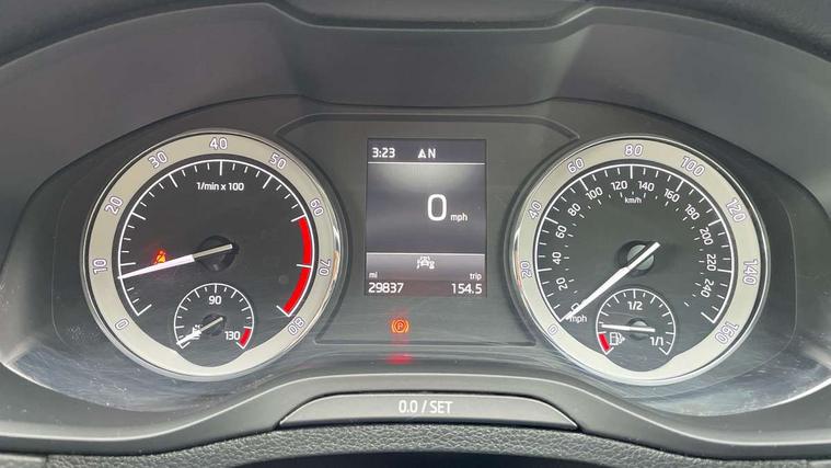 Drive mode selector, Driver alert system, Driver fatigue sensor, Driver profile selection, Electro-mechanical PAS, Multifunction colour trip computer, Outside temperature gauge, Rear view camera, Service interval indicator, Start/stop system with regenerative braking, DAB radio with Bluetooth, SD card slot, USB connection, Acoustic glass, Aero front windscreen wipers with intermittent function, Automatic headlight control system, Body colour door mirrors and handles, Body coloured bumpers, Chrome outside aluminium bar around the window, Chrome roof rails, Electric front and rear windows with child proof lock, Full LED headlights + adaptive front light system + LED daytime running lights and front cornering fog lights, Headlight washers, Heated rear windscreen, LED rear lights with high functionality, Light assistant (coming/leaving home/tunnel light), Privacy glass, Safety reflectors on front doors, Third brake light, 1.5 litre bottle holders in driver and front passenger door panels, 12V socket in boot, 12v socket in front centre armrest with storage compartment and rear air vents, 2 Folding hooks and nets in boot, 2 Front readings lights for driver and passenger, 3 rear height adjustable headrests, 4 foldable roof handles with rear coat hooks, 4 lashing points on luggage floor, Backrest release, Cargo elements in boot, Chrome inner door handles, Dual zone climate control, Folding tables on the front seat backrests, Front seat and rear pockets, Height adjustable front three point seats belts with tensioners, Height adjustable passenger seat, Height/reach adjust steering wheel, Ice scraper, Illuminated and cooled glovebox, Illuminated luggage compartment, Isofix child seat preparation outer rear, Net programme in boot, Pen holder, Pollen filter, Rear boot cover, Rear reading lights, Rear seats fixed folding and divided 60:40, Removable LED torch in the boot, Retractable parcel shelf attachable to tailgate, Safety vest holder, Storage box in upper central dashboard closed, Storage compartment below the passenger seat, Storage net on centre console passenger side, Sunglasses storage compartment, Sunvisors with illuminated vanity mirrors, Textile floor mats, Umbrella under passenger seat, VarioFlex seats with retractable parcel shelf, Airbags - Front side, head, knee and curtain, Automatic door unlocking in case of crash, Automatic fuel cut off in case of crash, Driver airbag, Electronic parking brake with auto hold function, Emergency rear braking signal, ESC including ABS, MSR, ASR, EDS, HBA, DSR, RBS, MKB and traction control, Front assist radar scanning of the space in front of the car with automatic braking, Hill hold control, Passenger airbag with switch-off function, Pedestrian monitor, Seatbelt reminder signalisation and pretensioner for all seats, Three point seatbelts rear, Two tone horn, Tyre pressure display, Tyre pressure monitor, Alarm with interior monitoring, back up horn and tilt sensor with safe function, Electronic engine immobiliser, Keyless entry and keyless start with safe system, Remote central locking with 2 remote folding keys, Chrome framed air vents, Storage on wheel cover,
