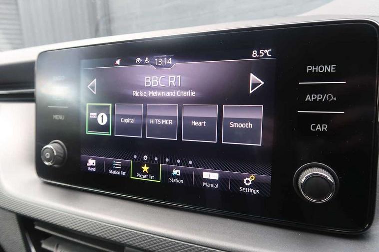 Bluetooth system, E-call, Front assist system, PAS, Service indicator, Speed limiter, Wireless Smartlink for Apple CarPlay (wired for Android Auto), 8 Speakers, Auxiliary input socket, DAB Digital radio, Body colour bumpers, Body colour door mirrors and handles, Chrome grille surround, Dimming rear view mirror with black surround, Electrically adjustable and heated door mirrors, Front and rear electric windows, Headlight range control, Heated rear window, LED rear lights - low functionality, LED third brake light, Light sensors, Rain sensor, Rear fog lights, Rear side wing doors, Rear wiper, 12V Accessory socket in centre console, 3 seat bench in 2nd row, Chrome inner door handles, Cloth upholstery, Front head restraints, Glove compartment with illumination, Ice scraper, Isofix child seat fittings on outer rear seats, ISOFIX on front passenger seat, Manual lumbar support for front seats, Rake/reach adjustable steering wheel, Reading lights, Single front passenger seat, Sun visors with illumination on front passenger, Textile floor mats, Third rear headrest, Top tether for front passenger seat, Umbrella in driver's door, 3x3 point rear seatbelts, Airbags - driver and front passenger, ESP, Front passenger airbag deactivation switch, Front side airbags with curtain airbags, Hill hold control, Manual parking brake, Manual rear child locks, One tone horn, Rear disc brakes, Seatbelt reminder for driver an co-driver, Traction control, Tyre pressure monitor, Anti-theft alarm system with interior monitoring, backup horn, towing protection and remote central locking with SAFE system, Anti-theft wheel bolts, Electronic engine immobilizer,