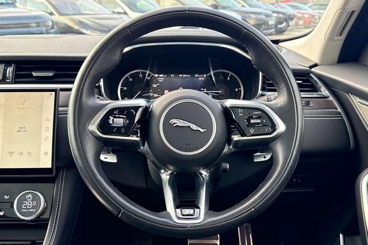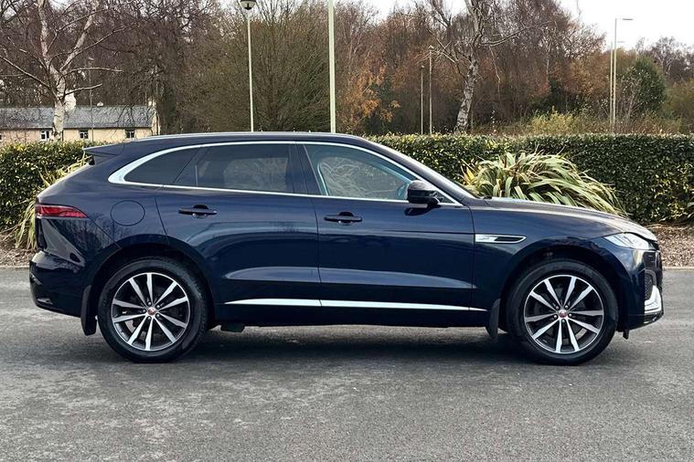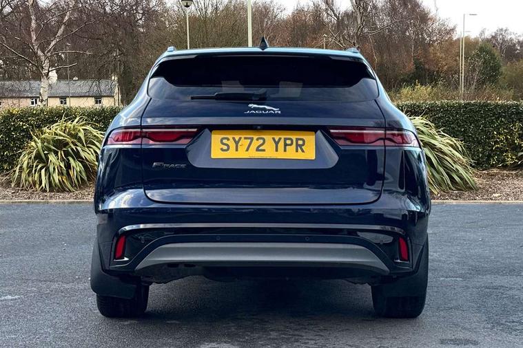 11.4" touchscreen, Adaptive cruise control with steering assist, Android Auto, Apple car play, Blind spot assist, Bluetooth connectivity, Clear exit monitor, Driver alert system, Driver condition monitor, eCall emergency call system, Eco driving style assistant, Electric power assisted steering, InControl remote, Jaguar Toggle shift selector, Lane departure warning system, Lane keep assist, Outside temperature gauge, Personalisation profile management, Pivi pro connected navigation system with app interface and media storage, Pro services and wifi hotspot, Push button starter, Rear collision monitor, Rear traffic monitor, Service interval indicator, Speed proportional steering, Start up sequence with movement in dials and lighting, Traffic sign recognition with adaptive speed limiter, Trip computer, Voice control system, 8 speed automatic transmission, Adaptive dynamics, All terrain progress control, All Wheel Drive (AWD), Configurable dynamics, Open differential with torque vectoring by braking, AM/FM radio, Bluetooth streaming, DAB Radio (Digital Audio Broadcasting), Dynamic volume control, InControl apps, InControl protect, iPod integration, 3 flash lane change indicators, Animated directional indicators, Approach Illumination, Auto dimming rear view mirror, Automatic headlights, Body colour door mirrors, Electric heated/power fold memory door mirrors with approach lights and auto dimming driver side, Electric windows with one touch open/close and anti trap, F-Pace and R Dynamic badge, Green tinted glass, Heated front windscreen + heated washer jets, Heated rear window with timer, Illuminated metal tread plates with Jaguar script, Jaguar script and leaper, LED High level third brake light, LED tail lights, Metal load space scuff plates, Non acoustic front windscreen, R Dynamic badge on side door, Rain sensor windscreen wipers, Rear fog lights, Rear metal tread plates, Rear side wing doors, Rear wiper, Trailer stability assist, Variable front intermittent wipers, 12V power point front, 3 rear headrests, 3 seat bench in 2nd row, Air distribution speed, Bright metal foot pedals, Centre armrest console, Centre console with side storage, Deletion loadspace storage rails, Door sill tread plates, Electrically adjustable steering column, Fold flat front seats, Front centre armrest with storage compartment, Front door storage space, Glovebox finisher with jaguar script, Heated steering wheel, Hooks in loadspace, Illuminated glovebox, Interior front door handles with separate locking switches, ISOFIX on outer rear seats, Jaguar sense, Luggage tie downs in loadspace, Mist sensing, Multifunction steering wheel, Overhead lighting console, Overhead stowage for sunglasses, Passive front head restraints, Premium cabin lighting, Premium carpet mats, R-Dynamic branded leather steering wheel, Rear air vents, Rear armrest with twin cupholders, Rear centre headrest, Rear door storage space, Reversible boot floor, Satin chrome gearshift paddles, Shopping bag hook, Single front passenger seat, Sunvisors with illuminated vanity mirrors, Twin front cupholders with cover, Online Pack with data plan - F-Pace, 355mm front brakes and 325mm rear brakes, 3x3 point rear seatbelts, ABS, All surface progress control (ASPC), Brake pad warning light, DSC - Dynamic Stability Control, Electric parking brake (EPB), Emergency brake assist, Front airbags with passenger seat occupant detector, Front and rear seatbelt reminder, Front side airbags, Full length side window curtain airbag, Hill launch assist, Power operated child locks, Torque vectoring brake, Traction control, Tyre pressure monitoring system, Immobiliser, Keyless entry, Keyless Start, Locking wheel nuts, Perimeter alarm, Remote central locking, Valet mode,