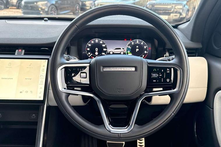 11.4" touch screen, Adaptive cruise control, Android Auto, Apple CarPlay, Blind spot assist, Driver condition monitor, eCall emergency call system, Front and rear parking aid, Head up Display, InControl remote premium, Interactive driver display, Lane keep assist, Locking fuel flap, PAS, Pivi Pro connected navigation system with upgraded Infotainment, Powered tailgate/boot lid, Push button start, Rear collision monitor, Rear traffic monitor, Service interval indicator, Traffic sign recognition with adaptive speed limiter, Trip computer, Wireless device charging, 7 kW onboard charger, All terrain progress control, Coil suspension system, Dynamic stability control, Home charging cable, Public charging cable, Terrain Response 2, Bluetooth connectivity including audio streaming, Digital Audio Broadcast radio-DAB, Steering wheel mounted audio controls, 3rd brake light, Automatic headlight levelling, Automatic headlights, Dynamic Exterior Styling, Electric front/rear windows, Electric heated/power fold door mirrors with approach lights and auto dimming driver side, Front and rear recovery eyes, Front fog lights, Heated rear window, Heated windscreen including heated washer jets, Illuminated metal treadplates with brand name script, Matrix LED headlights with signature DRL, front and rear animated directional indicators and intelligent high beam assist, P300e badge, Privacy glass, Rain sensing windscreen wipers, Rear fog lights, Rear side wing doors, Rear wing door, Rear wiper, 14 way heated electric front seats with driver memory, 2 way manual headrests and adjustable bolsters + 4 way electric lumbar support, 5 standard seating configuration, Bright metal pedals, Carpet mats, Centre console with armrest, Ebony morzine headlining, Electrically adjustable steering column with memory, Footwell lights, Front and rear 12V with front USB, Front and rear grab handles, Front passenger isofix child seat attachment, Full leather twin-rim steering wheel, Heated and cooled front seats, Heated steering wheel, Loadspace cover, Loadspace light, Manual slide and recline second row seats, Overhead lighting console, Overhead stowage for sunglasses, Rear headrests, Row 2 USB x 2 and row 3 USB x 1, Satin chrome gearshift paddles, Sunvisors with illuminated vanity mirrors, Twin front cupholders with cover, Windsor leather upholstery, Online pack with data plan - Discovery, 3 point seatbelts on all seats, ABS, Brake hold function, Child locks on rear doors, Collision mitigation braking system, Cornering brake control (CBC), Driver/Front Passenger airbags, Drivers knee airbag, Electronic brake force distribution, Electronic parking brake, Emergency brake assist, ESP + traction control, Hill descent control, Hill launch assist, Pedestrian airbag system, Rear seat ISOFIX, Roll stability control, Side and curtain airbags for front and 2nd row seats, Trailer stability control, Tyre pressure monitoring system, Battery Back Up System (BBUS) with tilt sensor, Global lock and unlock switch on driver door, Intrusion sensor, Keyless entry, Locking wheel nuts, Centre stack rails in noble chrome,