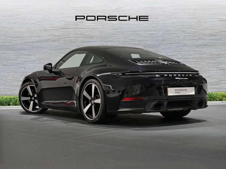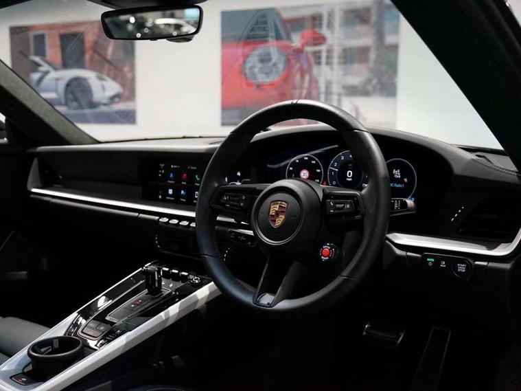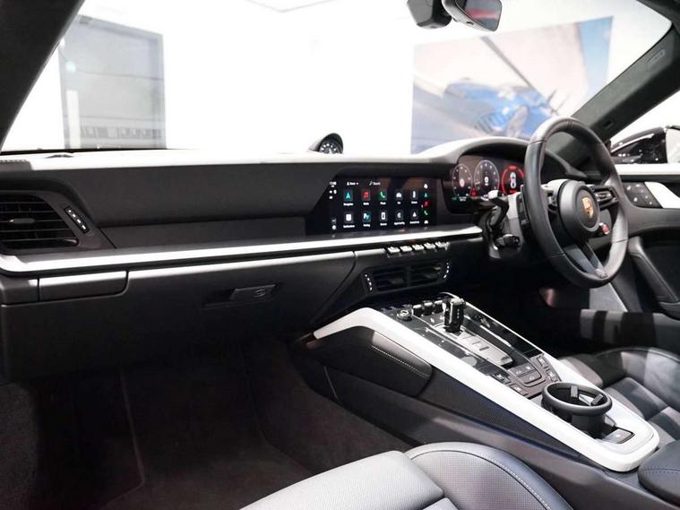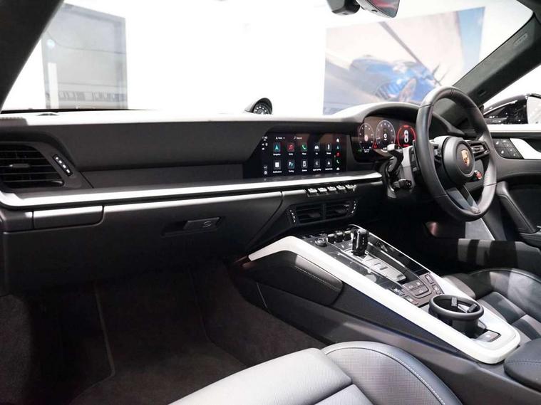 Apple CarPlay, Automatic start/stop system, Driver awareness detection, Emergency call systems eCall and bCall, Gear indicator in rev counter, Lane keep assist, Navigation High, Smartphone compartment with wireless charging up to 15 W, Sports and WET Mode, Stationary management with HOLD function, Traffic sign recognition, Voice control, Warn and brake assist including pedestrian protection, 3.0 liters 6-cylinder boxer engine with twin-turbo, 63 litre fuel tank, 8 Speed Porsche Doppelkupplung (PDK), Porsche Active Suspension Management (PASM), Rear wheel drive, Two gasoline particulate filter, DAB Digital radio, 3rd brake light, Automatic headlight activation including welcome home lighting, Automatically dimming interior and exterior mirrors with integrated rain sensor, Badge on air intake grille, Door handles painted in exterior colour, Electric folding door mirrors with courtesy lights, Fuel/charging cover, Heated rear windscreen, LED daytime running lights, Model designation on rear trim in Light silver, Rear boot, Rear diffusor in louvered design, Rear lid grille with vertical slats in high gloss black, Trim on side skirts in black, Windscreen washer system with aero wiper blades and washer jets, 2-seater with rear engine layout, Delete quilting, Deletion of model logo embossed on headrests, Driver and front passenger illuminated vanity mirrors, Front head restraints, Heated front seats, ISOFIX fastening system, Leather door panel and central armrests, LED footwell lights, LED glove compartment lighting, LED ignition light, LED luggage compartment lighting, LED orientation light, LED reading lights, Lockable glove compartment, Particle/pollen filter with active carbon filter, Single front passenger seat, Steering wheel with manual fore/aft and height adjustment, Two zone auto climate control, USB-C fast charging, Light design package - 911, Sound pack plus - 911, 3 point automatic seatbelts, Airbags, Brake system with brake calipers in black, Electric parking brake, Passenger airbag deactivation, Pedestrian safety, Seat belt warning system for driver and front passenger and rear seat system, Seatbelt pretensioners, Tyre pressure monitoring system, Warning triangle, Alarm system with interior surveillance, Alcohol interlock preparation, Anti-theft wheel bolts, Comfort access system, Keyless drive, Porsche vehicle tracking system (PVTS Plus), Preparation for Porsche Dashcam, TPM valve in silver, Tyre sealing compound and electric air compressor kit,