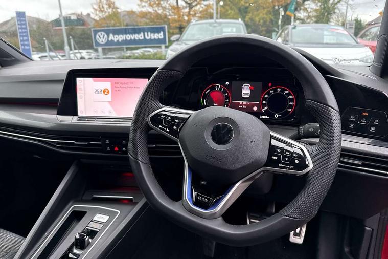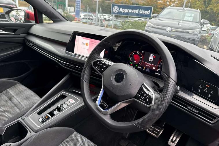 Adaptive cruise control (ACC) with speed limiter and front assist (reacting to vehicles pedestrians and cyclists), Car2X communication, Digital cockpit pro - 10.25" high resolution TFT dash display screen with customizable menus and information, Driver alert system, Driver profile selection, Dynamic road sign display, eCall - Emergency call service for SOS calls to emergency response, Electronic engine sound, Lane assist, Lane change assistant, Mobile phone interface with wireless inductive charging function, Progressive steering, Speedo, rev counter, electronic odometer, trip, service interval display, exterior temperature and fuel gauge, Start/Stop function, Travel assist with emergency side assist with electrically foldable door mirrors, Warning buzzer and light for front seatbelts unfastened, Wireless app connect, 6 metre charging cables of Type 2 mode 2/G (10A) charging cable, Petrol Particulate Filter, Type 2 mode 3 (16A) AC Cable for wallbox/chargepoints, XDS electronic differential lock for improved traction and handling, Premium USB cable in choice of either Apple or Android smartphone compatibility, Advanced high beam control dynamic light assist for LED matrix headlamps, Auto dimming rear view mirror, Automatic headlamp activation with Coming home and Leaving home feature, Body colour bumpers, Body colour door handles, Body colour door mirrors with integrated indicators, Body colour rear roof spoiler, Front and rear electric windows, GTE style bumpers, Heat insulating glass windscreen, Heated rear windscreen, High level 3rd brake light, Highway light, Illuminated front grille, IQ.Light - LED Matrix headlights, dynamic headlight control with advanced high beam control matrix dipped main beam + LED DRL + 22 LED lights, LED front fog lights with 5 honeycomb design, LED License plate illumination, LED rear combination lamp inlcuding dynamic turn signal, Rain sensor, Rear fog light on one side and reversing lights on both sides, Rear tinted glass 65% light absorbing from B pillar backwards, Rear windscreen washer and wiper with interval delay, Remote electrically heated, adjustable and foldable door mirrors, including door mirror puddle lights and reverse activated kerb-view adjustment on pa, Welcome light, 12V socket in front centre console, 12V socket in luggage compartment, 3 rear head restraints, 3 zone climate with controls in the rear, Aluminium gear knob, Ambient lighting - Customisable 30 colour ambient lighting, Ambient lighting, exterior illuminated styling elements at the sides, Black roof lining, Brushed stainless steel pedals, Centre console, Chrome plated surround to electric mirror button, window switch and air vent surrounds, Drivers and front passengers sun visors with vanity mirrors, Front + rear carpet mats, Front centre armrest with storage compartment, Front cupholders x 2, Front reading lights x 2 incorporating LED technology, Front seat lumbar support adjuster, Front sports seats, Glovebox, Height adjustable front seats, Height and reach adjustable steering wheel, Isofix child seat preparation for 2 rear child seats and front passenger seat, Leather wrapped multifunction sports heated steering wheel with paddle shift, Luggage compartment lighting, Removable luggage compartment cover, Split folding backrest with centre armrest and unsplit rear seat bench, Woven fabric storage compartments in front and rear doors, 3 point height adj front seatbelts + pretensioners, 3 rear three point seatbelts, ABS, Driver and front passenger airbag with front passenger airbag deactivation, Drivers and front passengers safety optimised head restraints, Electronic parking brake with auto hold, ESC (Electronic Stability Control), Extended pedestrian protection measures, Front and rear passengers curtain airbag system including front side airbags, Front disc brakes, Rear disc brakes, Two tone horn, Tyre pressure monitoring system, Alarm with interior protection and deactivation via infotainment system, Electronic engine immobiliser, Keyless entry with start/stop button on centre console, Black metal chrome decorative inserts in dash and front door trim panels, Soul dashboard, Tyre mobility kit Includes 12V compressor and tyre sealant,