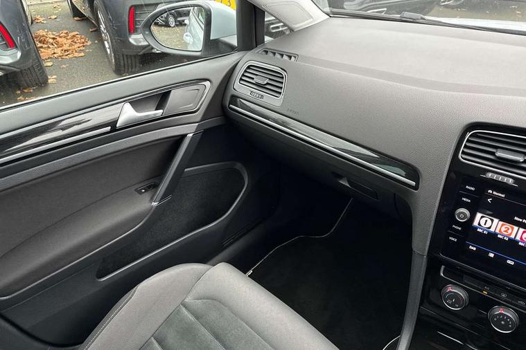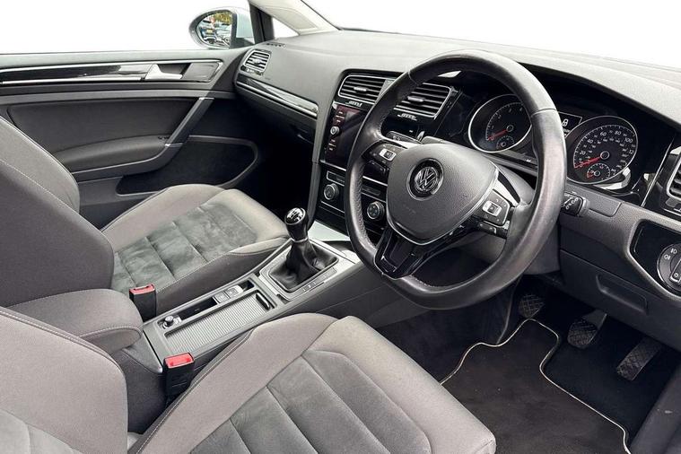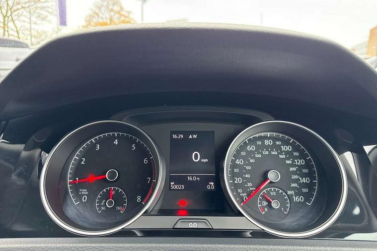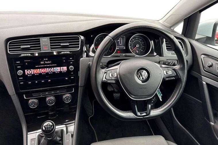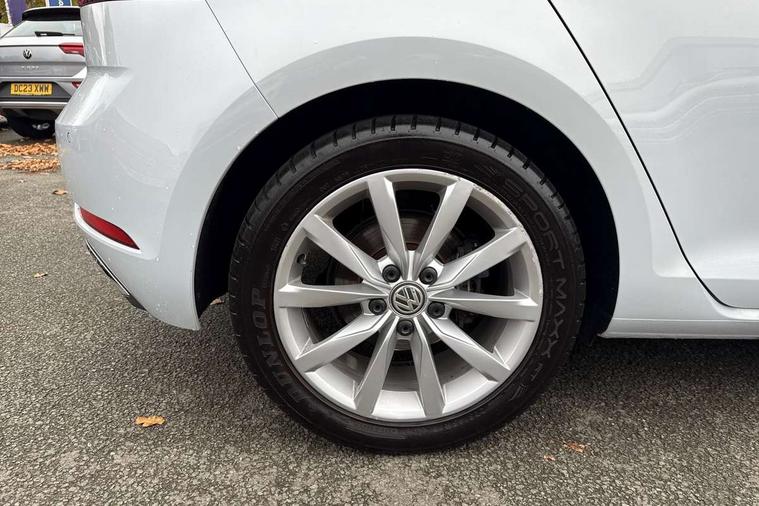 'Lights On' Reminder warning buzzer, 8" touch screen, Adaptive Cruise Control with pedestrian detection and speed limiter, App-Connect, Bluetooth hands free telephone connection, Brake pad wear indicator warning light, Driver alert system, Driver profile selection, Exterior temperature gauge, Front assistant collision mitigation, Instrument cluster in white, Multifunction computer, PAS - speed related, Rev counter, Trip and service interval display, Ultrasonic front and rear optical and audible parking sensors, Warning buzzer and light for front seatbelts unfastened, Lowered sports suspension, XDS electronic differential lock, CD/MP3/WMA, USB and SD card reader, aux-in, Composition media system, DAB Digital radio, Auto dimming rear view mirror, Automatic coming/leaving home lighting function, Automatic headlights, Black front air intake and radiator grille with chrome insert, Black rear diffuser, Body colour bumpers, Body colour door handles, Body colour door mirrors, Chrome grille surround, Electric front windows, Electric rear windows, Electrically adjustable and heated door mirrors, Heat insulated tinted glass 65% light absorbing from B pillar back, Heated rear windscreen, LED daytime running lights, LED front fog lights with static cornering light function, LED rear lights, Rain sensor, Rear roof spoiler, Rear windscreen washer and wiper with interval delay, 12V socket in luggage compartment, 3 rear headrests, 3 spoke steering wheel, 60/40 split folding rear seat, Bag hook in luggage compartment, Boot lashing points, Cooled glovebox, Courtesy light delay, Cover for storage compartment in centre, Dust/pollen filter, Front + rear carpet mats, Front centre armrest with storage box and rear air vents, Front passenger drawer stowage, Front passenger seat height adjust, Front seat back storage pockets, Grab handles, Height/reach adjust steering wheel, Illuminated vanity mirrors, Isofix preparation for 2 rear child seats, Load through provision with rear centre armrest and cupholders x2, Luggage compartment cover, Luggage compartment lighting, Multifunction leather steering wheel with leather gear knob/handbrake grip, Overhead storage box, Pearl grey headlining, Storage box in luggage compartment, Storage compartments in doors, Sun visors, Variable boot floor, height adjustable and removable, Ambient lighting pack - Golf, Mirror pack - Golf, 3 point height adj front seatbelts + pretensioners, 3 rear 3 point seatbelts, ABS, Automatic post collision braking, Child locks on rear doors, Driver/Front Passenger airbags, Driver/Passenger whiplash optimised head restraints, Drivers knee airbag, Electronic parking brake with auto hold, ESP with EDL + ASR, Front and rear curtain airbags, Front passenger airbag deactivation, Front side airbags, Pre crash system, Tyre pressure monitor, Alarm with interior protection, Electronic engine immobiliser, Remote central locking with 2 remote folding keys, Chrome-plated light switch surround, Piano black centre console, Tumbler decorative inserts, Steel space saver spare wheel,