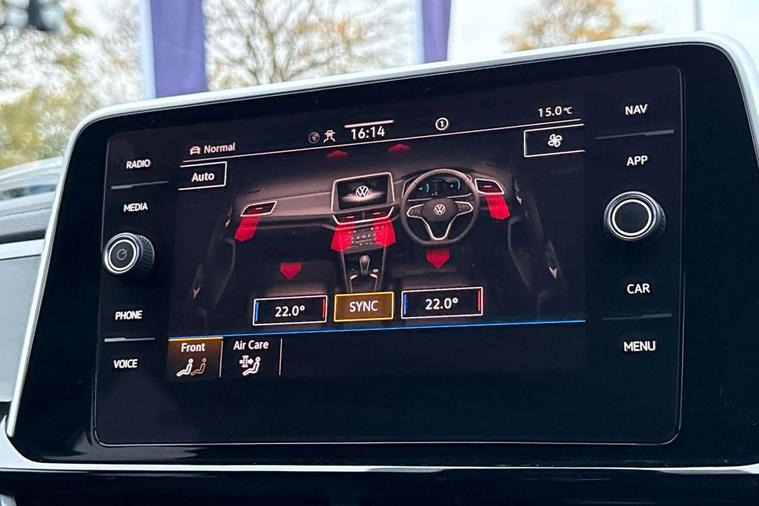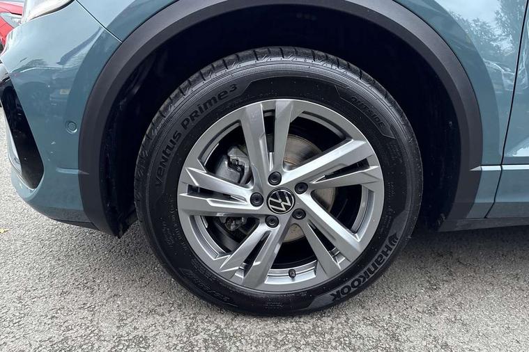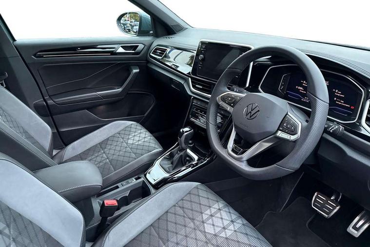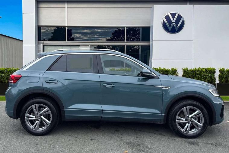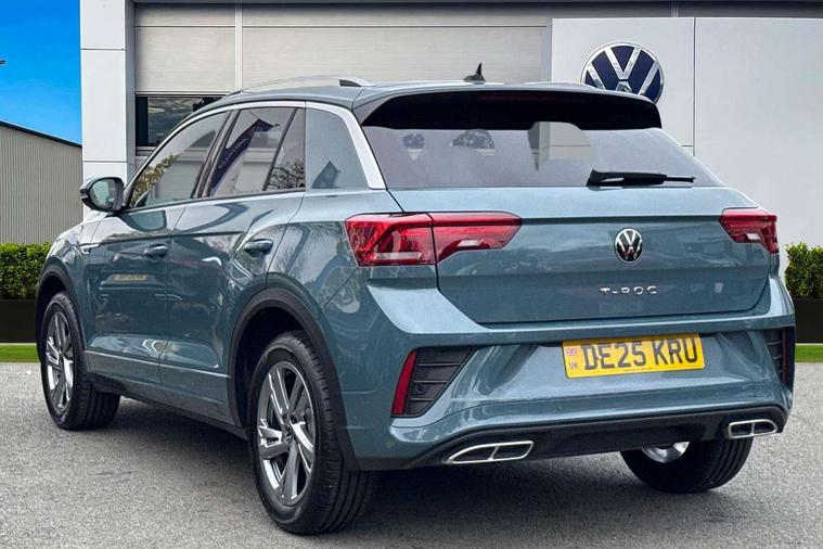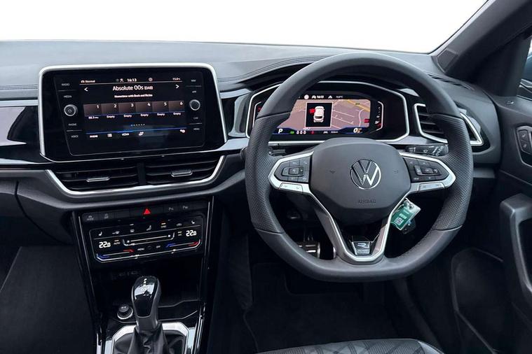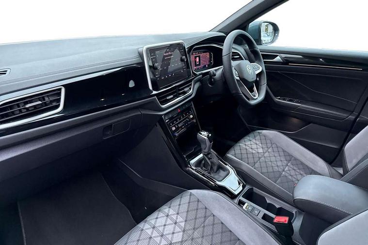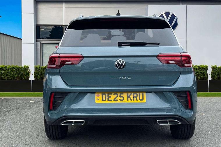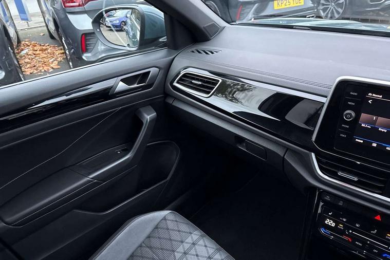 10.25" Digital cockpit pro, Advanced driver attention and drowsiness monitor, Emergency call service, Lane keeping system Lane Assist, Mobile phone interface, Modified key software - reduce switch off time for key status change to Long no motion, Online services, Park assist including front and rear parking sensors, Service interval indicator, Tailgate/trunk lid release from outside, Think blue trainer driver tips and journey analysis, Warning sound and light for front seatbelts unfastened, Wireless app connect, Battery regeneration during braking, Start/stop function with battery regeneration, DAB Digital radio, Diversity antenna for FM reception, Front and rear 6 speakers, Music playback - MP3, WMA and AAC files, Premium USB cable in choice of either Apple or Android smartphone compatibility, SD card slot, Simultaneous pairing of 2 compatible mobile devices, Title and cover art display, We Connect and We Connect Plus functionality, Auto dimming interior rear view mirror, Automatic hazard lights activation under emergency braking, Automatic headlight control with LED separate daytime running lights with coming/leaving home function, Body coloured exterior mirror housings and door handles, Electrically adjustable and heated door mirrors, Extended roof spoiler, Exterior mirrors aspherical on driver side, convex on front passenger side, External USB type C socket and charging sockets, Front windscreen wiper with intermittent wipe and 4 position delay, Heated rear window, LED 3rd brake light, LED rear combination lamps, LED rear number plate lights, Power windows with comfort operation and circuit breaker, Privacy glass for rear side windows and rear window, R-Line design body coloured bumpers, Rain sensor, Rear exhaust tailpipe, Rear fog light on one side and reversing lights on both sides, Rear side wing doors, Rear wash/wipe with intermittent wipe setting, Remote electrically foldable door mirrors, puddle lights and reverse activated passenger's door mirror, 12V power socket in centre console, 3 rear head restraints, 3 seat bench in 2nd row, 4 load lashing points in luggage compartment, Air care climatronic air conditoning system with active combination filter and 2-zone temperature control, Black roof lining, Chrome plated decorative trims, Chrome plated radiator grille inserts, air vent surrounds and light switch surrounds, Door and side trim panel with leatherette insert, Front + rear carpet mats, Front centre armrest, Front cupholders x 2, Front footwell illumination, Front reading light, Front scuff plates with R Line logo, Front seat back storage pockets, Glove compartment door with light, Instrument lighting, white adjustable panel illumination, Interior ambient lighting and surround lighting, Interior light delay, Isofix child seat preparation, Leather gearshift handle, Load-through provision with cup holder when folded down ('Unsplit rear seat bench, split folding backrest, with centre armrest), Luggage compartment lighting, Single front passenger seat, Stainless steel pedals, Storage compartment in left and right luggage area, Storage compartment in rear doors, Storage compartments in driver and front passenger doors, Sunvisors with illuminated vanity mirrors, Variable boot floor, height adjustable and removable, Driver assistance pack without proactive passenger protection - T-Roc, 3 point height adj front seatbelts + pretensioners, 3 point seatbelts in outer rear with ECE label, ABS, Child locks on rear doors, City emergency braking and pedestrian monitoring, Driver and front passenger airbag with front passenger airbag deactivation, Driver and front passenger safety-optimised head restraints, Drivers seatbelt reminder, Electronic parking brake, Electronic Stability Control (ESC) inc EDL (Electronic Differential Lock) and ASR (Traction Control), Front and rear passengers curtain airbag system including front side airbags, Hill start assist, Predictive pedestrian protection, Rear disc brakes, Two tone horn, Tyre pressure loss indicator, Volkswagen roadside assistance, Piano black decorative inserts in dashboard and front door trim panels, Trims for alloy wheels,