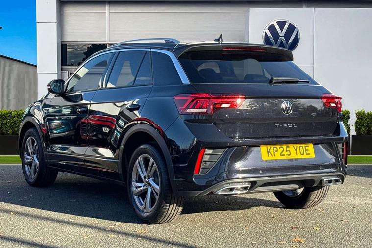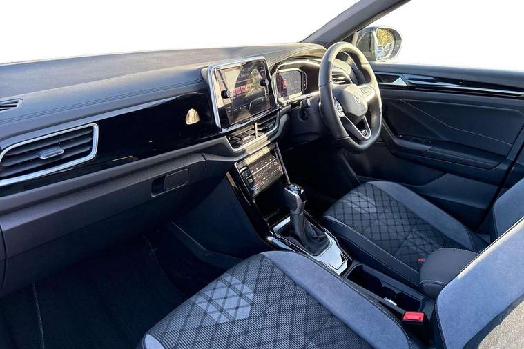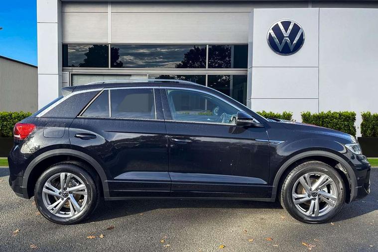 10.25" Digital cockpit pro, Advanced driver attention and drowsiness monitor, Emergency call service, Lane keeping system Lane Assist, Mobile phone interface, Modified key software - reduce switch off time for key status change to Long no motion, Online services, Park assist including front and rear parking sensors, Service interval indicator, Tailgate/trunk lid release from outside, Think blue trainer driver tips and journey analysis, Warning sound and light for front seatbelts unfastened, Wireless app connect, Battery regeneration during braking, Start/stop function with battery regeneration, DAB Digital radio, Diversity antenna for FM reception, Front and rear 6 speakers, Music playback - MP3, WMA and AAC files, Premium USB cable in choice of either Apple or Android smartphone compatibility, SD card slot, Simultaneous pairing of 2 compatible mobile devices, Title and cover art display, We Connect and We Connect Plus functionality, Auto dimming interior rear view mirror, Automatic hazard lights activation under emergency braking, Automatic headlight control with LED separate daytime running lights with coming/leaving home function, Body coloured exterior mirror housings and door handles, Electrically adjustable and heated door mirrors, Extended roof spoiler, Exterior mirrors aspherical on driver side, convex on front passenger side, External USB type C socket and charging sockets, Front windscreen wiper with intermittent wipe and 4 position delay, Heated rear window, LED 3rd brake light, LED rear combination lamps, LED rear number plate lights, Power windows with comfort operation and circuit breaker, Privacy glass for rear side windows and rear window, R-Line design body coloured bumpers, Rain sensor, Rear exhaust tailpipe, Rear fog light on one side and reversing lights on both sides, Rear side wing doors, Rear wash/wipe with intermittent wipe setting, Remote electrically foldable door mirrors, puddle lights and reverse activated passenger's door mirror, 12V power socket in centre console, 3 rear head restraints, 3 seat bench in 2nd row, 4 load lashing points in luggage compartment, Air care climatronic air conditoning system with active combination filter and 2-zone temperature control, Black roof lining, Chrome plated decorative trims, Chrome plated radiator grille inserts, air vent surrounds and light switch surrounds, Door and side trim panel with leatherette insert, Front + rear carpet mats, Front centre armrest, Front cupholders x 2, Front footwell illumination, Front reading light, Front scuff plates with R Line logo, Front seat back storage pockets, Glove compartment door with light, Instrument lighting, white adjustable panel illumination, Interior ambient lighting and surround lighting, Interior light delay, Isofix child seat preparation, Leather gearshift handle, Load-through provision with cup holder when folded down ('Unsplit rear seat bench, split folding backrest, with centre armrest), Luggage compartment lighting, Single front passenger seat, Stainless steel pedals, Storage compartment in left and right luggage area, Storage compartment in rear doors, Storage compartments in driver and front passenger doors, Sunvisors with illuminated vanity mirrors, Variable boot floor, height adjustable and removable, Driver assistance pack without proactive passenger protection - T-Roc, 3 point height adj front seatbelts + pretensioners, 3 point seatbelts in outer rear with ECE label, ABS, Child locks on rear doors, City emergency braking and pedestrian monitoring, Driver and front passenger airbag with front passenger airbag deactivation, Driver and front passenger safety-optimised head restraints, Drivers seatbelt reminder, Electronic parking brake, Electronic Stability Control (ESC) inc EDL (Electronic Differential Lock) and ASR (Traction Control), Front and rear passengers curtain airbag system including front side airbags, Hill start assist, Predictive pedestrian protection, Rear disc brakes, Two tone horn, Tyre pressure loss indicator, Volkswagen roadside assistance, Piano black decorative inserts in dashboard and front door trim panels, Trims for alloy wheels,