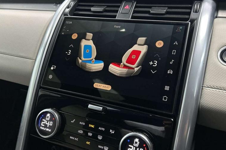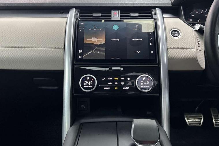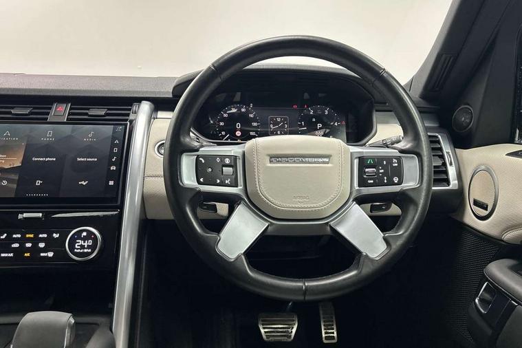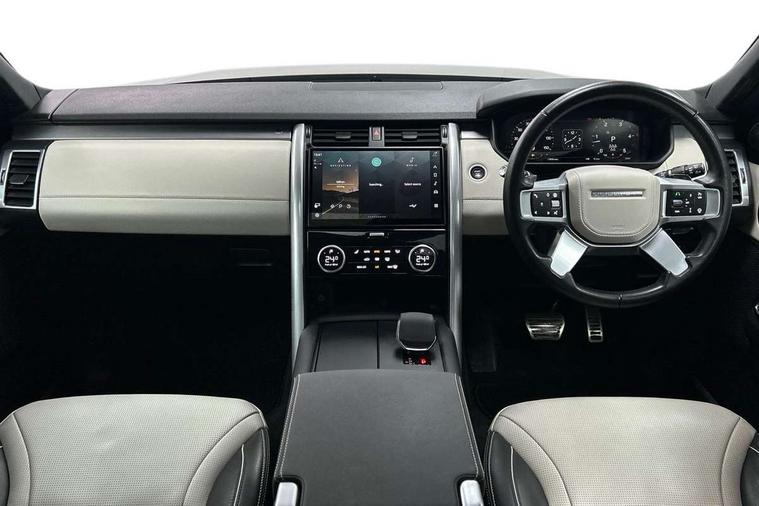 11.4" touchscreen, 3D surround camera, Adaptive cruise control, Android Auto, Apple car play, Blind spot assist, Driver condition monitor, Electric power assisted steering (EPAS), Emergency services call system, Front and rear parking aid, Interactive driver display, Lane keep assist, Power inner tailgate, Power tailgate/boot lid, Push button start, Rear collision monitor, Rear traffic monitor, Remote, Remote boot release, Service interval indicator, Speed proportional steering, Sportshift selector, Stop/start system, Traffic sign recognition with adaptive speed limiter, Trip computer, Wade Sensing, Adaptive dynamics, Dynamic stability control, Electronic air suspension, Front axle open differential, Digital Audio Broadcast radio-DAB, Dynamic volume control, Pivi pro connected, USB/aux input socket, Acoustic laminated windscreen, Animated directional indicators, Auto dimming interior rear view mirror, Automatic headlight levelling, Automatic headlights, Body colour bumpers, Body colour door handles, Centre high mounted stop light, D300 badge, Electric heated/power fold memory door mirrors with approach lights and auto dimming driver side, Electric windows with one touch open/close and anti-trap, Heated rear window, Heated windscreen, LED darkend tail lights, Matrix LED headlights with signature DRL, Narvik black Discovery script, Privacy glass, Puddle lights, Rain sensing windscreen wipers, Rear fog lights, Rear side wing doors, Rear wash/wipe, Trailer stability assist, Variable intermittent wiper, 12V power sockets, 12V USB charging socket in loadspace, 2 seat bench in 3rd row, 3 seat bench in 2nd row, 60/40 electric heated folding rear seats with manual slide and powered recline, centre headrest and armrest, Central hinged twin lidded storage, Configurable cabin lighting, Ebony morzine headlining, Electric adjustable steering column, First and second row door bins, Footwell lights, Front and rear 12V with front USB, Front passenger seat isofix location point, In-facia storage, Isofix child seat preparation for front passenger seat, Leather steering wheel, Loadspace cover, Loadspace Hook, Loadspace light, Lockable glovebox, Lower centre console storage, Luggage tie downs in loadspace, Multi function steering wheel, Overhead lighting console, Premium carpet mats, Rear ISOFIX, Shopping bag hook, Single front passenger seat, Storage glovebox, Sunvisors with illuminated vanity mirrors, Third row storage, Treadplates with metal inserts, Twin front cupholders with cover, USB with 12V socket in centre console, Black exterior pack - Discovery Dynamic SE/HSE, Online pack with data plan - Discovery, 3x3 point rear seatbelts, Anti-lock braking system (ABS), Brake pre-fill technology, Cornering brake control, Curtain airbags, Customer configurable autolock, Driver and passenger airbags, EBD - Electronic brakeforce distribution, Electronic traction control, Emergency brake assist, Emergency braking, ESP, Front side airbags, Gradient acceleration control, Hill descent control, Hill launch assist, Power operated child locks, Rear airbags, Roll stability control, Seat belt reminder, Torque vectoring brake, Tyre pressure monitoring system, Immobiliser, Intrusion sensor, Keyless entry, Locking wheel nuts, Remote central locking, All terrain tyres,