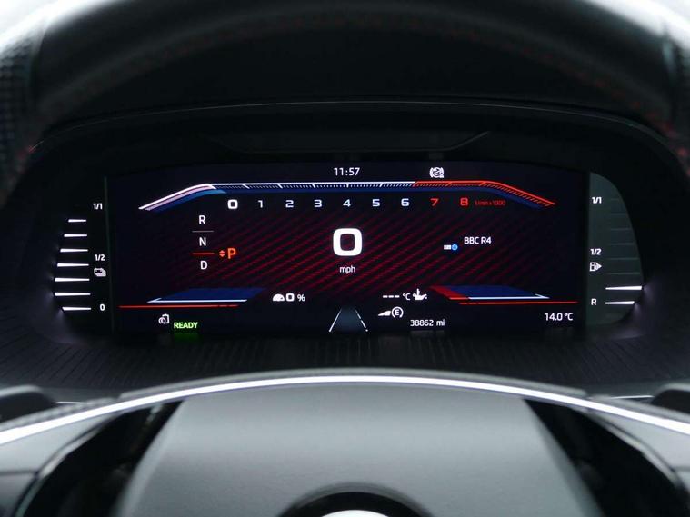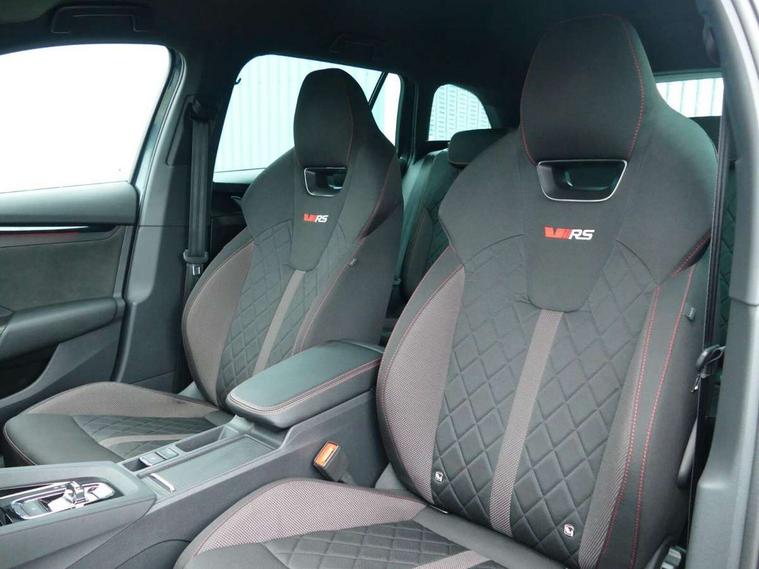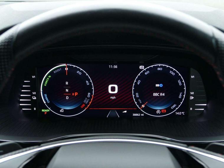 1x USB Type C port in rear view mirror (charging only), 2x USB Type C ports in rear of front centre armrest (charging only), Bluetooth system, Columbus satellite navigation with 10" touchscreen display, E mode button for electric/hybrid drive, eCall emergency system, Front and rear parking sensors with manoeuvre assist, Front assist system, Progressive dynamic steering, Smartlink (includes android auto and mirrorlink), Speed limiter, Turn Assist, Unique iV instrument panel, Virtual Cockpit - 10.25" digital display, Voice control system, Wireless SmartLink for Apple Car Play, 10 amp mains UK 3 pin charge cable mode 2, 16 amp AC charge cable for wallbox/charge points mode 3, E-noise generator for electric drive with noise emitted upto speed of 50km/h, Front and rear stabilizers, 2x USB Type C ports (for charging and data transfer), 8 Speakers, DAB Digital radio, Aero front windscreen wipers with intermittent function, Auto dimming rear view mirror, Black roof rails, Body colour door handles, Chrome exhaust tailpipes, Door sills with vRS logo, Electric front and rear windows, Exterior gloss black sports styling including front grille, side strip, window surrounds, door mirror and badging, Full LED Matrix headlights with AFS and cornering front fog lights, Headlight washers, Heated rear windscreen, High level third brake light, Ice scraper in fuel cap, LED daytime running lights, Rain and light sensors, Rear fog light on one side, Rear privacy glass, Rear side wing doors, Rear spoiler, Rear window wiper, Unique iV badge on tailgate, 3 seat bench in 2nd row, 4 foldable roof handles, Aluminium pedals, Black headlining, Black microsuede padded dash panel with red contrast stitching, Charging socket cover on front left fender, Chrome inner door handles, Front centre armrest, Front head restraints, Heated front seats, Illuminated air conditioned glovebox, Leather trimmed gearshift lever, Luggage compartment lighting with two side lamps, Mechanical rear seat release, Parcel shelf - rolling, Single front passenger seat, Sport button for hybrid drive delivering maximum system performance, Storage compartment for charging cables under the luggage compartment mat, Sunglasses storage, Textile floor mat set, Three spoke leather sports multifunction steering wheel with paddles, Ticket holder, Umbrella in door panel, Unsplit rear bench seat and split folding backrest, LED interior light pack - Octavia, 3 point front/outer rear seatbelts+pre-tensioners, Alarm with interior monitoring, tilt sensor and back up horn, Automatic door unlocking in case of crash, Automatic fuel cut off in case of crash, Automatic warning lights in case of emergency braking, Curtain airbags and front side airbags, Driver and front passenger airbags, Drivers knee airbag, Electronic parking brake, Emergency call and proactive services, ESC including ABS, EBV, MSR, ASR, EDS, HBA, DSR, Front and rear disc brakes, Hill hold control, Hill start assist, ISOFIX on front passenger seat and outer rear seats, Manual rear child locks, Passenger airbag deactivate switch, Red brake calipers, Two tone horn, Tyre pressure monitor, Visual and acoustic seat belt reminder, Warning reflectors in front door, Door locks with immobiliser, Keyless entry and start/stop including rear doors, Remote central locking, Carbon optic decorative inserts, Gloss black air vent surrounds, Unique decorative door sills front and rear, 19" Altair anthracite alloy wheels, Tyre repair kit,