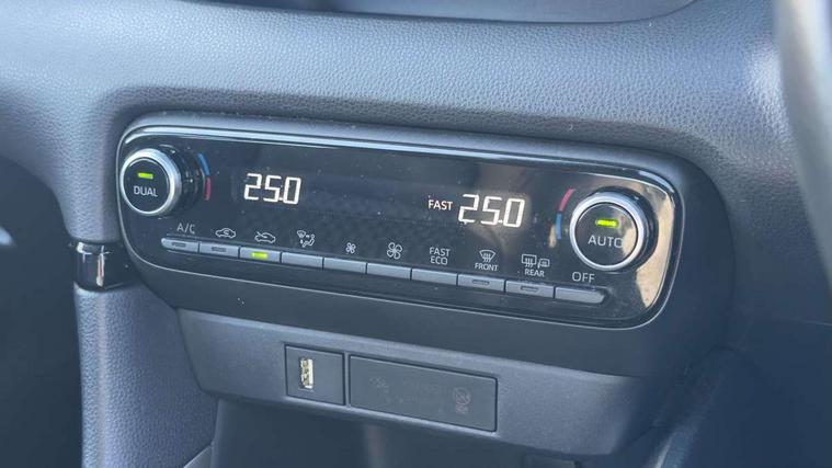 Adjustable speed limiter, Analogue speed display meter, Apple car play/Android Auto, Drive mode selection and paddle shift, Dynamic radar cruise control, E-call with GPS, Emergency stop signalling system, Engine start/stop button, EV drive mode, Hybrid system indicator, Integrated bluetooth, Lane tracing assist includes Lane centering, Lane departure alert, Steering assist and Vehicle sway warning, Multi-information display, PAS, Pre-collision system enhanced with emergency steering assist, Reversing camera, Road sign assist - RSA, Service indicator, Tailgate, Trip computer, i-stop, AM/FM/DAB radio with 6 speaker audio system and 8" colour screen centre display, Steering wheel mounted audio/bluetooth controls, Automatic high beam - AHB, Black lower window garnish, Body coloured electrically adjustable heated door mirrors, Body coloured front bumper, Body coloured rear bumper with satin black lower mouldings, Coming/leaving home lighting function, Dusk sensing headlights, Front and rear electric windows, Gloss black rear roof spoiler, Halogen front fog lights, Halogen headlights with manual headlight levelling and Halogen daytime running lights, LED rear combination light with halogen turn signals, LED third brake light, Rain sensing front wipers with adjustable sensitivity and speed, Rear side wing doors, Rear wiper, Satin black front grille, Shark fin antenna, 12V power outlet, 3 seat bench in 2nd row, 60/40 split rear seats, Climate control air conditioning, Cloth upholstery, Door panel in soft touch material, Driver, front passenger and two rear door storage, Driver, Front passenger and two rear grab handles with coathooks, Drivers seat manual slide recline and height adjustment, Drivers/front passengers with covered vanity mirrors, Front centre armrest, Front centre storage with two cupholders, Front head restraints, Glovebox, Interior courtesy light, ISOFIX child seat anchorage points attached on outer rear seats, Leather handbrake, Leather steering wheel and gear knob, Luggage compartment light, Single front passenger seat, Three height adjustable rear head restraints, Tilt/telescopic adjustable steering wheel, USB input, 2x3 point front seatbelts with pre-tensioners, 3 point seatbelts on all rear seats, Anti-lock braking system (ABS), Collision mitigation braking system, Driver and passenger central airbags, Dynamic stability control + Traction control, Electronic parking brake with auto-hold and auto-disengage function, ESP, Front and rear curtain airbags, Front driver, passenger and rear seat seatbelt warning, Front dual stage driver and single stage front passenger airbags, Front side airbags, G-Vectoring control plus, Hill start assist control (HAC), Manual child lock in rear doors, Passenger airbag cut-off switch, Regenerative braking system, Tyre pressure monitoring system, Deadlocking system, Smart keyless entry, Thatcham approved immobiliser and alarm, 15" Alloy wheels, Emergency tyre repair kit,