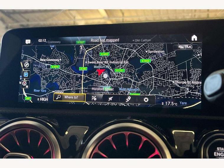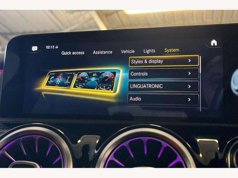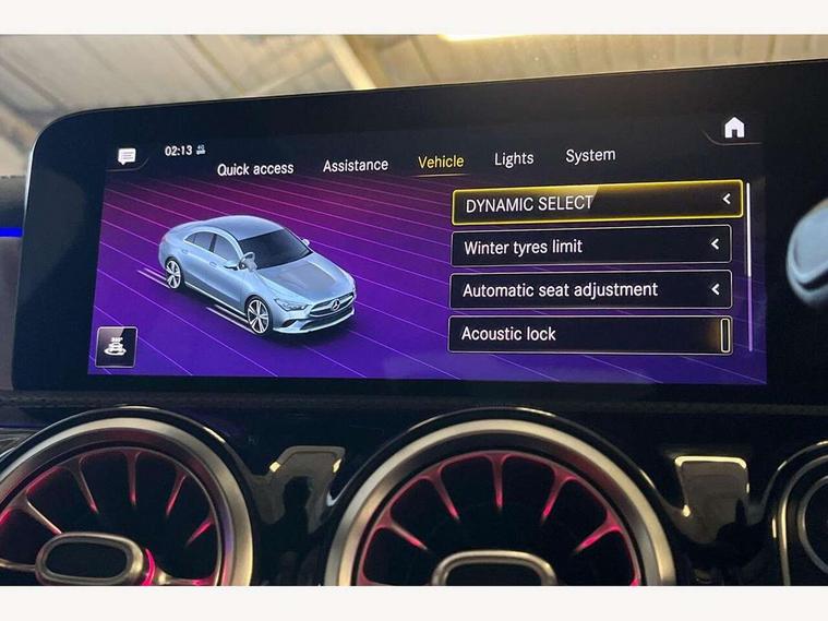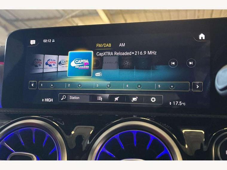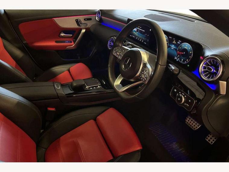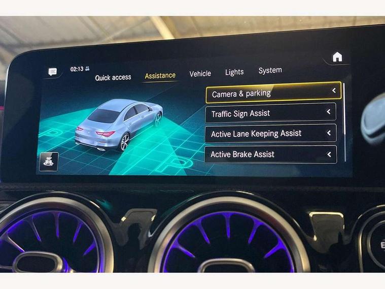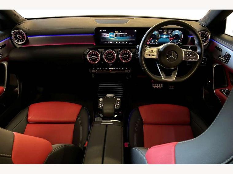 10.25 inch Instrument display with digital cockpit, 10.25 inch touchscreen central media display, Attention assist - Monitors steering behaviour and long journey fatigue, Bluetooth connection, Car wash mode, DYNAMIC SELECT with a choice of driving modes (ECO, Comfort, Sport and Individual), ECO start/stop function, Fluid level warning indicator for fuel, oil, coolant and washer fluid, Hard-disk navigation, Hey Mercedes Voice activation, Lamp failure indicator, MBUX augmented reality for navigation, Mercedes me connect including emergency call system, accident recovery, breakdown and maintenance management, Outside temperature gauge, Owners manual and service booklet in English, Pre-installation for Vehicle Monitoring, Pre-installation for Vehicle Setup, Pre-installation of private car share, Preinstallation for Mercedes Benz link, Radio aerial integrated into front and rear windshields, Service indicator (ASSYST), Smartphone integration with Apple CarPlay and Android auto, Traffic sign assist, Trip computer in multifunction display with current consumption indicator, Wireless charging, 7G-DCT 7 speed automatic transmission, Lowered comfort suspension, Rear axle multi-link, DAB digital radio tuner, MBUX multimedia system with DAB digital radio and touchpad including satellite navigation, Mercedes Benz advanced sound system (225 W) with 10 speakers, 1 central speaker, speakers on doors, a tweeter on door, one sub woofer + boost amplifier, USB (type C) ports (2) in stowage compartment and 1 in front of centre console, Adaptive brake lights, AMG body styling with AMG front apron and rear apron and visible exhaust tailpipe in chrome trim elements, AMG bodystyling side skirts, Body colour bumpers, Body colour door handles, Chrome beltline strips, Chrome weather strip, Diamond radiator grille pins in chrome with silver painted louvres and chrome insert, Electric panoramic sliding sunroof, Electric windows, Electrically adjustable and heated door mirrors with integrated LED indicators, Exhaust system with 2 Visible tailpipe trim elements and rear apron with trim in chrome, Headlamp assist automatic headlamp activation, Heated glass rear windscreen + timer control, High level LED third brake light, Integrated LED daytime running lights, Interior mirror with black reading lamps and frameless, LED tail lamp, Multibeam LED headlamps with adaptive highbeam assist plus, Privacy glass with dark tinting on rear side windows and rear window, Rain sensing windscreen wipers with two sensitivity settings, Rear fog lamp, Window line trim strip in chrome, 3 spoke flattened bottom nappa leather multifunction steering wheel with perforated leather in grip area, 40:20:40 split folding rear seat backrests, Air conditioning - Two zone thermotronic luxury automatic climate control with display, Air vents with surround in silver chrome, Automatic child seat recognition sensor, Black roof lining, Brushed stainless steel sports pedals with rubber studs, Electrically adjustable front memory seats including lumbar support, Floor mats with stitched AMG lettering, Front centre armrest with stowage, Galvanished gear shift paddles on steering wheel, Heated front seats, Illuminated glove compartment stowage, Illuminated Mercedes benz door sills with Mercedes Benz lettering, Interior lighting - 64 colour Ambient lighting, Luggage net on driver/front passenger seat backrest, Manually height and reach adjustable steering column, Rear armrest with two integral cup holders for drinks, Rear head restraints, Sport seats with fixed head restraints, Stowage compartment in centre console with retractable cover, Sunvisors with illuminated vanity mirrors, Touchpad on center console, Twin front cupholders, Two outer rear seat isofix and top tether child seat fixing points, Keyless go pack - CLA, Light and sight pack - CLA, Mirror pack - CLA, Parking package - CLA, Seat comfort pack - CLA, Active bonnet pedestrain safety measure which detects an impact and raises bonnet by 65mm, Adaptive brake assist with hold function and hill start assist, Anti-lock braking system (ABS), Black seat belts, Bonnet with power domes, Brake pad wear warning indicator, Childproof locks manually operated for rear doors and electrically operated for rear power windows, Crash responsive emergency lighting, Driver and front passenger head and sidebags, Driver and front passenger windowbags, Drivers knee airbag, Dual stage driver and front passenger airbags, Electric parking brake, Electronic stability programme with acceleration skid control, ESP curve dynamic assist, Front and rear seatbelt reminder, Front passenger seat occupancy sensor, Three point rear seat belts, Tyre pressure monitoring system, Warning triangle and first aid kit, Remote central locking and crash sensor with emergency opening function, Urban guard vehicle protection system with immobiliser and interior protection, Light aluminium with longitudinal grain interior trim, 18" 5 twin spoke design alloy wheels painted in titanium grey with high sheen finish, Summer tyres, Tirefit tyre sealant kit,