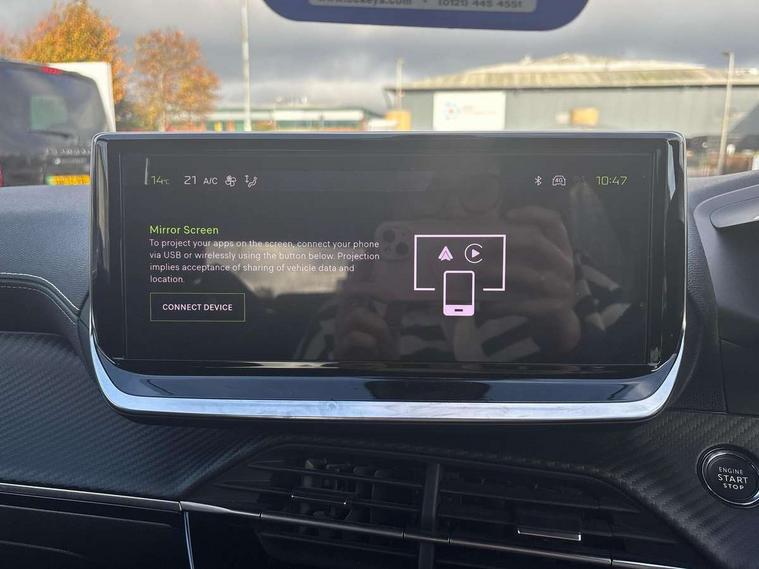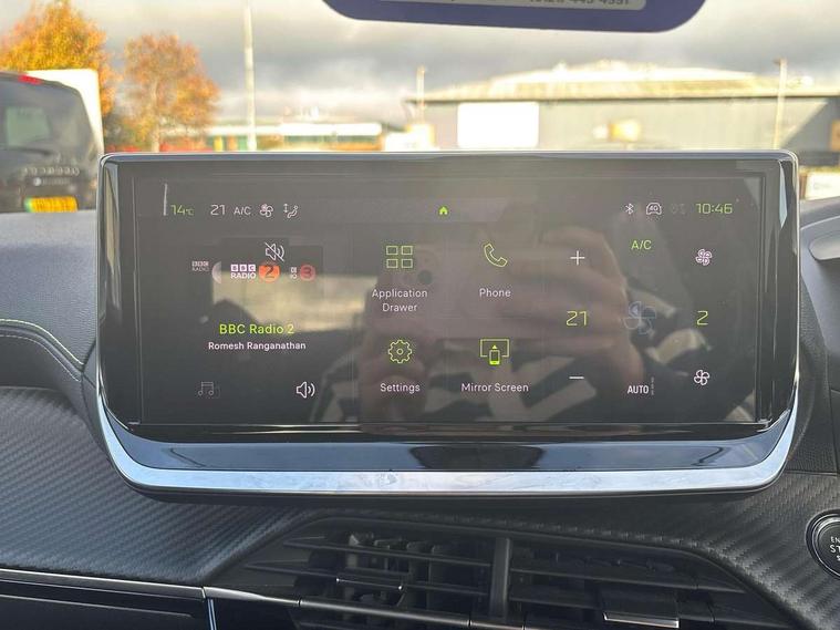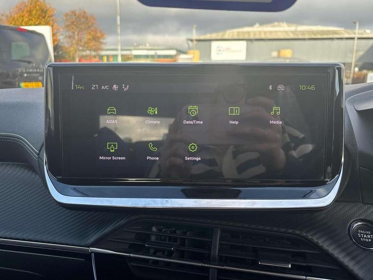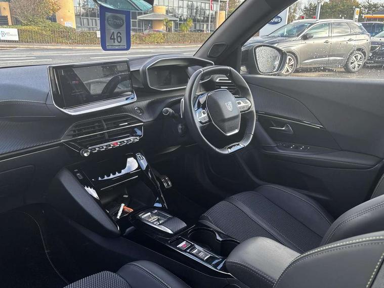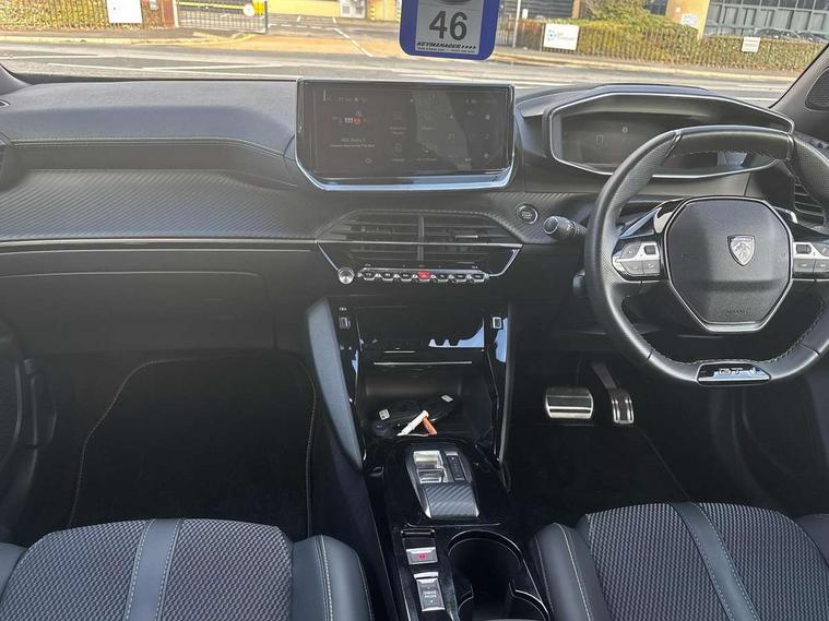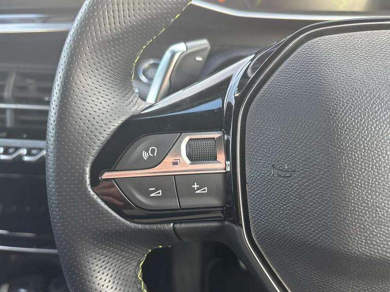 Bluetooth telephone facility, Driver attention warning, E-call, Exterior temperature indicator with ice warning, Multi function trip computer, PEUGEOT i-Cockpit with compact steering wheel, PEUGEOT i-Cockpit with configurable 3D headup instrument panel, PEUGEOT SOS and assistance, Smartphone charging plate, Speed limit recognition and recommendation, Wireless mirror screen with mirror link, apple carplay and android auto, Petrol Particulate Filter, 1x USB-C socket in rear and 1x USB-A socket in rear, 2 USB-C ports in the front, 6 speakers radio with mp3 compatible, DAB Radio (Digital Audio Broadcasting), Voice recognition for radio, navigation and telephony features, 2 X Rear number plate lights, Aluminium door sill scuff plates with peugeot lettering, Automatic hazard light activation upon heavy brake application, Black diamond roof, Black front wing trim with gloss black detail and GT badging, Body coloured exterior door handles, Dark tinted rear side and tailgate windows, Diamond black mirror shells, Diamond black rear roof spoiler, Electric, heated, and power folding door mirrors, Frameless electrochrome interior rear view mirror, Front bumper - Meteor grey lower trim, Full LED headlights with smartbeam assist with auto height adjustment, Gloss black finish on B pillar, Gloss black rear cluster connecting strip, Gloss black roof bars, Gloss black window surround, GT model designation badging on tailgate, Headlights left on audible warning, LED daytime running lights with distinctive 3 claw signature, LED side indicator lights integrated into door mirrors, LED third brake light, Model designation badges front and rear, One touch electric front/rear windows with pinch protection, Radiator grille - body coloured vertical chequered grille, Radiator grille - gloss black top edge trim, Rear full LED 3D peugeot signature claw effect lights with daylight function, Rear reversing lights, Rear side wing doors, Rear windscreen wiper triggered automatically in reverse gear, Tailgate with heated rear windscreen and wiper blade, Twin chromed exhaust pipes, Wheel arch extensions, 1/3 to 2/3 split folding rear seats, 12V socket, 3 seat bench in 2nd row, 8 Colour personalisable ambient lighting, Automatic air conditioning with pollen and active carbon filter, Central front armrest with storage compartment, Driver and front passenger sport seats, Electric power steering with reach and rake adjustable steering column, Front and rear carpet mats in black, Front LED interior light with 2 reading spotlights and rear interior light with timer, Front passenger seat manual adjustment - height, longitudinal and back rest angle, High centre console, ISOFIX child seat mounting points on passenger seat, Mistral full-grain perforated leather steering wheel with Lime Green stitch detail and satin chrome 'GT' emblem, Multifunction steering wheel, Piano keys: Gloss black and chrome toggle switches to access main functions of the vehicle and touchscreen functions, Roof lining - Mistral black, Seatbelt unfastened on the move audible and visual alert for front and rear seats, Single front passenger seat, Two position modular boot floor, Visibility pack - 2008, 2x 2nd row ISOFIX child seat mountings, ABS (Anti-lock Braking System) with EBD (Electronic Brakeforce Distribution) and EBA (Emergency Braking Assistance), Active safety brake with night function/cyclists/pedestrians, Adaptive driver and front passenger airbags with passenger airbag deactivation function, Child locking functionality on rear doors, Driver/front passenger side airbags, Electric parking brake, ESP (Electronic Stability Program) + Hill Start Assist, Front and rear curtain airbags, Front and rear disc brakes, Front and rear three-point retractable seatbelts, with force limiters, Front optimised safety headrests and rear retractable headrests (x3), height adjustable, Tyre pressure sensor, Automatic door locking when moving off, Deadlocks, Electronic code immobiliser, Peugeot Open and Go (keyless entry and push button start), Thatcham category 1 alarm, Carbon effect Dashboard, front and rear door panel finish,