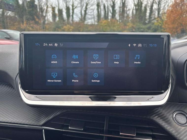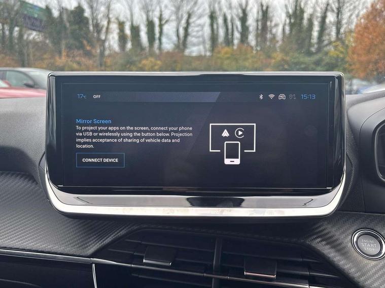 Bluetooth telephone facility, Driver attention warning, E-call, Exterior temperature indicator with ice warning, Front and rear parking sensors, Multi function trip computer, PEUGEOT i-Cockpit with 10" high definition capacitive touchscreen, PEUGEOT i-Cockpit with compact steering wheel, PEUGEOT i-Cockpit with configurable headup instrument panel, Speed limit recognition and recommendation, Wireless mirror screen with apple carplay and android auto, Petrol Particulate Filter, 1x USB-C socket in rear and 1x USB-A socket in rear, 2 USB-C ports in the front, 6 speakers radio with mp3 compatible, DAB Radio (Digital Audio Broadcasting), 2 X Rear number plate lights, Automatic hazard light activation upon heavy brake application, Black front wing trim with gloss black detail, Body coloured exterior door handles, Colour coded rear roof spoiler, Colour coded roof, Dark tinted rear side and tailgate windows, Diamond black mirror shells, Eco LED headlights, Electric, heated, and power folding door mirrors, Electrochrome rear view mirror, Front bumper - Meteor grey lower trim, Gloss black finish on B pillar, Gloss black rear cluster connecting strip, Gloss black roof bars, Headlights left on audible warning, LED daytime running lights with distinctive 3 claw signature, LED side indicator lights integrated into door mirrors, LED third brake light, Model designation badges front and rear, One touch electric front/rear windows with pinch protection, Radiator grille - Body coloured top edge trim, Radiator grille - body coloured vertical chequered grille, Rear full LED 3D peugeot signature claw effect lights with daylight function, Rear reversing lights, Rear side wing doors, Rear windscreen wiper triggered automatically in reverse gear, Tailgate with heated rear windscreen and wiper blade, Twin chromed exhaust pipes, Wheel arch extensions, 1/3 to 2/3 split folding rear seats, 12V socket, 3 seat bench in 2nd row, Automatic air conditioning with pollen and active carbon filter, Central front armrest with storage compartment, Driver and front passenger comfort seats, Driver seat manual adjustment - height, longitudinal and back rest angle, Electric power steering with reach and rake adjustable steering column, Front LED interior light with 2 reading spotlights and rear interior light with timer, Front passenger seat manual adjustment - height, longitudinal and back rest angle, High centre console, Leather steering wheel, Multifunction steering wheel, Piano keys: Gloss black and chrome toggle switches to access main functions of the vehicle and touchscreen functions, Roof lining - Mistral black, Seatbelt unfastened on the move audible and visual alert for front and rear seats, Single front passenger seat, Tri material cloth/leather effect upholstery, Two position modular boot floor, Visibility pack - 2008, 2x 2nd row ISOFIX child seat mountings, ABS (Anti-lock Braking System) with EBD (Electronic Brakeforce Distribution) and EBA (Emergency Braking Assistance), Active safety brake with night function/cyclists/pedestrians, Adaptive driver and front passenger airbags with passenger airbag deactivation function, Child locking functionality on rear doors, Driver/front passenger side airbags, Electric parking brake, ESP (Electronic Stability Program) + Hill Start Assist, Front and rear curtain airbags, Front and rear disc brakes, Front and rear three-point retractable seatbelts, with force limiters, Front optimised safety headrests and rear retractable headrests (x3), height adjustable, Tyre pressure sensor, Automatic door locking when moving off, Deadlocks, Electronic code immobiliser, Thatcham category 1 alarm, Carbon effect Dashboard, front and rear door panel finish, 17" Karakoy diamond cut alloy wheels,