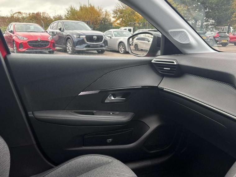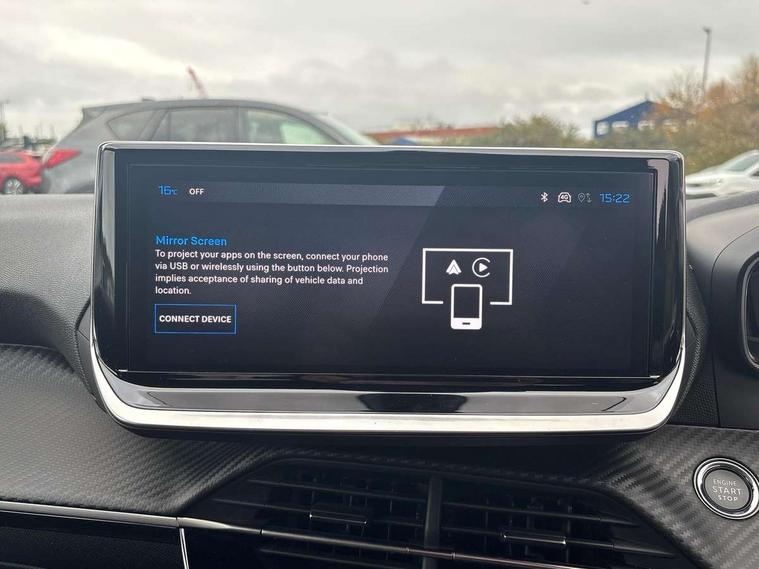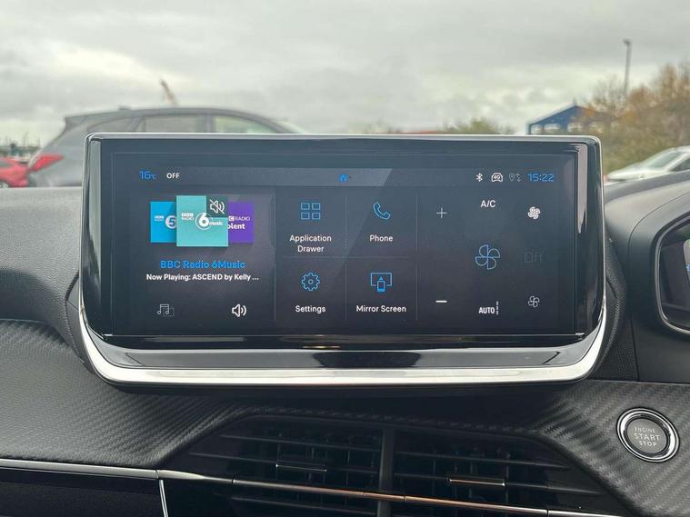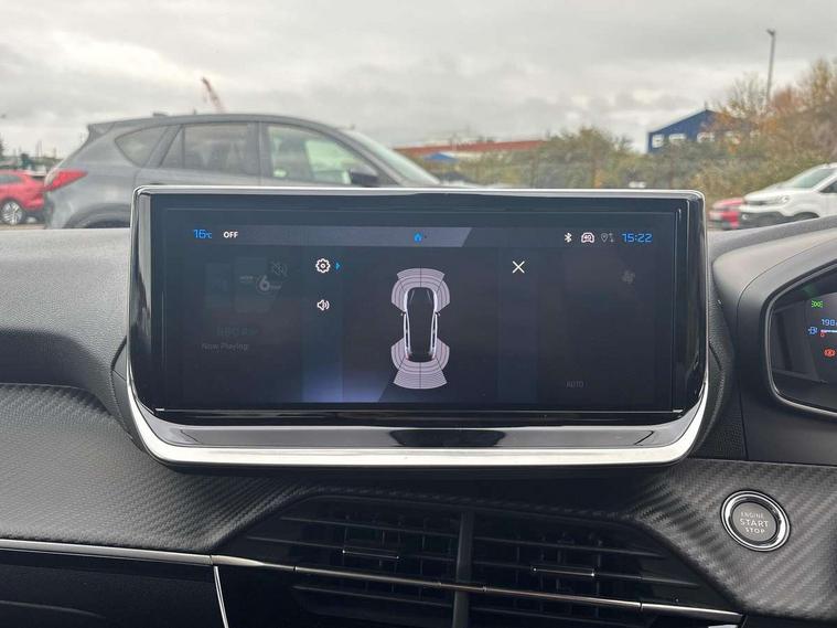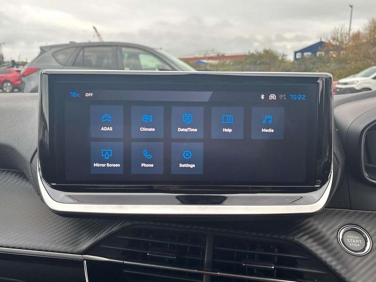 Bluetooth telephone facility, Drive mode select (Eco/Normal/Sport), Driver attention warning, Emergency call service, Exterior temperature indicator with ice warning, Front and rear parking sensors, Gear lever - e-Toggle, Multi function trip computer, PEUGEOT i-Cockpit with 10" configurable colour head up instrument panel, PEUGEOT i-Cockpit with 10" HD capacitive colour touchscreen, PEUGEOT i-Cockpit with compact steering wheel, PEUGEOT SOS and assistance, Push button start, Smart phone docking station, Speed limit recognition and recommendation, Wireless mirror screen with apple carplay and android auto, 6 Speakers - 2 tweeters and 4 door speakers, DAB Digital radio, Peugeot i-connect infotainment system - 10in HD touchscreen, AM/FM/DAB digital radio, Wifi Mirroring, Bluetooth & 2 USB connection, USB-A socket (x1) and USB-C socket (x1) - rear, USB-C data and charge socket and USB-C charge socket in front, Voice recognition for radio, navigation and telephony features, 2 X Rear number plate lights, Acoustic windscreen, Antenna - Gloss Black 'fin' design, Automatic hazard light activation upon heavy brake application, Body coloured exterior door handles, Dark tinted rear side and tailgate windows, Diamond black rear spoiler (roof), Eco LED headlights with electric height adjustment, Electric heated and power folding door mirrors with courtesy floor lighting, Electrochrome rear view mirror, Gloss black B pillar, Gloss black door mirror shells, Gloss black front bumper grille with body colour accents, Gloss black rear cluster connecting strip, Headlights left on audible warning, LED 3 claw horizontal rear lighting signature with daylight function and LED brake lights, LED daytime running lights with distinctive 3 claw signature, LED Rear lighting with distinctive 3 claw horizontal signature with daylight function, LED third brake light, Model designation badges front and rear in basalt grey, One touch electric front/rear windows with pinch protection, Rear bumper with gloss black finish, Rear reversing lights, Rear side wing doors, Rear windscreen wiper triggered automatically in reverse gear, Roof spoiler, Tailgate with heated rear windscreen and wiper blade, Variable front intermittent wipers, 1/3 to 2/3 split folding rear seats, 12V socket, 3 seat bench in 2nd row, Automatic mono zone climate control air condition, Boot lighting, Driver and front passenger comfort seats, Driver and front passenger seat manual adjustment in longitudinal and back rest angle, Driver seat mechanical height adjustment, Electric power steering with reach and rake adjustable steering column, Front centre armrest with storage compartment, Front interior light with 2 reading spotlights, Grained black DRL and lower/upper bumper trim, High centre console with 2 cup holders, Map pockets on the backs of the front seats, Multifunction leather steering wheel, Piano keys gloss black plated toggle switches to access main functions of the vehicle, Quartz contrast stitching to front and rear door armrest, Rear centre headrest, Roof lining - light grey, Seatbelt unfastened on the move audible and visual alert for front and rear seats, Single front passenger seat, Tri material cloth/leather upholstery, Visibility pack - 208, 2x Isofix child seat fitting on outer rear seats, 3 rear 3 point seatbelts, ABS (Anti-lock Braking System) with EBD (Electronic Brakeforce Distribution) and EBA (Emergency Braking Assistance), Child locking functionality on rear doors, Driver and front passenger airbag with passenger airbag deactivation, Driver/front passenger side airbags, Electric parking brake, ESP with Hill Assist, Front and rear curtain airbags, Front and rear disc brakes, Front optimised safety headrests and 3 x rear retractable headrests with height adjustable, Front three point retractable seatbelts with force limiters, Remote plip(x2) for locking, unlocking, includes emergency key blade, Tyre pressure monitoring system, Acoustic vehicle alert system (AVAS), Alarm - Connected, volumetric , perimetric, anti lift sensor, Automatic door locking when moving off, Deadlock, Electronic code immobiliser, Remote central locking, Carbon effect Dashboard, front and rear door panel finish, 16" Noma two tone diamond cut alloy wheels,
