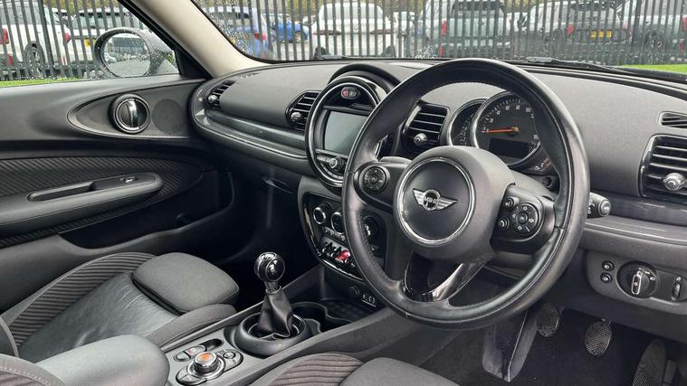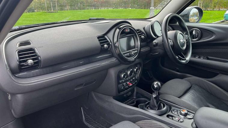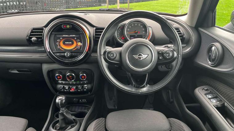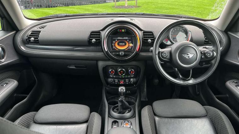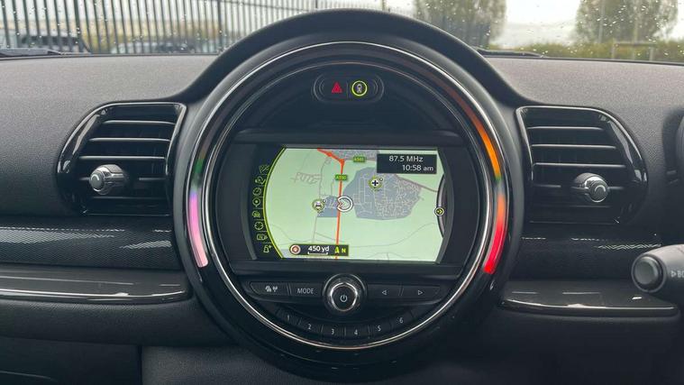 Brake pad wear indicator warning light, Central display with LED ring and 6.5" colour touch screen, DTC - Dynamic traction control, Exterior temperature gauge, Intelligent emergency call, Mini Ecall, MINI TeleServices, Navigation system, On board computer, Personal Profile, Service interval indicator, Servotronic speed sensitive power steering, Electronic differential lock, Auxiliary input socket, DAB digital radio module, MINI Connected, MP3 compatible radio/single CD player, Radio visual boost, Anti dazzle rear view mirror, Body coloured bumpers, Chrome door handles, Chrome exhaust tailpipe, Chrome headlight surround, Chrome plated radiator grille, Electric front windows + one touch + anti-pinch, Electrically adjustable door mirrors, Follow me home headlights, Front intermittent wipers, Heated door mirrors/heated windscreen washers, Heated rear window with timer, Metal look door sill finishers, Rain sensor including auto headlights activation, Rear wiper, Roof spoiler, White indicator lights, 12V power point front, 4 lashing points to secure luggage, 60/40 split folding rear seat, Centre console storage box, Chrome interior door handles, Driver/passenger sunvisors, Easy entry seats, Front and rear cupholders, Front and rear Isofix child seat preparation, Front and rear velour floor mats, Front centre armrest with storage compartment, Front headrests, Front interior light, Front passenger grab handle, Front seat backrest storage nets, Heater with recirculation function, Height/reach adjust steering wheel, Luggage compartment lighting, Multifunction steering wheel, Outer passenger rear headrests, Rear armrest with storage, Rear grab handles, Storage compartments in doors, Toolkit in luggage compartment, Interior lights pack - Mini Clubman, 3 point automatic seatbelts, 3 point seatbelts on all rear seats, ABS, Automatic Stability Control (ASC), Cornering brake control (CBC), Crash Sensor - activates hazard/interior lighting + unlocks doors, Driver and passenger airbags, Driver and passenger side airbags, DSC - Dynamic Stability Control, Electronic brake force distribution, Electronic parking brake, Front curtain airbags, Front passenger airbag deactivation, Fuel cut off safety device, Hill start assist, Pyrotechnically pre-tensioned front seatbelts, Traction control, Twin horns, Tyre pressure warning, Drive away door locking, Keyless Start, Locking wheel bolts, RF remote control central locking, Second remote key, Thatcham category 1 alarm + immobiliser,
