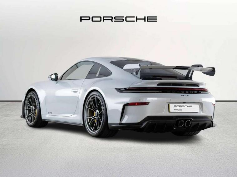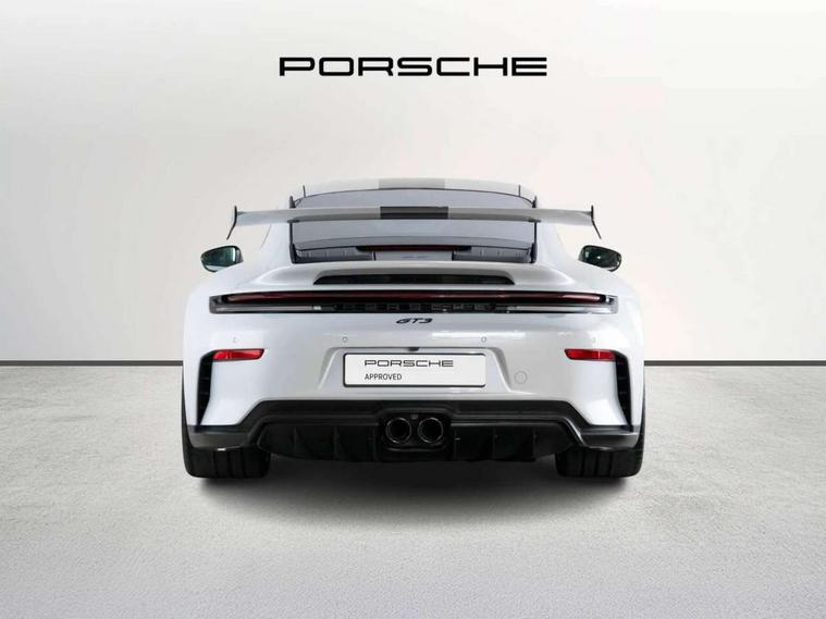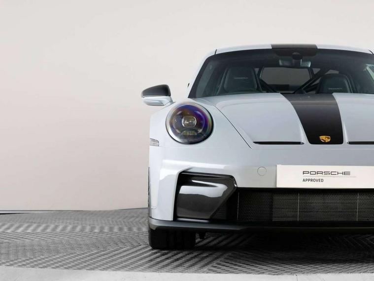 Apple CarPlay, Cruise control, Driver awareness detection, Driving modes, Emergency call systems eCall and bCall, Lane keep assist, Navigation High, Power steering plus, Rear axle steering with sport setup, Reversing camera system, Smartphone compartment with wireless charging up to 15 W, Traffic sign recognition, Voice control, Warn and brake assist including pedestrian protection, 4.0 litres 6-cylinder horizontally opposed and naturally aspirated engine, 63 litre fuel tank, 7 Speed Porsche Doppelkupplung (PDK) with short transmission ratios and sports set up, Lithium-ion lightweight starter battery Track LiFePO4 (40Ah), PASM Sports suspension, Porsche Torque Vectoring Plus (PTV Plus) inc electronically regulated rear differential lock and fully variable torque distribution, Rear wheel drive, DAB Digital radio, Automatic headlight activation including welcome home lighting, Automatically dimming interior and exterior mirrors with integrated rain sensor, Bonnet and roof in exterior colour, Electrically adjustable heated exterior mirrors on door waist rails, aspherical on driver's side, Fuel/charging cover, GT3 Specific rear lid, LED 3rd brake light, LED daytime running lights, Lightweight and noise insulated glass, Lightweight stainless steel sports exhaust system with 2 central tailpipes in black, Lower valance, PORSCHE logo painted in satin black, Rear boot, Rear diffusor in louvered design, Trim on side skirts in black, Unique air intake grille including badge with GT3 touring logo, Windscreen with grey top tint, Delete quilting, Front head restraints, GT-specific PDK gear selector with manual gate and grip area, Headrests with stitched model designation, Interior lighting, Leather door panel and central armrests, Particle/pollen filter with active carbon filter, Roof lining and A, B & C-pillar trims in black race tex, Single front passenger seat, Steering wheel with manual fore/aft and height adjustment, Two zone auto climate control, USB-C fast charging, 3 point automatic seatbelts, Airbags, Electric parking brake, Passenger airbag deactivation, Pedestrian safety, Seatbelt pretensioners, Seatbelt warning device for driver and front passenger seats, Warning triangle, Alarm system with interior surveillance, Alcohol interlock preparation, Keyless Go, Preparation for Porsche Dashcam, Tyre pressure monitoring system with race track mode, TPM valve in silver, Tyre sealing compound and electric air compressor kit, Wheel centres with GT3 logo,
