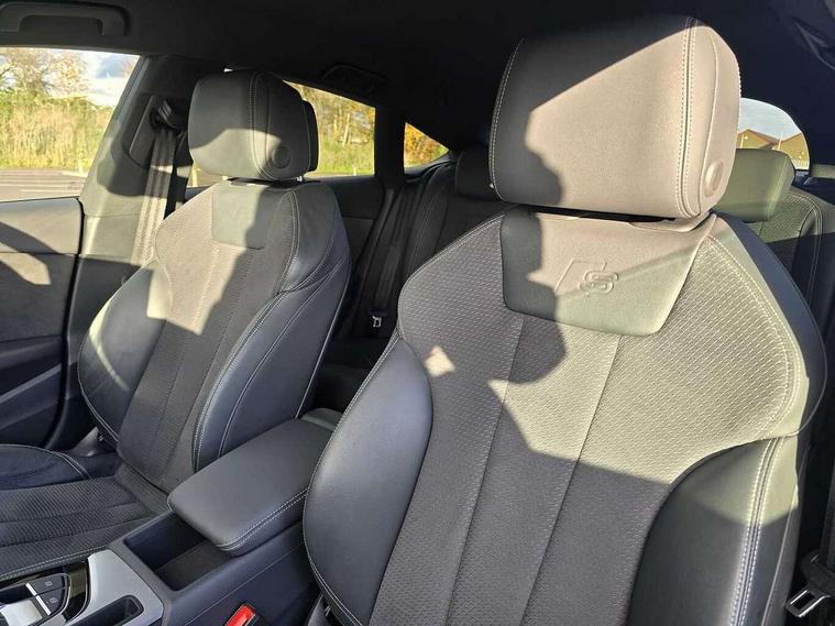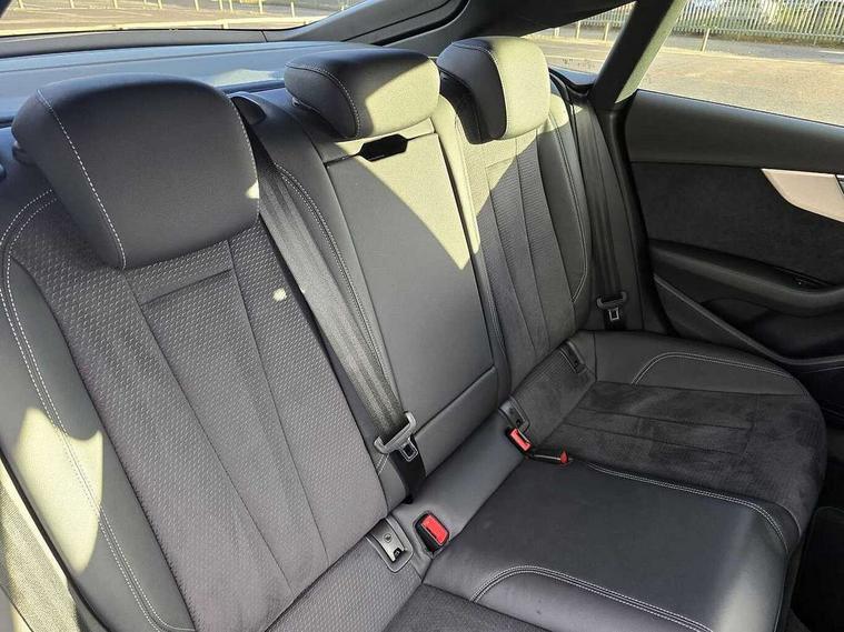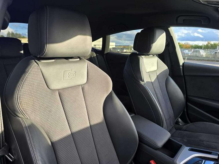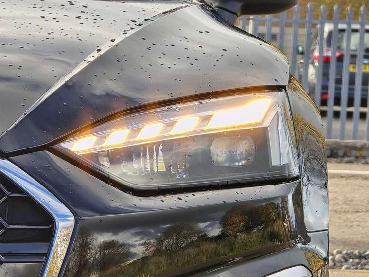Audi connect safety and service (e-call), Audi connect with Amazon Alexa Integration, Audi drive select (Auto, Comfort, Dynamic, Efficiency and Individual), Audi parking system plus with front and rear sensors, Audi smartphone interface, Audi virtual cockpit - 12.3" full colour digital instrument cluster, vehicle/engine speed, Radio/media information+Driver assistance systems, Automatic start-stop system with coasting functionality and efficiency programme, Bluetooth interface, Electro-mechanical power steering, Email, calendar and text messages displayed via MMI, MMI nav+ with MMI touch - 10.1" high resolution MMI display, touch sensitive, 3D map, route/country info, dynamic route guide, personal route assist, Power operated tailgate, Rear view camera, Service interval indicator, Voice control system, Diesel particulate filter, Sports suspension lowered by 23mm, 8 passive loudspeakers, CD player, DAB digital radio reception, Two additional USB ports for rear passenger in rear centre console, Two SDXC card slots, Audi matrix LED headlights with LED rear lights + dynamic front and rear indicators, Auto dimming door mirrors, Auto dimming rear view mirror, Body colour bumpers, Body colour door handles, Body colour front spoiler lip, Body colour side sill trim, Body coloured door mirrors, Electric adjustable heated door mirrors, Electric folding door mirrors, Electric front windows, Front fog lights, Honeycomb structure radiator grille in grained matt black, Kerb-view function for passenger side, LED daytime running lights, LED side indicator lights integrated into door mirrors, LED third brake light, Matt aluminium silver tailpipe trim, Privacy glass, Rain and light sensors, Rear side wing doors, S line badges on front wings, S line front and rear bumpers with side skirts, S Line rear diffuser in matt titanium black with trim strip in matt aluminium silver, Side air inlets in grained matt black with matt aluminium silver inlay, Variable front intermittent wipers, Windscreen with acoustic glazing, 3 seat bench in 2nd row, 4 way electric lumbar support for driver and front passenger, 40/20/40 split folding 3 seater rear bench seat, Adjustable steering column, Black cloth headlining, Black perforated leather gearknob, Contrast stitching on seats, steering wheel and gear lever gaiter, Deluxe 3 zone electronic climate control, Front centre armrest, Front head restraints, Front/rear floor mats, Heated front seats, Illuminated door sill trim with S logo, ISOFIX child seat mounting and top tether, Luggage compartment mat, Manual seat adjustment, Rear centre armrest, Rear headrests, Single front passenger seat, Stainless steel pedals, Sunvisors with vanity mirrors, LED interior light pack - A5/RS5, 3x3 point rear seatbelts, 6 airbags - Driver, front passenger, curtain and side airbags, Electromechanical parking brake, Electronic Stabilisation Control (ESC) including ABS, ASR and EDL, Front passenger airbag deactivation, Height adjustable front seatbelts, Hill hold assist, Manual child lock in rear doors, Multi collision brake assist, Pop-up bonnet for pedestrian protection, Pre sense city, Seatbelt monitoring, Tyre pressure warning, Variable restraint system, Warning triangle and first aid kit, Anti theft alarm system, Anti theft wheel bolts, Immobiliser, Keyless Go, Remote central locking, Matt brushed aluminium inlays, Tool kit, Tyre repair kit,