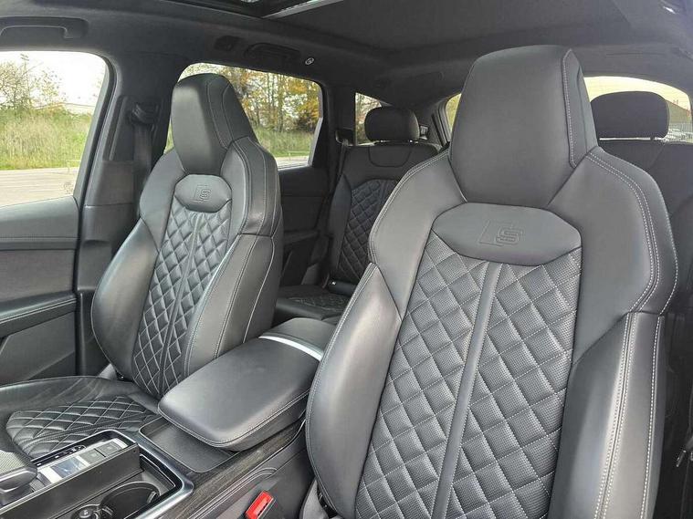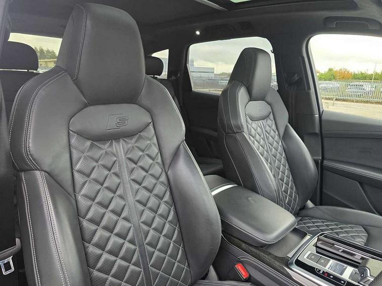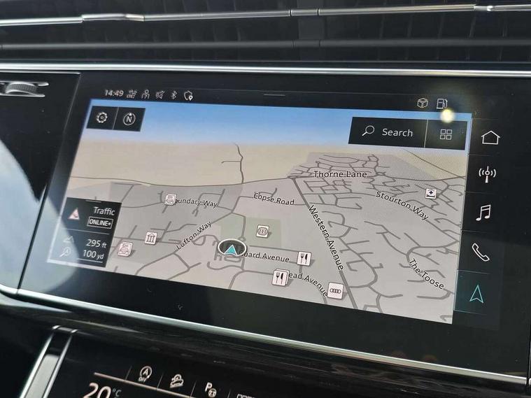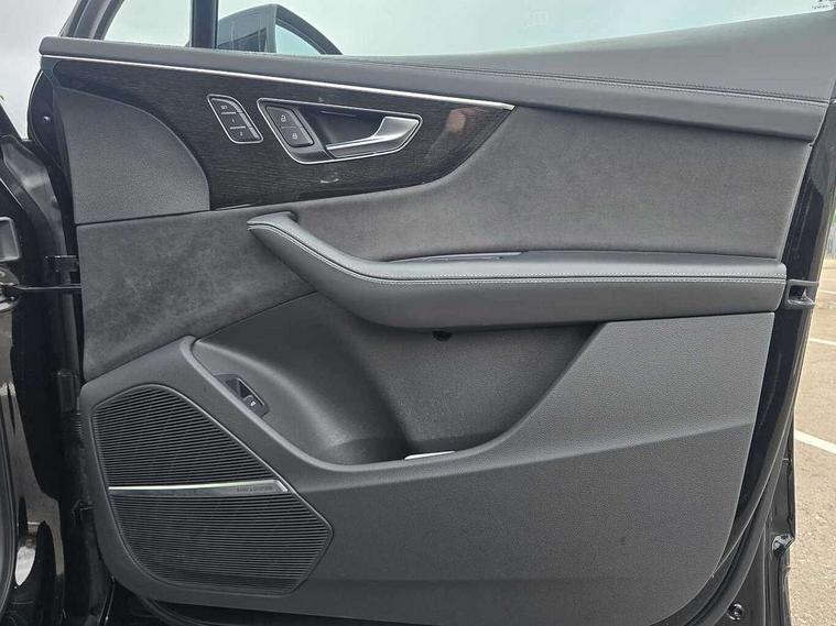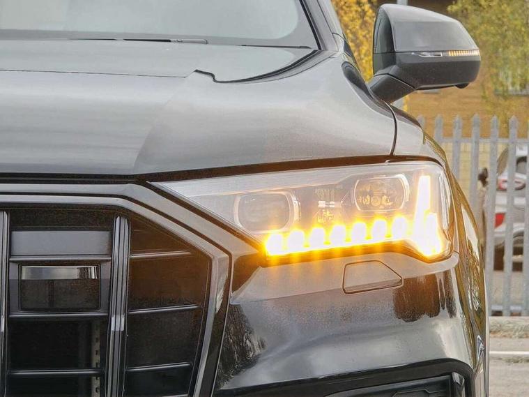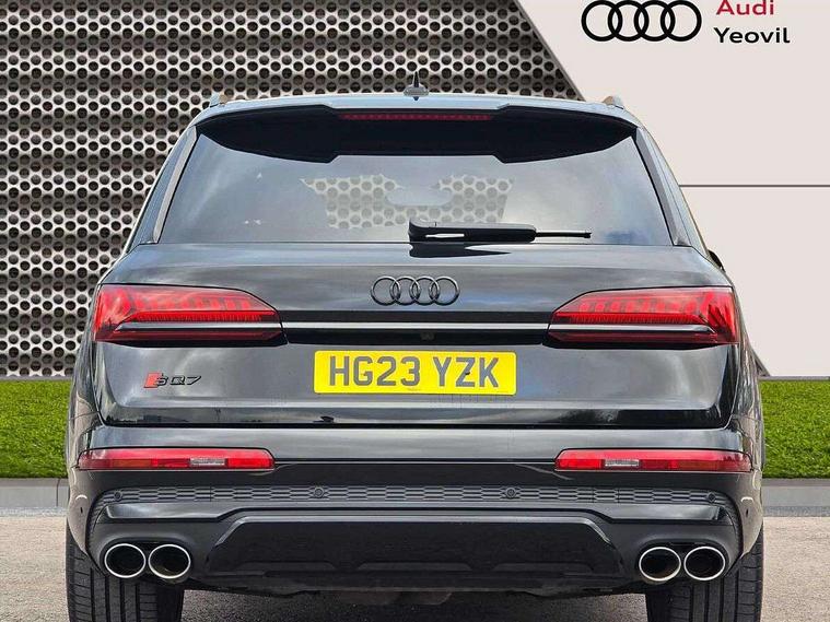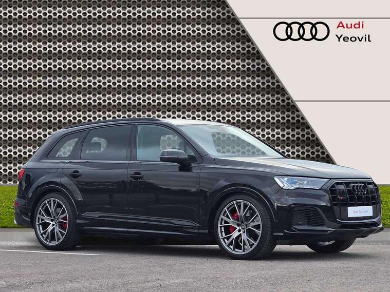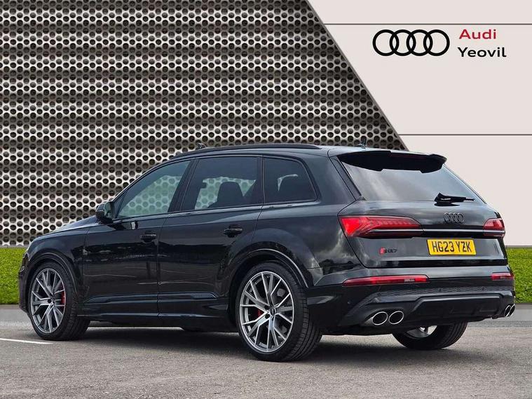 360 degree camera, Audi connect safety and service (e-call), Audi connect with Amazon Alexa Integration, Audi drive select (Auto, Comfort, Dynamic, Efficiency, Individual, Off-road and All road), Audi phone box light with wireless charging, Audi virtual cockpit plus, Bluetooth interface, Camera based traffic sign recognition, Head up Display, MMI navigation plus with MMI touch screens includes 10.1" and 8.6" screens with haptic feedback, Natural voice recognition, PAS, Power door closure, Power operated tailgate, Smartphone interface includes wireless Apple carplay/Android Auto, Start/stop system, 48V Mild hybrid technology, 85 litre fuel tank, Electromechanical active roll stabilisation, Quattro all wheel drive with self locking centre differential, Quattro with sport differential, S specific adaptive air sport suspension, Audi music interface - front 2 USB-C ports with charger and data functions, Bang + Olufsen premium sound system, DAB digital radio module, 3rd brake light, Adaptive windscreen wipers with integrated washer jets, Audi Beam uses LEDs to project Audi logo onto the ground as you exit your SQ7, Audi HD matrix LED headlights with Audi laser light + dynamic front and rear indicators, Auto dimming frameless rear view mirror, Black roof rails, Electrically adj heated/folding + automatically dimming exterior mirrors with memory + automatic kerb side function for passenger side exterior mirror, Gloss black finish for exterior Audi rings and SQ7 logos, Headlight washers, Heat insulating glass in windshield, Integrated LED indications in door mirrors, LED daytime running lights, LED rear tail lights, Privacy glass - dark tinted rear and rear side windows from B-pillar backwards, Rear side wing doors, Rear wiper, S specific rear bumper with 4 exhaust pipes, 2 seat bench in 3rd row, 3 seat bench in 2nd row, 3 spoke heated leather multi-function sport steering including paddle shift, 4 zone deluxe automatic climate control, 7 seat layout with ISOFIX points for the front passenger seat and rear passenger seat, Ambient lighting in surfaces and edges, Black dinamica headlining, Comfort front centre armrest, Contour lighting accentuates lines and joint contours, Double sun visors with illuminated vanity mirrors, Electric adjustable front seats/backrest bolsters, lumbar support, memory functionality, Electric steering wheel adjustment, Folding rear seats, Front head restraints, Front/rear floor mats, Heated front seats, Illuminated door sill trims with S logo, LED glare-free lights, Luggage compartment sill protection in stainless steel, Manual sunblind for the rear side windows and manual sunblind for the rear window, Rear head restraints, Seat ventilation and massage function in the front, Single front passenger seat, Stainless steel pedals, Valcona leather upholstery with front super sport seat S embossed logo, Anthracite black styling pack - Q7/SQ7, City assist pack - Q7, Extended leather pack - SQ7, Technology Pack Pro S - SQ7, Tour pack with Adaptive cruise assist - Q7, 3 point seatbelts on all rear seats, Audi pre sense front, Child locks on rear doors, Driver and front passenger, front side and curtain airbags, Electromechanical parking brake, Electronic Stabilisation Control (ESC) including ABS, ASR and EDL, Extended pedestrian protection measures, Hill hold assist, Seatbelt monitoring, Tyre pressure loss indicator, Warning triangle and first aid kit, Anti theft alarm, Anti-theft wheel bolts and wheel loosening detection, Remote central locking, 22" 5-V Spoke aluminium star design audi sport matt grey with gloss turned finish alloy wheels, Tool kit, Tyre repair kit,