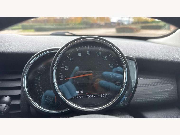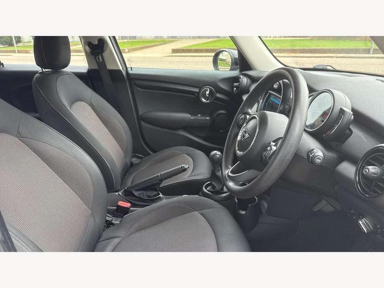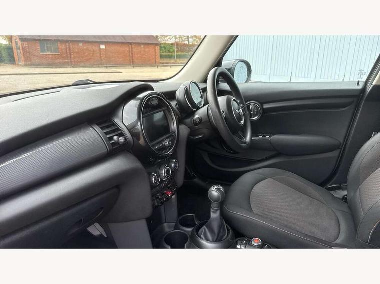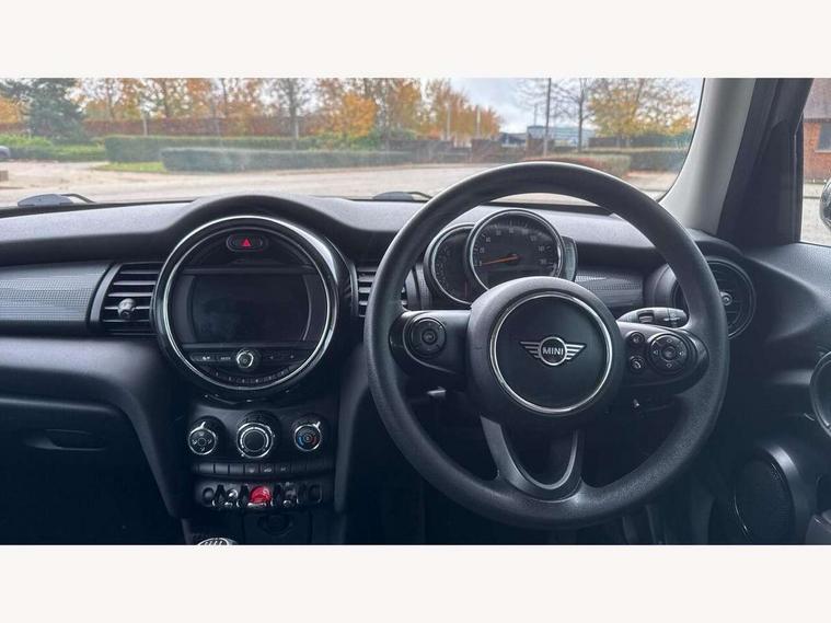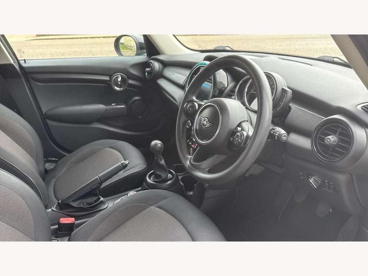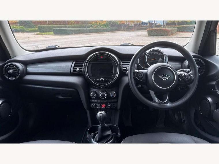 Automatic start/stop function with brake energy recuperation, Compatible mobile phone bluetooth with audio streaming, Electro-mechanical speed dependant steering assistance, Instrument cluster, Mini E-call, MINI TeleServices, On board computer, Service interval indicator, Double Vanos system, Fully variable valve control, Gear change indicator display, High precision injection, 6.5" touchscreen with LED ring, FM tuner and DAB digital radio, Automatic headlight activation switch, Body colour fuel filler cap, Chrome border high gloss black slats radiator grille, Dynamic brake lights, Electric front+rear windows, Heated rear window, Heated windscreen washer jets, LED headlight with closed ring and daytime driving lights, Left exhaust tailpipe with chrome finisher, Metal door sill strips with MINI imprint, Model logo Cooper on right of tailgate, Rain sensor window wipers, Rear fog lights, Rear LED lights with union jack design, Rear window wiper, Side scuttle panel with integrated indicator, Sun/heat protection glass, White indicator lenses, 12V Accessory socket in centre console, 4 lashing eyes in luggage compartment, 60/40 split folding rear seat, Carbon Black colour line, knee roll and door armrests, Chrome interior highlights, Colour line - Carbon black, Cupholders, Front and rear head restraints, Front and rear isofix with front passenger airbag deactivation, Glove compartment, Height and length steering column adjustment, Interior lighting with 12 basic colours selectable via toggle switch in roof, Leather gearshift lever and handbrake gaiters, LED reading lights, vanity mirror lights, front foot well light and spotlight on front seats, Manual air conditioning, Mechanical seat adjustment, driver seat height adjust, forward/back and front seats backrest, Mini logo projection on floor from drivers exterior mirror, Multifunction steering wheel, Satellite grey headlining, Storage compartments in doors, Sunvisors with vanity mirrors, 3 point seatbelts on all five seats, 6 Airbags - front, side, head and seat belt tensioners, Anti-lock braking system (ABS), DSC - Dynamic Stability Control, Front and rear disc brakes, Hill start assist, Single tone fanfare horn, Tyre pressure monitoring system, Alarm system with tilt sensor, monitoring doors, bonnet interior and tailgate, Electronic vehicle immobiliser, Start/stop toggle with keyless go, Tool kit, Tyre repair kit,