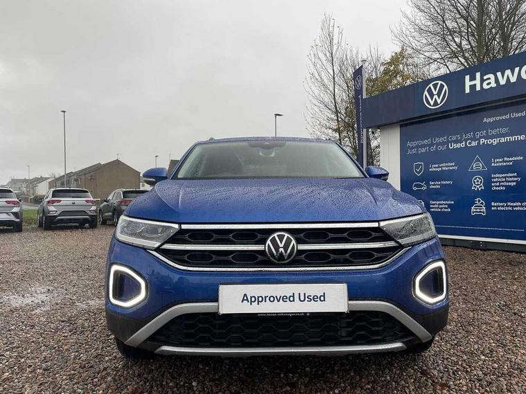 10.25" Digital cockpit pro, Bluetooth mobile phone interface, Driver alert system with fatigue detection, Driver tips and journey analysis, Emergency call service, Lane keeping system Lane Assist, Modified key software - reduce switch off time for key status change to Long no motion, Online services, Park assist including front and rear parking sensors, Service interval indicator, Tailgate/trunk lid release from outside, Think blue trainer driver tips and journey analysis, Warning sound and light for front seatbelts unfastened, Wireless app connect, Battery regeneration during braking, Start/stop function with battery regeneration, Diversity antenna for FM reception, Front and rear 6 speakers, Music playback - MP3, WMA and AAC files, Premium USB cable in choice of either Apple or Android smartphone compatibility, SD card slot, Simultaneous pairing of 2 compatible mobile devices, Title and cover art display, We Connect and We Connect Plus functionality, 3rd brake light, Auto dimming interior rear view mirror, Automatic hazard lights activation under emergency braking, Automatic headlight control with LED separate daytime running lights with coming/leaving home function, Body colour sports bumpers with silver metallic underbody fascia, Dynamic headlight range control with self adjusting whilst driving, Extended roof spoiler, Exterior mirrors aspherical on driver side, convex on front passenger side, External USB type C socket and charging sockets, Front windscreen wiper with intermittent wipe and 4 position delay, Heated rear window, LED Plus headlamps, LED rear combination lamps, LED rear number plate lights, LED tail lamp rear comination lamps, Light mode for poor weather, rain, fog or snow, Power windows with comfort operation and circuit breaker, Rain sensor, Rear exhaust tailpipe, Rear fog light on one side and reversing lights on both sides, Rear side wing doors, Rear wash/wipe with intermittent wipe setting, Remote electrically foldable door mirrors, puddle lights and reverse activated passenger's door mirror, 12V power socket in centre console, 3 rear head restraints, 3 seat bench in 2nd row, 4 load lashing points in luggage compartment, Air care climatronic air conditoning system with active combination filter and 2-zone temperature control, Chrome plated radiator grille inserts, air vent surrounds and light switch surrounds, Door and side trim panel with leatherette insert, Drawer under drivers seat, Front + rear carpet mats, Front centre armrest, Front comfort sports seats, Front cupholders x 2, Front footwell illumination, Instrument lighting, white adjustable panel illumination, Interior ambient lighting and surround lighting, Interior light delay, Isofix child seat preparation, Leather gearshift handle, LED interior light with switch off delay/dimmer and 2 front/rear LED reading lights, Load-through provision with cup holder when folded down ('Unsplit rear seat bench, split folding backrest, with centre armrest), Luggage compartment lighting, Non-folding front passenger seat backrest, Single front passenger seat, Storage compartment in left and right luggage area, Storage compartment in rear doors, Storage compartments in driver and front passenger doors, Sunvisors with illuminated vanity mirrors, Variable boot floor, height adjustable and removable, Driver assistance pack without proactive passenger protection - T-Roc, 3 point height adj front seatbelts + pretensioners, 3 point seatbelts in outer rear with ECE label, ABS, Child locks on rear doors, Driver and front passenger airbag with front passenger airbag deactivation, Driver and front passenger safety-optimised head restraints, Drivers seatbelt reminder, Electronic parking brake, Electronic Stability Control (ESC) inc EDL (Electronic Differential Lock) and ASR (Traction Control), Front and rear passengers curtain airbag system including front side airbags, Front assist with city emergency braking and pedestrian monitoring, Front seat side impact airbags, Predictive pedestrian protection, Rear disc brakes, Single tone horn, Tyre pressure loss indicator, Volkswagen roadside assistance, Alarm with interior protection, Anti-theft alarm system with interior monitoring, backup horn, and towing protection, Remote central locking with SAFELOCK, radio remote control with 2 remote control folding keys, Trims for alloy wheels,