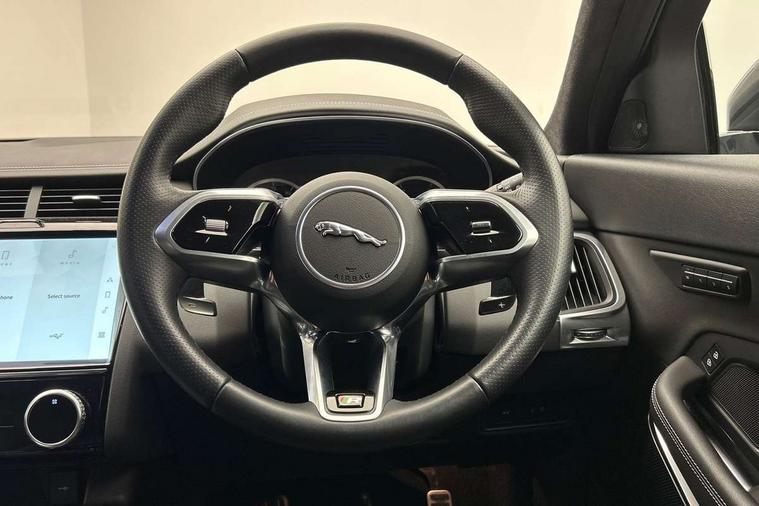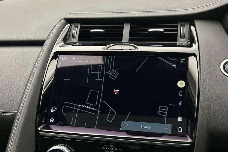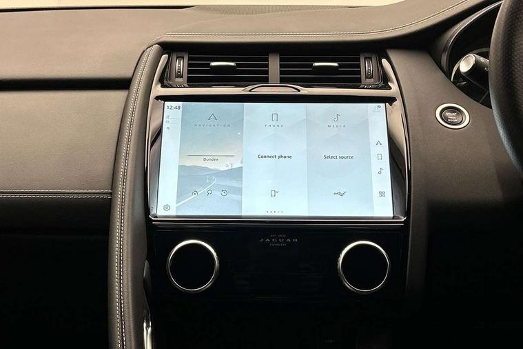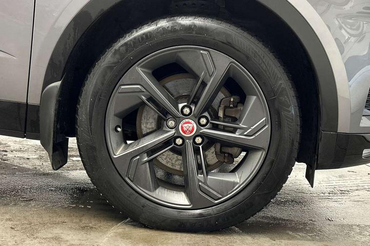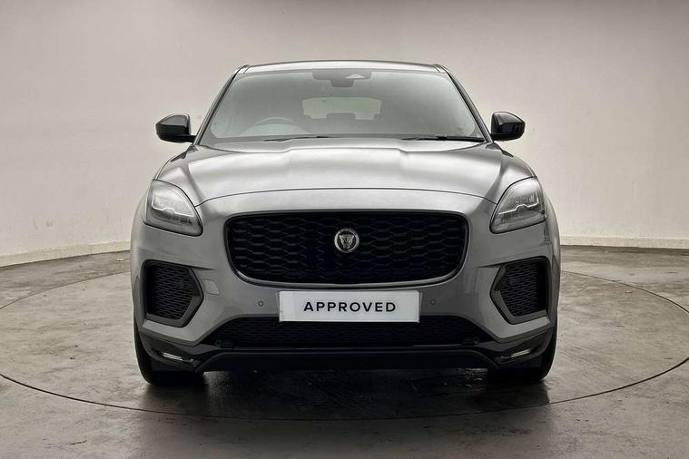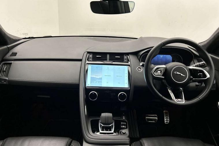 11.4" touchscreen with central ICP, 12.3" full digital instrument panel, Adaptive cruise control, Android Auto, Apple car play, Driver condition monitor, Eco driving style assistant, Electric power assisted steering, Emergency services call system, Front and rear parking aid, InControl remote, Jaguar drive control with adaptive surface response, Jaguar Toggle sport shift selector, Lane keep assist, Outside temperature gauge, Pivi pro connected infotainment system with smart settings and navigation pro, Push button start, Speed proportional steering, Traffic sign recognition with adaptive speed limiter, Trip computer, Voice control system, Configurable dynamics, Diesel particulate filter, Efficient Driveline, Passive suspension, AM/FM DVD MP3 radio, Bluetooth connectivity including audio streaming, DAB digital audio broadcast, Dynamic volume control, 3 flash lane change indicators, Approach Illumination, Auto high beam assist, Automatic headlights, Body colour door handles, Body colour upper spoiler, Body coloured side sills, Centre high-mounted stop light, Electric front/rear windows with one touch/auto up/down, Electric heated/power fold memory door mirrors with approach lights and auto dimming driver side, Embossed leaper for grained and windsor leather, Fixed panoramic glass sunroof, Heated washer jets, Heated windscreen, Jaguar script and leaper, LED tail lights, LED third brake light, Narvik black antenna pod and side pillar finisher, Narvik black door mirrors, Narvik black front and rear low bumpers, Narvik black lower side cladding, Privacy glass, R Dynamic badge, Rain sensor windscreen wipers, Rear fog lights, Rear side wing doors, Rear wash wiper, Satin black grained front outer grille, low grill mesh and low bumper valence, side fender vent mesh and finisher, rear tow eye cover and grille mesh, Twin exhaust tailpipe, Variable front intermittent wipers, 3 rear head restraints, 3 seat bench in 2nd row, 40:20:40 rear seat fold, Bright metal pedals, Carpet mats, Centre console with armrest, Enhanced ambient lighting, Hooks loadspace, ISOFIX on outer rear seats, Loadspace cover, Loadspace light, Loadspace storage net, Luggage tie-downs in loadspace, Manual height/reach adjust steering wheel, Multifunction steering wheel, Overhead lighting console, Passive front head restraints, Power sockets, R-Dynamic branded leather steering wheel, Rear air vents, Rear bench seats, Satin chrome gearshift paddles, Single front passenger seat, Sunvisors with illuminated vanity mirrors, Twin front cupholders, Two zone climate control, Exterior black pack - E-pace, 3x3 point rear seatbelts, ABS, All surface progress control (ASPC), Child locks on rear doors, Customer configurable autolock, DSC - Dynamic Stability Control, Electronic brake force distribution, Electronic parking brake, Emergency brake assist, Emergency braking, Front airbags with passenger seat occupant detector, Front and rear curtain airbags, Front and rear seatbelt reminder, Front passenger airbag deactivation, Front seatbelt pretensioners, Front side airbags, Height adjustable front seatbelts, Hill start assist, Low friction launch, Power child locks, Torque vectoring brake, Tyre pressure monitoring system, Intrusion sensor and alarm, Locking wheel nuts, Remote central locking,