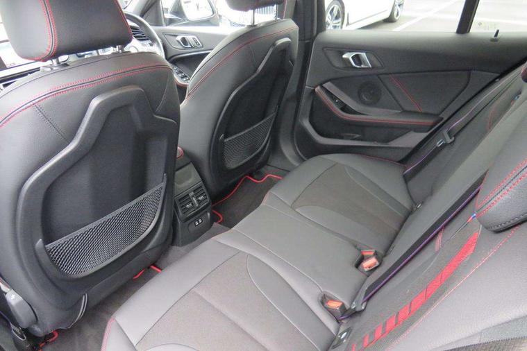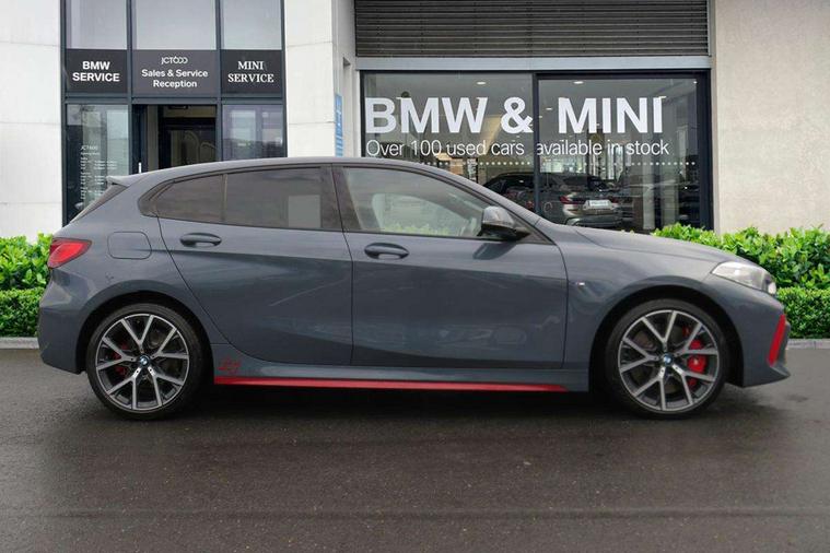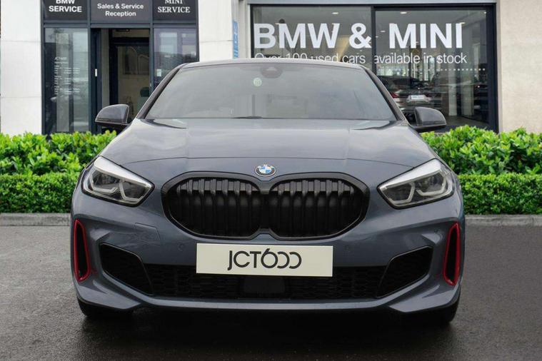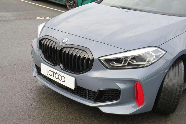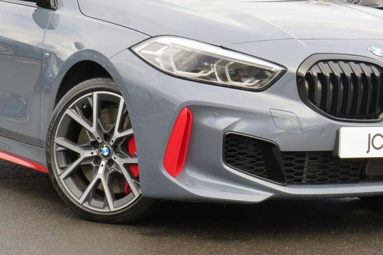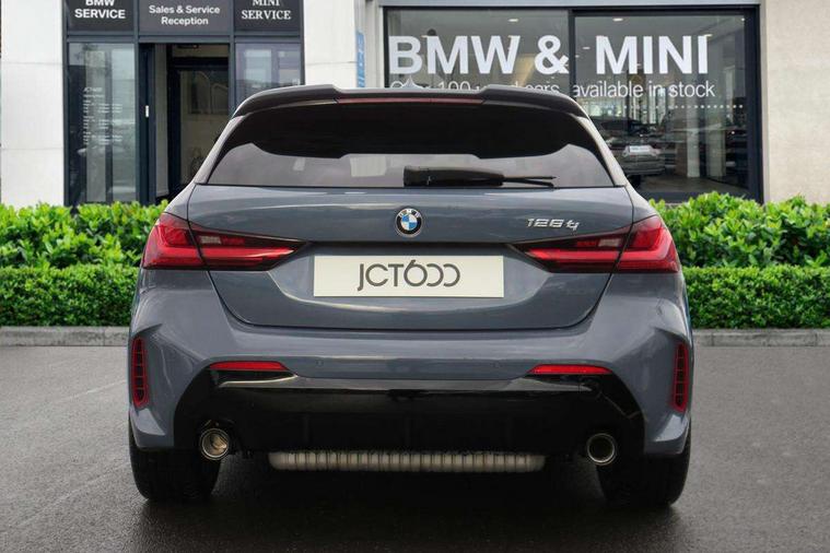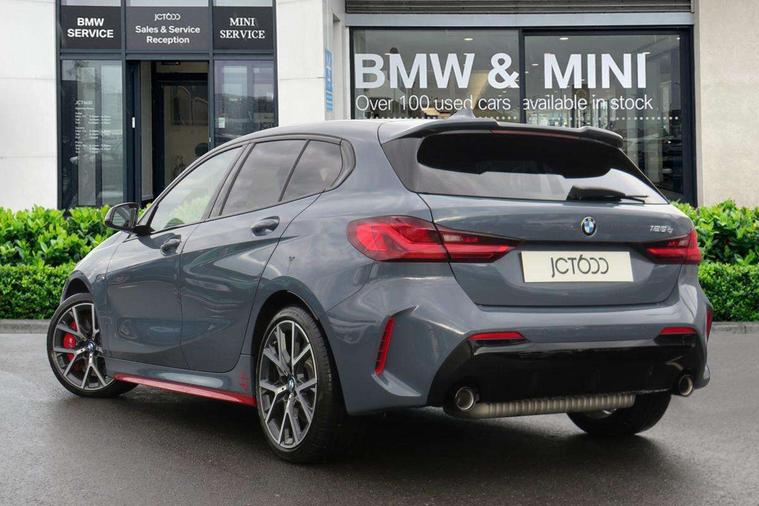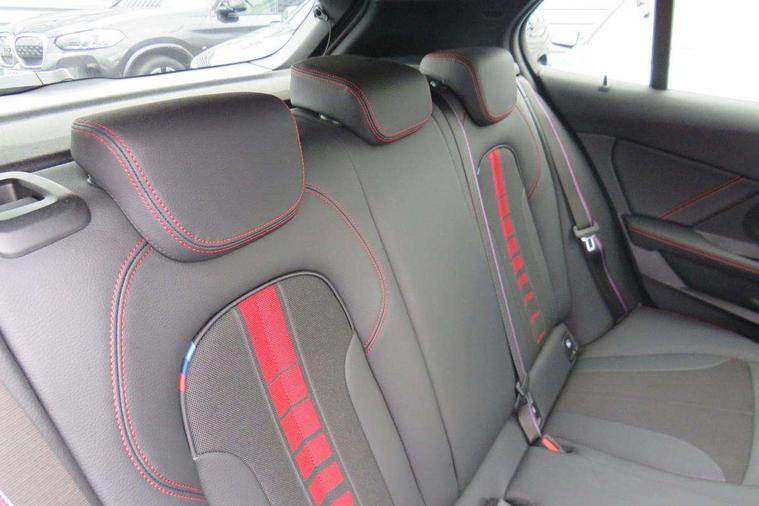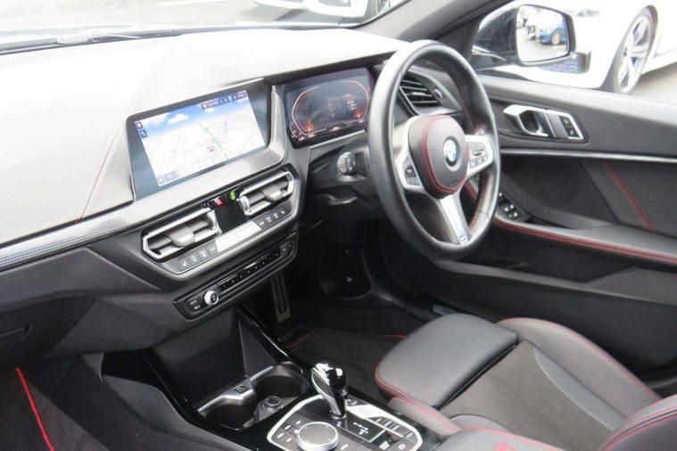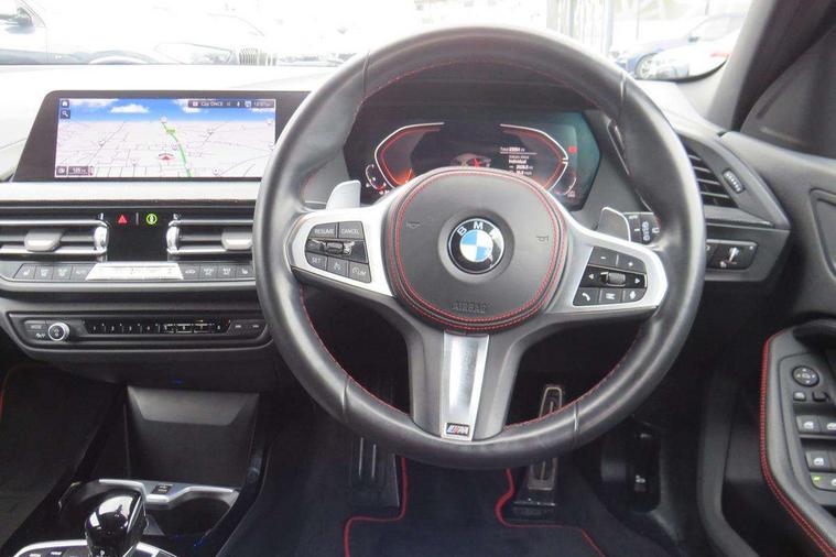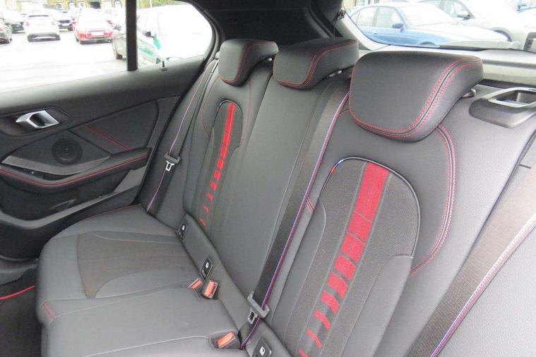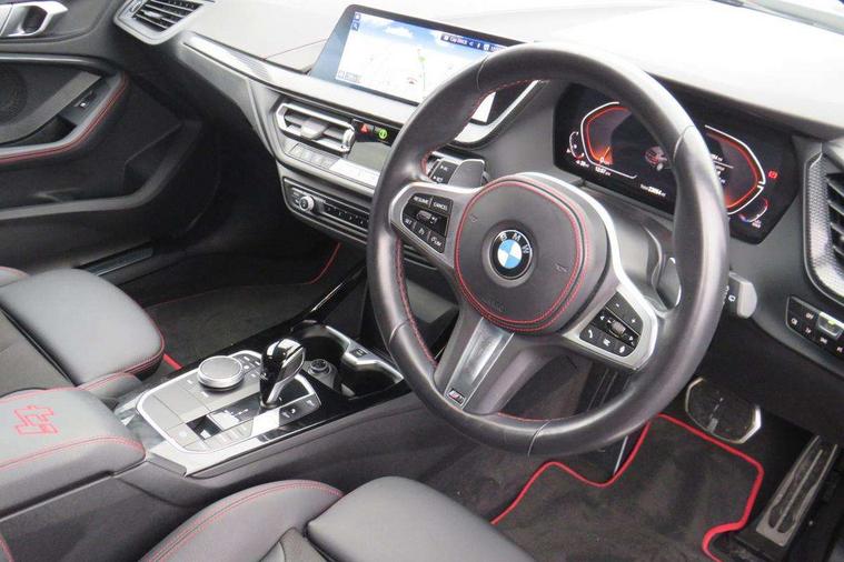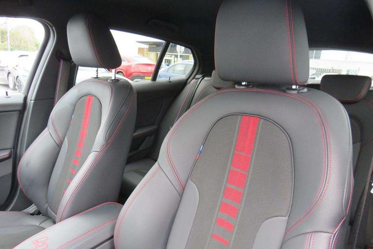 Active guard plus, Attentiveness assist, BMW ConnectedDrive online services, BMW Teleservices, Check Control warning system for monitoring of lights and door/luggage compartment open warning, Cruise control with brake assist, Eco pro mode, Electric power steering with Servotronic steering optimised at all speed ranges, Front axle single joint with specific axle kinematics to minimise drive influences on steering + provide increased rigidity agile driving behaviour, Integrated owners handbook, Lane departure warning system, Oil sensor for level and grade, On board computer, Optimum shift indicator, Personal Profile, Pull away assistant, Rigidly mounted rear subframe - Multi link construction with separate spring / damper configuration and excellent driving characteristics, Speed limit Info including no-overtaking indicator, Speed limiter, Aluminium lightweight construction, Anti roll bar front and rear, Balancer shaft, Double VANOS twin scroll turbocharging system, Drive Performance Control, Eight speed sport automatic transmission with gearshift paddle switches, Electronic differential lock, High precision injection, Larger fuel tank capacity (50 litres), M sport suspension with M128i xDrive specific settings, Petrol Particulate Filter, Twin tube gas filled shock absorbers with degressive characteristic curve, VALVETRONIC engine management, DAB Digital radio, Auto dimming rear view mirror, Automatic headlight beam throw control, Automatic windscreen wipers and automatic headlight, Black chrome tailpipe finishers, BMW individual high gloss shadow line with extended content, Body colour door handles, Body colour mirror caps, Body colour roof trims, Chrome 'M' logo side designation, Chrome kidney grille frame with Satin Aluminium struts, Direction indicator side lights in exterior mirrors, Fading support, Folding side mirrors with auto dimming/folding wing mirrors with auto dimming, Follow me home headlights, Front and rear bumper system with replaceable deformation elements, Front and rear electric windows with open and close fingertip control, anti trap facility and comfort closing, Front door sill finishers in black plastic with M designation in metallic look, Green tinted heat protection glazing, Heated, electrically adjustable exterior mirror aspheric on driver side, convex on passenger side, High gloss shadowline window frame, Recess cover mirror frames and B/C pillar embelisher trim, High level third brake light, Integrated front windscreen with washer jets, Kidney frame and struts in high gloss black extended, LED daytime running lights, LED eyebrow turn indicators, LED front fog lights, LED Headlights, Lightweight engineering, Matt black air guide grilles, Matt black wheel arch trim, Model designation on electric bootlid, Nearside reverse light in rear light cluster, Preparation for high beam assistant, Rear fog lights, Rear side wing doors, Rear window wiper, Shark fin antenna, Trailer stabilisation logic, Visible VIN plate, Welcome lighting, 12V power socket in front centre console with blanking plug, 3 rear seat head restraints, 3 seat bench in 2nd row, Anthracite headlining, Black boot net with lashing eyes, Cargo function on 2nd seat row, Centre armrest in black/red highlight including embroidered 'ti' designation in red, Child seat ISOFIX attachment for two outer rear seats and front passenger seat with anchorage points, Conditioned based service, Driver and front passenger seat heating, Floor mats with red binding, Folding rear clothes hook, Four grab handles integrated in roof lining, Front and rear door pockets with bottle holders, Front and rear side armrest integrated into door trim, Front armrest, Front sports seats, Glove compartment, Height adjustable front head restraints, Instrument panel top section , door armrests and door panels in black/red highlight, Luggage compartment for bag hooks on left and right, foldable luggage compartment liner and four lashing eyelets, Manual adjust steering wheel, Multi-function controls for steering wheel, Single front passenger seat, Storage compartment in centre console, Sun visors with vanity mirrors and insert tab, Three spoke M sport design multi function leather steering wheel in unique red stitching, Two front centre console cupholders, Two zone automatic air conditioning, Additional interior lighting pack - 1 Series, BMW live cockpit professional pack- 1 Series, Connected pack professional - 1 Series, Interior lights pack - 1 Series, M Sport exterior styling aerodynamics pack - 1 Series, 2 tone horn, 3 point seatbelts on all seats, front pyrotechnic belt tensioners, stopper and belt force limiters, rear coded belt buckles, Airbags - Front driver/passenger, front and rear curtain head protection, front side, manual deactivation of front passenger airbag, Anti lock braking system (ABS) with brake assist, BMW emergency call, Brake drying, Braking readiness, Child proof locking system in rear door, City braking function, Comfort modes, Cornering brake control, Crash sensor activating central locking release, hazard warning lights, fuel cut off, interior lighting + activation of safety battery terminal clamp, Driver and front passenger seat belt security check, Dynamic stability control + (DSC+), Dynamic Traction Control - DTC, Electrically operated hand brake including automatic hold function, Front and rear disc brakes, M Sport brakes with red calipers, M Sport seatbelts, Seatbelt warning, Side impact protection, Tyre pressure monitoring system, Warning triangle and first aid kit, Central locking switch for all doors, fuel filler cap and luggage compartment, Deadlocking function system to all doors, Drive away locking system on all doors and luggage compartment with de-activated in iDrive settings, Locking wheel bolts, Remote control with integrated key with High-gloss Black inlay and M designation and 1 button for open/ close lock, window, open luggage compartment, Start/stop button illuminated in centre console with keyless e