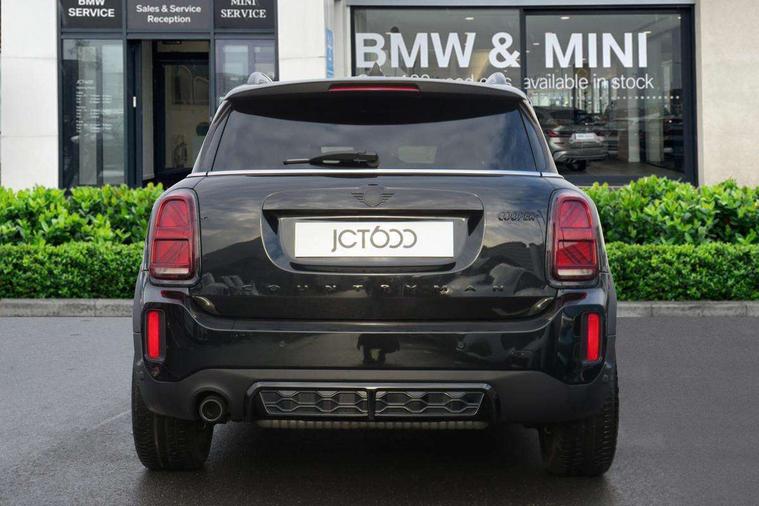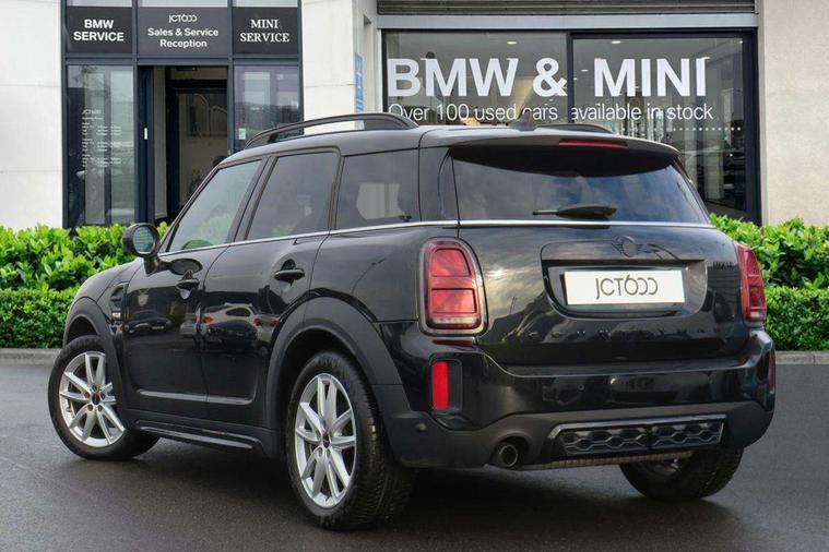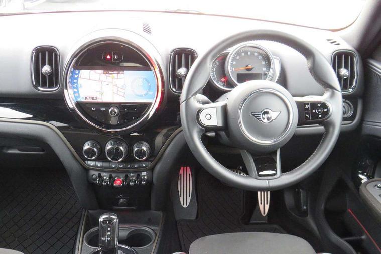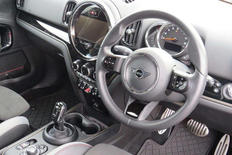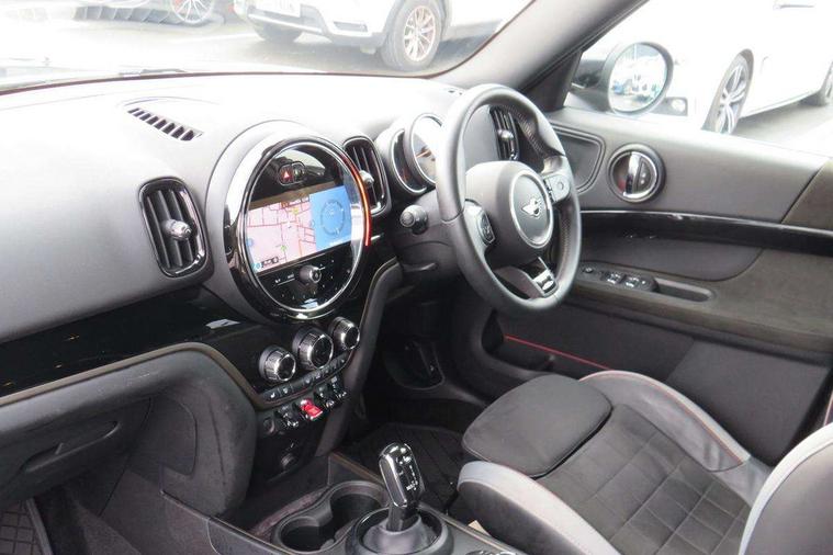 Active Guard incl speed limiting and lane departure functions with auto steering, and front collision warning with brake intervention, Automatic start/stop function with brake energy recuperation, Compatible mobile phone bluetooth with audio streaming, Cruise control with brake assist, Electro-mechanical speed dependant steering assistance, Instrument cluster, MINI Driving Modes - centre toggle switch to control driving setting (sport, mid and green), Mini E-call, On board computer, Rear parking distance control, 51 Litre fuel tank, Double Vanos system, Fully variable valve control, High precision injection, Performance Control, Steptronic transmission with double clutch, FM tuner and DAB digital radio, 3rd brake light, Body colour fuel filler cap, Day time driving lights, Door sill strips, Dynamic brake lights, Electric windows, Heated rear window, Heated windscreen washer jets, John Cooper Works - aerodynamic kit (front and rear apron, spoiler), front and rear sport bumpers and part-painted side sills with door sill finishers, John Cooper Works Logo, LED fog lights, LED Headlights, Model logo, Model logo on Tailgate, Rain sensor with auto headlights, Rear fog lights, Rear side wing doors, Rear window wiper, Side scuttle panel with integrated indicator, Split rear doors, Sun/heat protection glass, White indicator lenses, 12V socket in centre console, 3 seat bench in 2nd row, 360L luggage compartment capacity, 4 lashing eyes in luggage compartment, 40:20:40 split folding rear seats, Anthracite headlining with grab handles and clothes hooks, Chrome interior highlights, Colour line - Carbon black, Cupholders, English handbook, Floor mats, Front headrests, Glove compartment, Height and length steering column adjustment, Interior lighting with 12 basic colours selectable via toggle switch in roof, Isofix rear child seat preparation, LED reading lights, vanity mirror lights, front foot well light and spotlight on front seats, Manual air conditioning, Mini John Cooper Works leather gearshift lever and handbrake gaiters, Multifunction steering wheel, Nappa leather steering wheel with MINI Yours logo, Rear headrests, Single front passenger seat, Stainless steel pedals and foot rest, Storage compartments in doors, Sunvisors with vanity mirrors, Excitement pack - Countryman, Navigation pack - Countryman, Piano black exterior pack - Countryman, 2 tone horn, 3 point seatbelts on all seats, 6 Airbags - front, side, head and seat belt tensioners, Anti-lock braking system (ABS), DSC - Dynamic Stability Control, Electronic handbrake, Front and rear disc brakes, Hill start assist, Manual rear child locks, Tyre pressure monitoring system, Alarm system with tilt sensor, monitoring doors, bonnet interior and tailgate, Auto drive away locking, Deadlocking function, Electronic vehicle immobiliser, Locking wheel bolts, Start/stop toggle with keyless go, Piano black JCW interior trim, Tool kit,