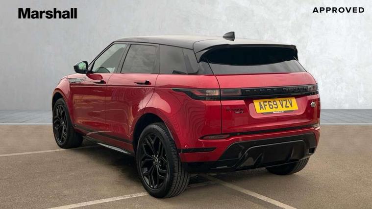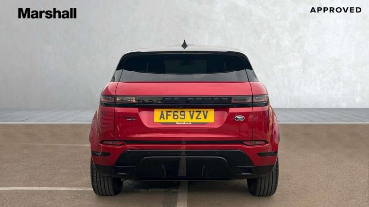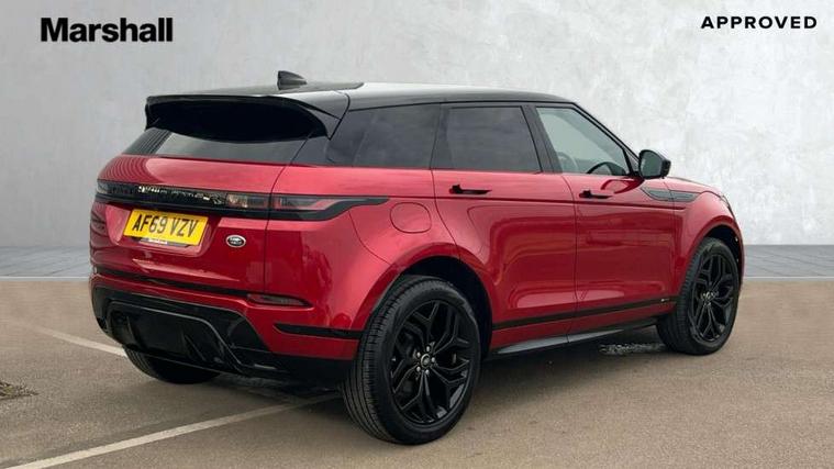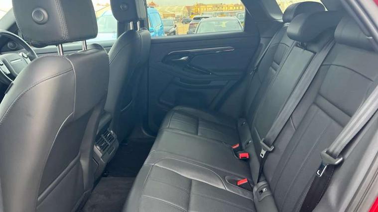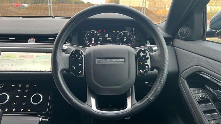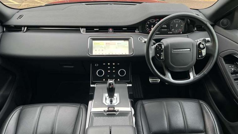 Android Auto, Apple car play, Bluetooth connectivity, Brake pad wear indicator warning light, Driver condition monitor, Electronic power assisted steering (EPAS), InControl remote, Land Rover InControl apps, Lane keep assist, Navigation pro system, Pro services and wifi hotspot, Push button starter, Smart settings, Traffic sign recognition with adaptive speed limiter, Voice control system, All terrain progress control, Efficient Driveline, Passive suspension, Terrain Response 2 Auto, Digital Audio Broadcast radio-DAB, Steering wheel mounted controls, Electric windows with one touch open/close and anti trap, Evoque and R-Dynamic badge, Flush deployable exterior door handles, Heated rear window with timer, Heated washer jets, Heated windscreen, Rain sensing windscreen wipers, Rear fog lights, Shadow atlas bonnet and tailgate script, Tailgate spoiler, 40:20:40 split folding rear seats, Black gearshift paddles, Bright metal pedals, Isofix system on outer rear seats, Overhead lighting console, Overhead stowage for sunglasses, Passive front head restraints, Rear air vents, Rear centre headrest, Sunvisors with illuminated vanity mirrors, Twin front cupholders with cover, Twin sliding front centre armrest, Two zone climate control, Anti-lock braking system (ABS), Customer configurable autolock, DSC - Dynamic Stability Control, Electronic brake force distribution, Electronic parking brake, Electronic traction control, Front and rear seatbelt reminder, Hill descent control, Hill launch assist, Low traction launch, Power operated child locks, Roll stability control, Six airbags - Driver and passenger airbags/driver knee airbag/front side airbag and curtain airbags, Torque vectoring brake, Tyre pressure monitoring system, Alarm, Immobiliser, Intrusion sensor, Locking wheel nuts,