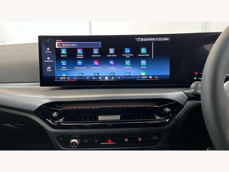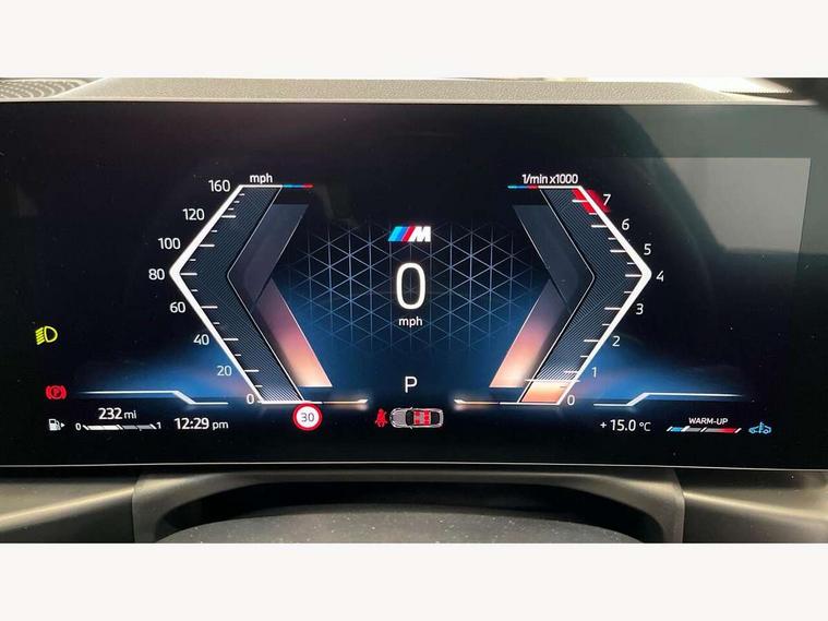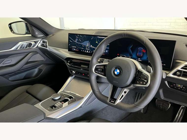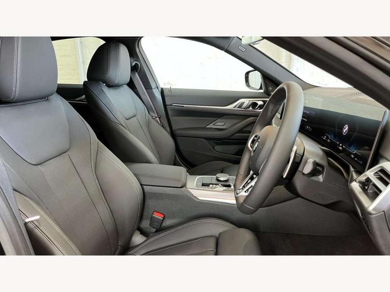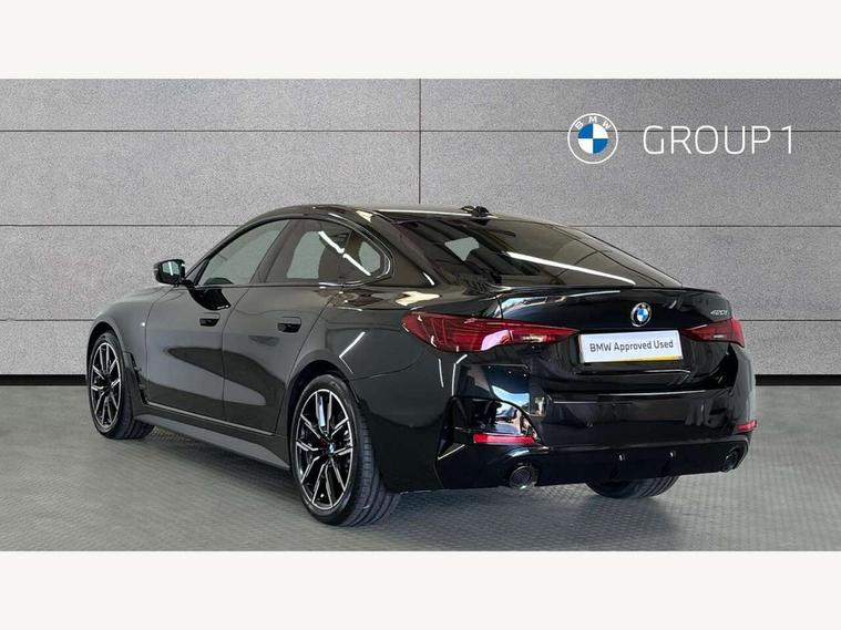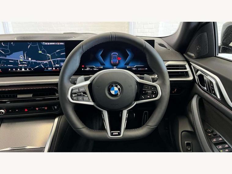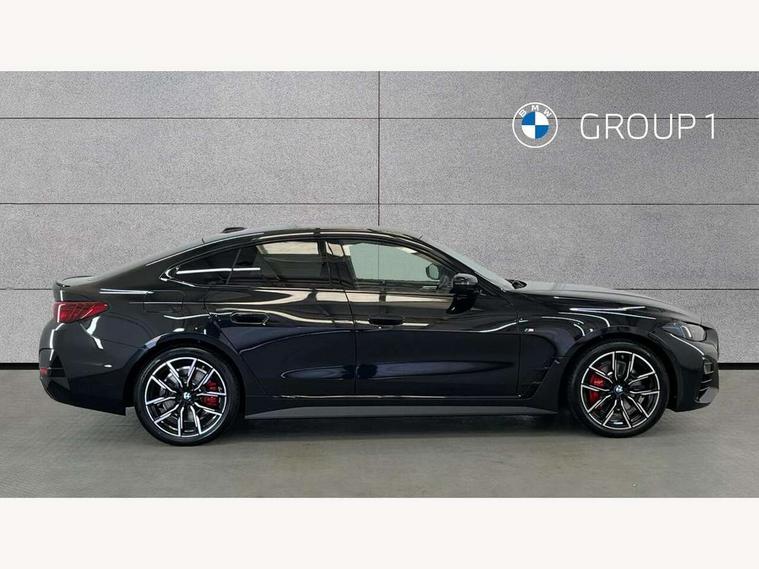 Active guard plus, Attentiveness assist, Automatic start/stop function, BMW ConnectedDrive online services, BMW iDrive controller on centre console, BMW service history, BMW Teleservices, Brake pad wear indicator in front and rear, Check Control warning system for monitoring of lights and door/luggage compartment open warning, Condition based service, Electric bootlid, Electric power steering with Servotronic steering optimised at all speed ranges, Instrument cluster with speedometer with mph readout, tachometer, fuel gauge and oil temperature gauge, Integrated owners handbook, Language version English, Oil sensor for level and grade, On board computer - average speed, fuel consumption, outside temp display with acoustic warning, clock/date, service interval, odometer/trip meter, Run flat indicator, Shifting point display, Start/stop button in black, Variable sport steering, 8 speed automatic steptronic transmission with gearshift paddles, Balanced 50/50 weight distribution, Double joint spring strut front axle, Drive experience mode switch - Comfort mode, ECO PRO mode and SPORT mode, Low centre of gravity, Petrol Particulate Filter, Stroke dependent dampers, DAB tuner, Personal eSim, Acoustic glazing, Automatic headlight beam throw control with load dependent regulating reaction, dynamic compensation of braking dive and acceleration squat, Automatic windscreen wipers and automatic headlight, BMW radiator grille with mesh grille, end face of the nuggets in aluminium matt and frame in chrome matt, Body colour fuel filler flap, Body colour roof fin, Bonnet and tailgate badge, Electric folding wing mirrors - Driver side electrochromic, auto anti dazzle function & front passenger side auto parking function without anti dazzle, Electric windows - front and rear, with open/close fingertip control, anti trap facility and comfort closing function all round, Follow me home headlights, Front and rear bumper system, Front apron plastic in body colour, Green tinted heat protection glazing, Illuminated bow type door handles in body colour drivers side with door lock, Interior rear view electrochromatic mirror with automatic anti dazzle function, LED 3rd brake light, LED daytime running lights, LED front fog lights, LED front indicators, Licence plate panel integrated into front bumper and tailgate, Low and high beam headlights in Bi-LED, M designation on front side panels, left and right, M Sport entry door sill strips, One piece front bumper cover including towing eye cover in body colour, Preparation for high beam assistant, Rear side wing doors, Rear wiper, Reversing light, Side frame trim strip black matt, Two part LED tailights in L-shape with components in smoked glass, brake light, LED turn indicator and rear fog light, Visible exhaust tailpipe finisher, Visible VIN plate, Welcome lights in interior and door handle area, Widened track and increased camber values for max transverse dynamics, agility and steering precision, Windscreen washer jets concealed underneath bonnet, 12V power socket in front centre console, 2 front cupholder in centre console with clamping elements and matt black inlay, 3 rear headrests, 3 seat bench in 2nd row, 3 spoke flat bottom M sport leather multifunction steering wheel, 3 zone automatic air conditioning, 4 pieces lashing eyelets in luggage compartment, 40:20:40 split folding rear seat, folding head restraint of centre seat and rear centre armrest with two cupholders, Anthracite headlining, Armrest integrated in front and rear door trim + front centre console armrest, Battery in luggage compartment, BMW ID, Extended storage - 2x Dual USB Type C 3A charging function in the rear centre console for the rear, Extended storage - Luggage compartment partition net on left side trim panel, Bag hook on both sides of the luggage compartment, Extended storage - Multifunction hook, Extended storage - Trailer tow hitch button in black (extendable trailer tow hitch) on the right hand side, Four grab handles integrated in roof lining, Front and rear door pockets, Front footwell lights, Heated driver and front passenger seats, Height adjustable front headrests, Illuminated armrest storage compartment, Illuminated glove compartment with separate small compartment, Interior light and front reading light, Luggage compartment light, Single front passenger seat, Steering column adjustment - Infinitely variable in height and length, Sunvisors with illuminated vanity mirrors and ticket pocket, Through load system, Toolkit located in luggage compartment, Velour front floor mats, Ambient lighting pack - 4 Series, BMW Live Cockpit Plus pack - 4 Series, Connected professional package - 4 Series, M High gloss shadowline exterior trim pack - 4 Series, M sport exterior styling pack - 4 Series, Park assist pack - 4 Series, 3 point seatbelts on all seats, BMW emergency call, Brake energy regeneration, Braking pre-tensioning, Child locks, Child seat ISOFIX attachment for the two outer rear seats, Crash sensor activating of airbags, Unlocking doors, hazard warning lights, interior light, safety battery terminal, Driver and front passenger side airbags, integrated in the door side seat backrest bolsters for all seat variants, Driver/Front Passenger airbags, Dry braking, Dynamic brake control, Dynamic stability control + (DSC+) - Anti-lock Braking System (ABS) with brake assist and cornering brake control + Automatic Stability Control (ASC), Dynamic Traction Control - DTC, Electric parking brake including automatic hold function and automatic release of the parking brake when driving off, Electronic differential lock control (EDLC), Front and rear ventilated brake disc, Front passenger manual airbag deactivation, Head airbags for all 4 outer seats, Hill start assistant, Seat belt security check for driver and front passenger, Seat belt with belt stopper, pyrotechnic belt tensioners and belt force limiters, Seat occupancy detection for driver and passenger side, Side impact protection, Tyre pressure 
