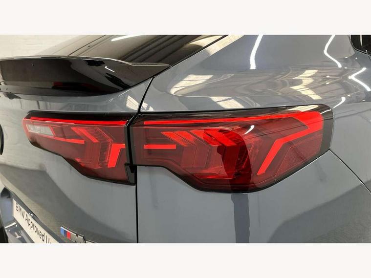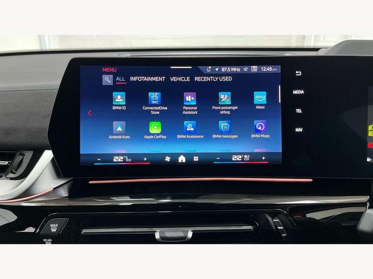 4G LTE connectivity, Attentiveness assist, Automatic start/stop function, Bluetooth / Wi-Fi interface with hands free system, BMW ConnectedDrive store and BMW Remote softwre upgrade, BMW Intelligent Personal Assistant, BMW Live Cockpit Plus - Widescreen display with 10.25" instrument cluster and 10.7" CID display, BMW Maps, BMW Operating System 9 with variable, confirgurable widgets, BMW Teleservices, Brake pad wear indicator, Condition based service, Connected drive services, Drive off assistant, Electrically opening/closing tailgate with opening/closing with remote control and contactless opening and closing, Gear display in instrument cluster including recommended gear, iDrive controller, Language version English, My modes (Personal / Efficient / Sport), Parking assistant with reversing assistant, active PDC, lateral parking aid and rear view camera, Personal Profile, Servotronic PAS, Smartphone integration for Apple CarPlay/Android Auto, Speed limiter, Touch operation on control display, Dynamic stability control, Larger Fuel Tank, M Adaptive suspension, Performance Control, Petrol Particulate Filter, Steptronic transmission with double clutch and gear shift paddles, BMW Personal eSim, DAB Digital radio, Harman Kardon HiFi loudspeaker system, Tuner with diversity reception and RDS, AM radio and FM radio, 4 exhaust tailpipes with tailpipe trims in pearl chrome, B-pillar and front/rear door trim panels and exterior mirrors in M styling in black high gloss, BMW kidney Iconic Glow, BMW M radiator grille with horizontal struts in high gloss black including M badge, Contoured M rear spoiler in vehicle colour with side aeroblades in high gloss black, Dynamic brake lights, Electric adjustable heated door mirrors, Electric windows - front and rear, with open/close fingertip control, anti-trap facility and comfort closing, Folding door handles integrated flush with surface, Front and rear bumper panel in M styling, Front door exit lights, Heated rear window, Home light, LED 3rd brake light integrated in rear window frame, LED daytime running lights, LED number plate light, M signature on front right/ left side panel, Matt black roof strips, Rain sensor including auto headlights activation, Rear side wing doors, Rear wiper, Roof mouldings in vehicle colour, Side sill trim panel in M styling, Sun protection glass, Trailer stabilisation logic, Welcome lighting, Window recess finisher strips and side window frames in black high gloss, Windscreen washer nozzle for rear view camera, Windscreen wipers front with heated washer nozzles, 12V - Power sockets with front centre console and luggage compartment, 12V socket in right side trim panel, 2 bag hooks in luggage compartment, 2 cup holders in front centre console, 2 front reading lights, 2 x USB Type C ports for charging and data transmission (front centre console) and 1 USB Type C ports for charging (rear centre console), 3 rear headrests, 3 seat bench in 2nd row, 3 upper retaining strap clips integrated into rear panels of seat backrests, 40:20:40 split folding rear seats, Ambient interior lighting, Anthracite front and rear floor mats, Bottle trays in all doors, Child seat ISOFIX attachment for two outer rear seats and front passenger seat with anchorage points, Driver and front passenger heated seats, Dual zone automatic air conditioning, Flat air vents on instrument panel in high gloss black, adjustable seats with elements in pearl chrome, Footrest and pedals in stainless steel look, Front and rear door pockets, Front and rear footwell lights, Front armrest with integrated control panel, Front centre console storage compartment, Front/rear adjustable head restraints, Glove compartment, Interior door handle recess light on all doors, Light on right in luggage compartment, M headliner Anthracite-A pillar trim panels, headliner in anthracite & B, C, D pillar upper trim panels, sun visors, grab handles, microphone cover in black, M leather steering wheel, Map pockets on the seats (version depending on equipment), Middle centre console storage compartment, One piece parcel shelf opens together with tailgate and removable, Rear armrest in door trim panel, Rear coat hooks, Selector lever with toggle operation, Single front passenger seat, Storage compartment lighting in centre console and storage tray in centre stack, Storage compartment net in left side trim panel, Storage compartment with folding cover under centre console armrest cushion, Storage tray in right side trim panel, Sun visors with illuminated vanity mirrors, Tilt adjustment incl. cargo function of 2nd row of seats, ABS, Automatic hold function, BMW emergency call, Braking readiness, Child lock for rear electric windows, Cornering brake control (CBC), Crash Sensor - activates hazard/interior lighting + unlocks doors, Driver/Front Passenger airbags, Driver/front passenger side airbags, Dry braking, Dynamic brake control, Electromechanical parking brake, Energy recovery system, First aid kit, Front and rear brake discs, Front centre airbag between driver and front passenger seats, Front passenger airbag deactivation, Head airbags for all 4 outer seats, Integrated brake system, Locking of doors after driving off, M Sport brakes with dark blue metallic calipers, PC iBrake PostCrash approach control warning with light braking function, Rear door child safety locks, Three point seat belts in all seats, Tyre pressure monitor, Warning triangle, Alarm system with tilt sensor, monitoring doors, bonnet interior and tailgate, Closing system with central locking including 2 vehicle keys with integrated emergency key, Locking wheel bolts, Front centre console trim in high gloss black, Luxury instrument panel, Tyre repair kit plus,