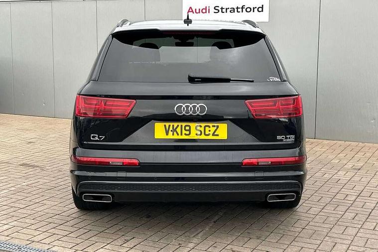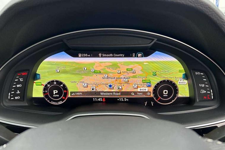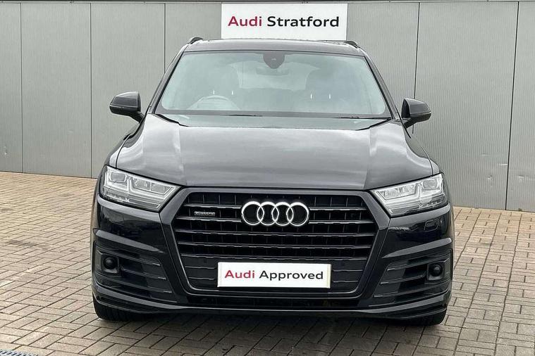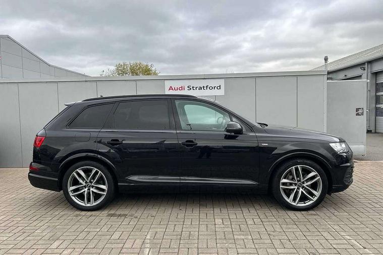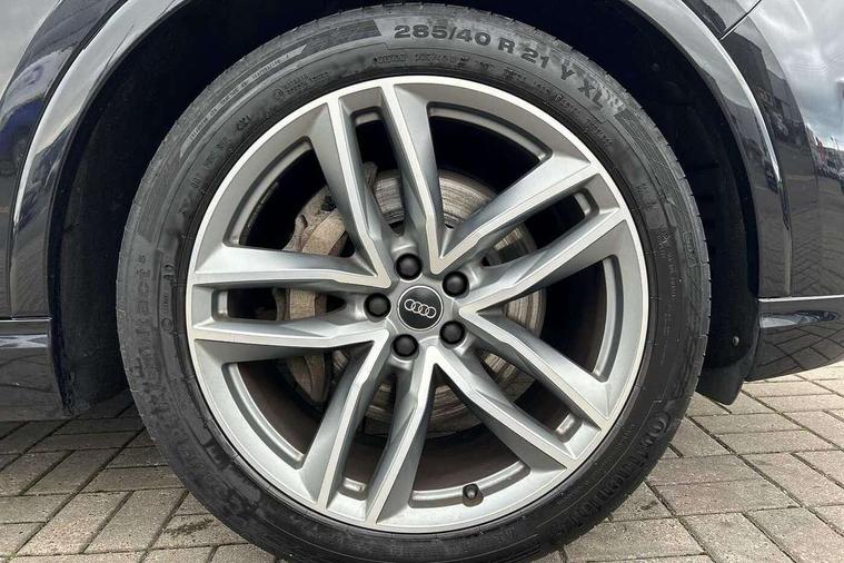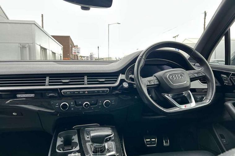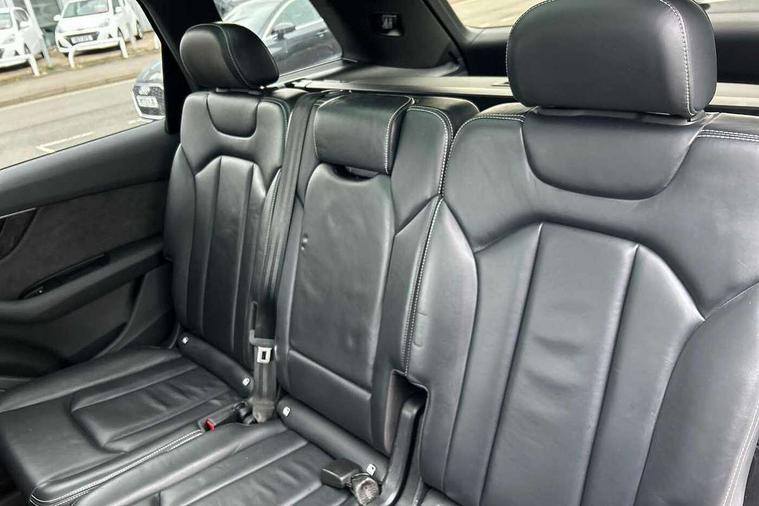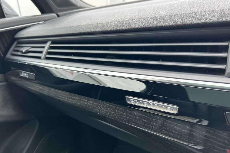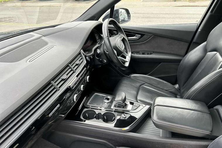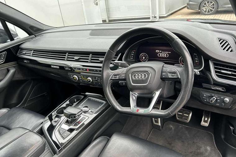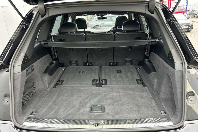 Chrome door inserts, Interior light pack - Q7, Tyre repair kit, Anti theft alarm, Anti-theft wheel bolts, Immobiliser, Keyless Go access/ignition system, Remote central locking, 2 USB ports, 2x SD card slot, Audi music interface, Aux-in socket, DAB digital radio module, DVD System, MMI radio plus, 3 point seatbelts on all seats, ABS+Electronic Brake force Distribution, Curtain airbags, Driver and passenger airbags, EDL + ASR, Electrically operated child locks on rear doors, Electromechanical parking brake, Electronic stability control, Front side airbags, Hill descent control, Hill hold assist, Seatbelt warning, Traction control, Tyre pressure loss indicator, Warning triangle and first aid kit, Acoustic windscreen, Auto dimming rear view mirror, Body coloured bumpers, Electric front+rear windows, Electric panoramic glass sunroof, Electric/heated/folding door mirrors with memory, Green tinted heat insulating glass, Headlight washers, High beam assist, LED daytime running lights, Loading sill protector in stainless steel, Platinum grey front lip spoiler, Privacy glass, Rain and light sensors, Rear wiper, Roof spoiler, 2 cupholders in front centre console, 35/30/35 split fold 2nd row seats, Electric 3rd row 50/50 split/fold, Front ashtray and cigar lighter, Front centre comfort armrest with storage + cupholders, Front head restraints, Gearshift paddles, ISOFIX child seat mounting for 6 passenger seats with front passenger airbag deactivation includes top tether, Leather gear knob, Luggage compartment cover, Rear centre armrest with 2 cupholders, Rear headrests, Stainless steel pedals, Sunvisors with illuminated vanity mirrors, Tool kit, 8.3" central fold-down colour display with high-resolution graphics, Audi connect safety and service (e-call), Audi drive select, Audi phone box with wireless charging, Audi smartphone interface, Audi virtual cockpit - 12.3" high-resolution LCD display with fully customisable instrument cluster, Colour driver's information system display, MMI - Multi Media Interface control system, MMI navigation plus with MMI touch, Mobile phone preparation with bluetooth interface, Power tailgate, Service interval indicator, Servotronic speed related PAS, Speed limiter, Start/Stop system with energy recuperation, Voice control system, Adaptive air sports suspension,