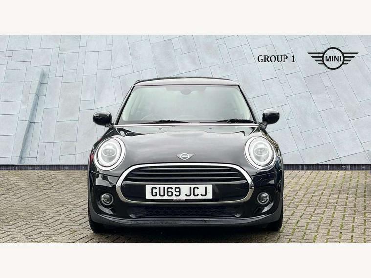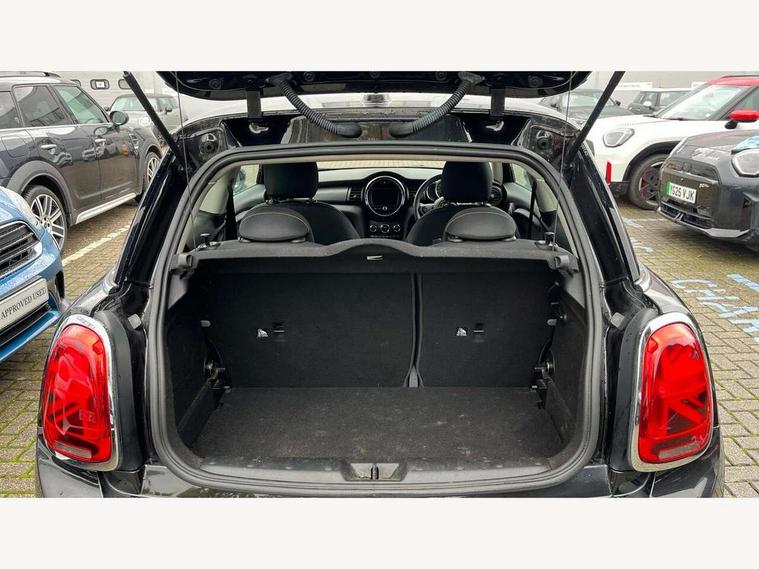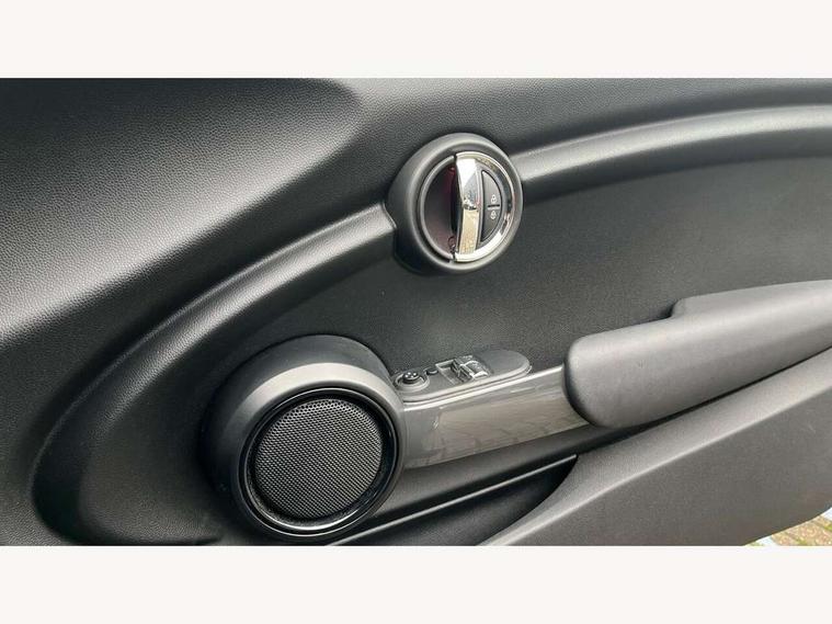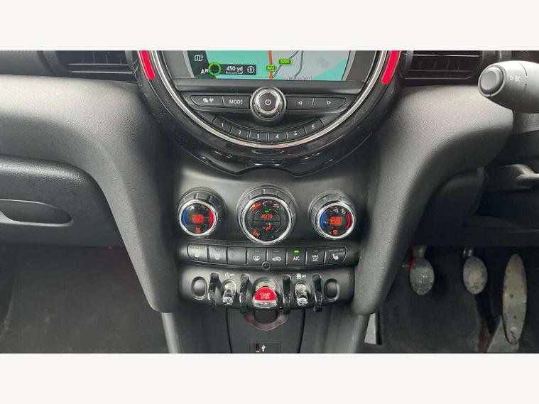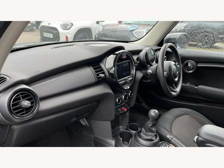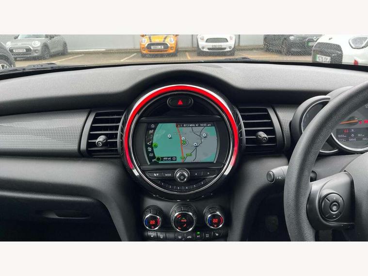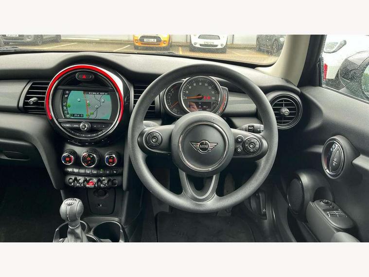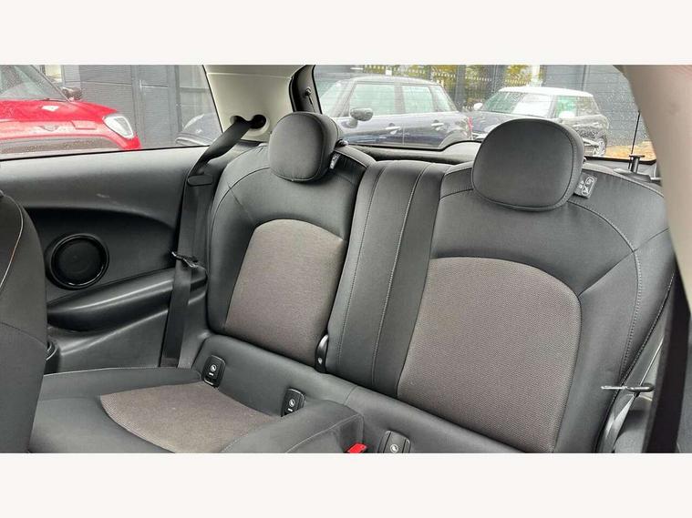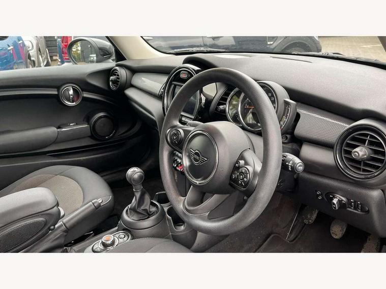 Automatic start/stop function with brake energy recuperation, Compatible mobile phone bluetooth with audio streaming, Electro-mechanical speed dependant steering assistance, Instrument cluster, Mini E-call, MINI TeleServices, On board computer, Service interval indicator, Double Vanos system, Fully variable valve control, High precision injection, 6.5" touchscreen with LED ring, FM tuner and DAB digital radio, Automatic headlight activation switch, Body colour fuel filler cap, Chrome border high gloss black slats radiator grille, Dynamic brake lights, Electric front+rear windows, Heated rear window, Heated windscreen washer jets, LED headlight with closed ring and daytime driving lights, Left exhaust tailpipe with chrome finisher, Metal door sill strips with MINI imprint, Model logo Cooper on right of tailgate, Rain sensor window wipers, Rear fog lights, Rear LED lights with union jack design, Rear window wiper, Side scuttle panel with integrated indicator, Sun/heat protection glass, White indicator lenses, 12V Accessory socket in centre console, 4 lashing eyes in luggage compartment, 60/40 split folding rear seat, Chrome interior highlights, Colour line - Carbon black, Cupholders, Front and rear head restraints, Front and rear isofix with front passenger airbag deactivation, Glove compartment, Height and length steering column adjustment, Interior lighting with 12 basic colours selectable via toggle switch in roof, Leather gearshift lever and handbrake gaiters, LED reading lights, vanity mirror lights, front foot well light and spotlight on front seats, Manual air conditioning, Mechanical seat adjustment, driver seat height adjust, forward/back and front seats backrest, Mini logo projection on floor from drivers exterior mirror, Multifunction steering wheel, Satellite grey headlining, Storage compartments in doors, Sunvisors with vanity mirrors, 3 point seatbelts on all four seats, 6 Airbags - front, side, head and seat belt tensioners, Anti-lock braking system (ABS), DSC - Dynamic Stability Control, Front and rear disc brakes, Hill start assist, Single tone fanfare horn, Tyre pressure monitoring system, Alarm system with tilt sensor, monitoring doors, bonnet interior and tailgate, Electronic vehicle immobiliser, Start/stop toggle with keyless go, Tool kit,