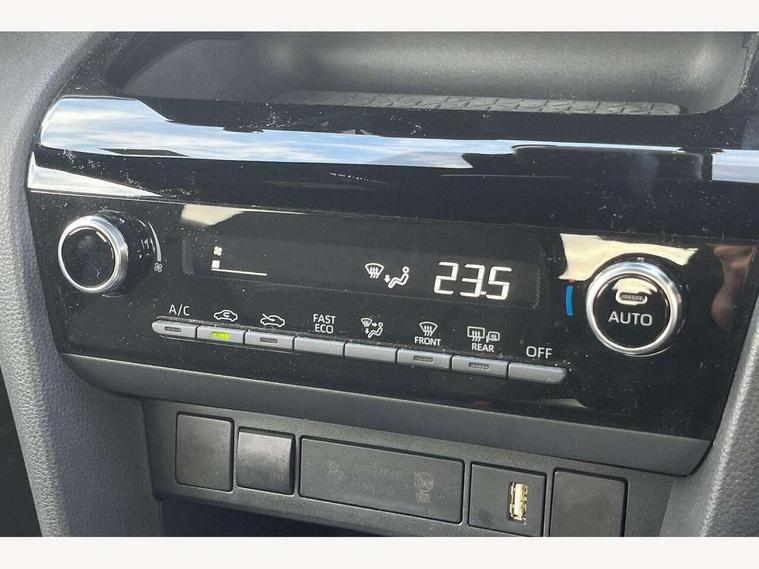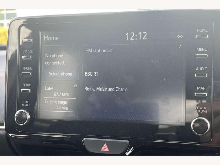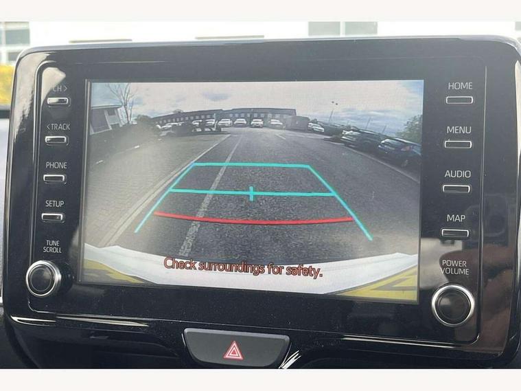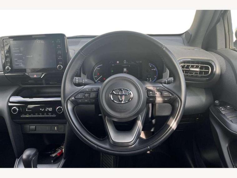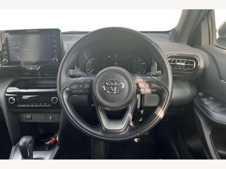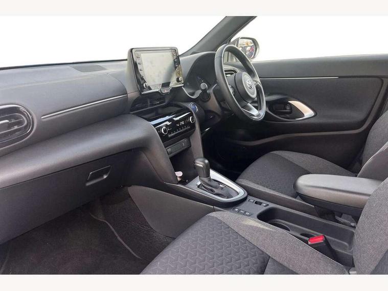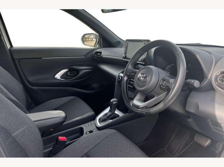 10.5" Multimedia display screen, 7" Multi information display screen, Adaptive cruise control, multi info switches on steering wheel, Adjustable speed limiter, Bluetooth connectivity, Color multi-information display, Digital speedometer, Digital tachometer, Drive mode selector, Driver attention alert system, eCall emergency system, Electric power steering, Emergency driving stop system, Full range intelligent adaptive cruise control, Hybrid system indicator, Intersection turn assist, Key reminder warning, Lane trace assist, My T Connected services, Pre-collision system enhanced with emergency steering assist, Reversing camera, Road sign assist - RSA, Static guide lines on reversing camera, Telephone switch on steering wheel, Wireless Smartphone integration incl Apple CarPlay, Steering assisted vehicle stability control, 6 speakers, DAB Digital radio, Front USB Type-C connector, Front USB-C device charger, 3rd brake light, Acoustic windscreen glass, Anti-jam protection on power windows, Auto high beam [AHB] with on/off switch, Auto intermittent windscreen wipers, Automatic headlights, Automatic headlights cut-off, Black door moulding, Black lower front grille, Black protection moulding on side doors, Black roof rails, Black upper front grille, Black wheel arch mouldings, Body colour door handles, Body colour front bumper, Body colour rear bumper, Electric adjustable heated door mirrors, Follow me home headlights, Front and rear electric windows with auto up/down function, Headlight cut off reminder, Indicators integrated on door mirrors, Intermittent rear wiper, LED daytime running lights guide, LED front fog lights, LED front light guide, LED Indicators, LED projector headlights, LED rear lights with sequential indicators, Manual day/night rear view mirror, Manual headlight levelling, Manually retractable door mirrors, Noise reduction layer on windscreen, Pre wiring for towing hook, Privacy glass, Rain sensor, Rear side wing doors, Rear spoiler, Rear window defogger, Shark fin antenna, 12v power outlet - front, 2x Rear coat hooks, 3 seat bench in 2nd row, 3 spoke leather steering wheel, 40/60 split deckboard, 40:20:40 split folding rear bench seat, Adjustable rear headrests, Adjustable speed limiter switch on steering wheel, Auto air conditioning, Black roof lining, Boot light, Central armrest, Driver and front passenger personal lights, Driver and front passenger Whiplash injury Lesseing seats, Fabric door trim, Fabric upholstery, Front console box, Front cup holders, Front door pockets, Front head restraints, Front/rear assist grips, Gear shift indicator, Gloss black surround on gear shift console, Height adjustable driver's seat, Height adjustable front passenger seat, Hooks for luggage holding belts, ISOFIX child restraint system, Lane departure alert switch on steering control, Leather gearshift, LED centre room light, Manual telescopic and tilting steering wheel, Mirror on driver and passenger sun visor, Pollen air filter, Power adjustable lumbar support on driver seat, Rear cup holders, Rear door pockets, Rear head restraints, Remote air-conditioning system, Single compartment glovebox, Single front passenger seat, Soft tonneau cover, Storage box under boot floor, Voice recognition switch on steering wheel, Yaris cross floor mats, 3x3 point rear seat belts, ABS+EBD+Brake assist, Driver and passenger central airbags, Driver and passenger front airbags, Driver and passenger side airbags, Electronic parking brake, Emergency brake light system (EBS), Front seat belt reminder, Hill start assist control (HAC), Passenger airbag on/off switch, Pre-collision system with pedestrian and cyclist detection, Rear door child safety locks, Rear passenger side airbags, Rear seat belt reminder, Traction control, Tyre pressure warning system, Immobiliser, Intrusion alarm, Keyless smart entry with push button start, Power door locks, Power passenger window lock, Remote door lock, Gloss black side air vent surrounds, Tyre repair kit,