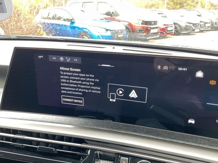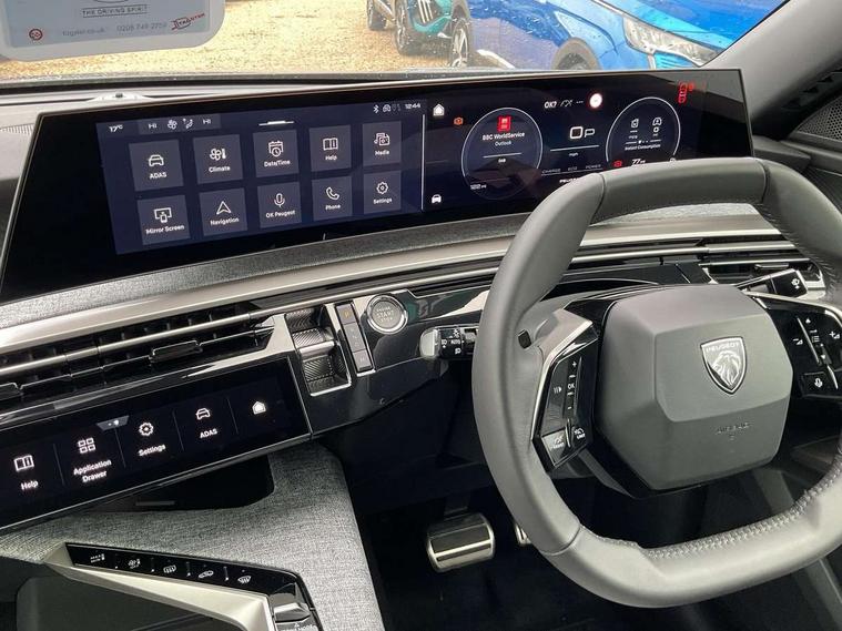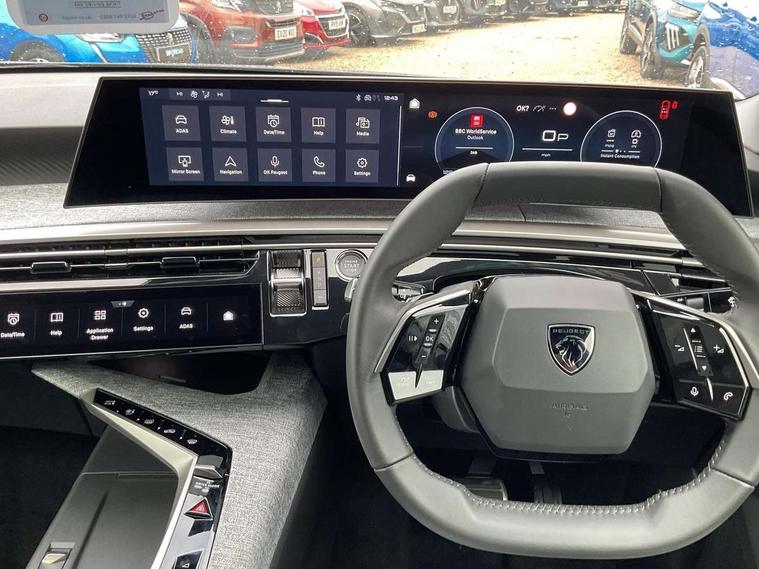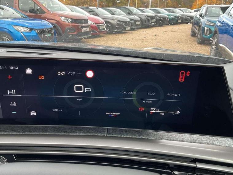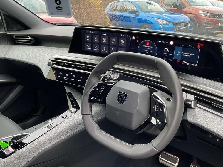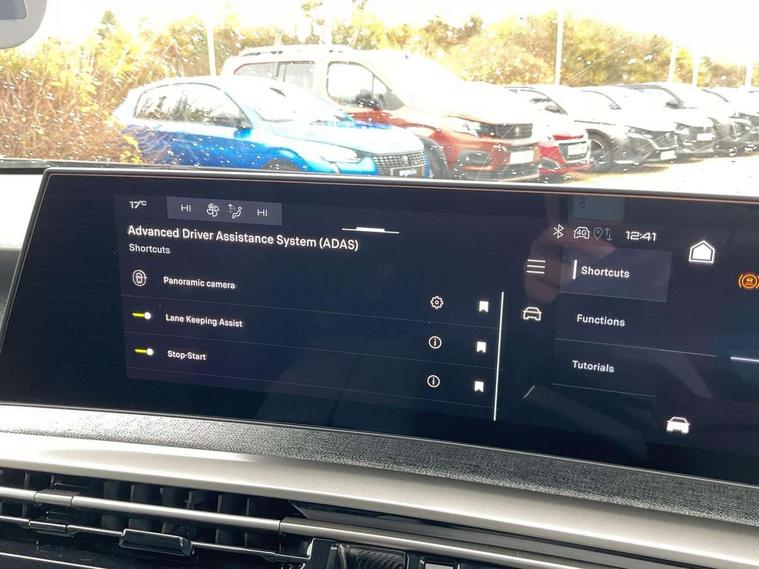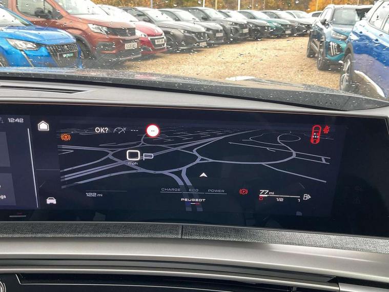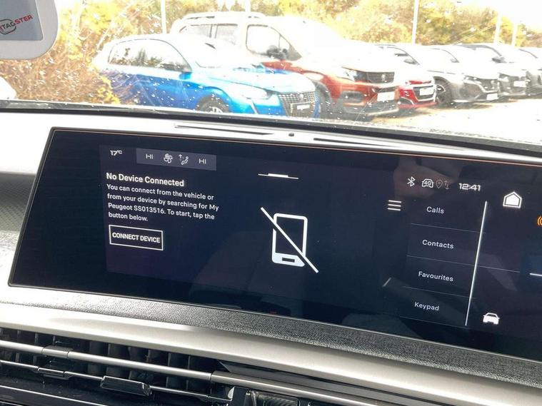Bluetooth with two microphones (Connect up to 2 phones), Drive modes select (Eco, normal and sport) with configurable ambient lighting, Driver attention alert, Driver foot rest, Driver profile selection, E-call, Exterior temperature indicator with ice warning, Front passenger seat detection, Lane keep assist, Manual gear changes via steering mounted paddles, Multi function trip computer, Natural voice recognition, PEUGEOT i-Cockpit - 21" HD panoramic curved display incorporating instrument panel and touchscreen with 3colour themes, PEUGEOT i-connect advanced HD fully customisable touch screen, Navigation with Tom Tom Live updates and over the air map updates, PEUGEOT SOS and assistance, Rear parking sensor, Speed limit and traffic sign recognition and recommendation, Wireless mirror screen with apple carplay and android auto, Wireless smartphone charger with status light and ambient lighting, Dynamic stability control and electronic anti-skid system, 6 speakers, AM/FM bi-tuner, DAB Radio (Digital Audio Broadcasting), Peugeot customisable virtual iToggles, USB-C sockets (2 x front and 2 x rear), 3008 model designation badgers front and rear in basalt grey, Acoustic windscreen, Automatic hazard light activation upon heavy brake application, Automatic headlamp activation, Automatic windscreen wiper activation with interval wiping intensity control, Body colour floating effect rear roof spoiler, Body colour roof, Body coloured exterior door handles, Dark tinted privacy glass for rear door, Tailgate and Quarter windows, Door mirrors - Welcome lighting and integrated LED indicators, Eco LED headlights, Electric adjustable/heated/folding door mirrors, Electrochrome rear view mirror, Flat blade wipers with magic wash integrated nozzles, Front and rear electric windows with one touch, Front grille with body coloured accents, Gloss black connecting strip between rear lights, Gloss black finish B pillar, Grained black lower door claddings and wheel arches, Hybrid rear badging in basalt grey, Laminated windscreen, LED exterior lighting, LED third brake light, Lower front and rear bumper trims in meteor grey, Orbital gloss black door mirrors, Peugeot 3-claw signature front and rear daytime running lights, Rain sensor, Rear side wing doors, Rear wiper, Tailgate with heated rear window, 12V socket in front and boot, 2 cupholders in front centre console, 3 seat rear bench, 4 Grab handles retractable and damped, 4 tie down luggage rings, 40/20/40 folding rear seat backrest with fixed base, 8 colour ambient lighting, Aluminium pedals, Arch design central console with concealed storage, Cabin high efficiency filter, Central front armrest with ventilated storage compartment and LED lighting, Chrome finish interior door handles, Compact split leather mutifunction steering wheel with gloss black and satin chrom detailing, Dual zone climate control, Dynamic front seats, e-Toggle compact gear selector, Electric power steering with reach and rake adjustable steering column, Glasses storage box, roof mounted, LED boot light, LED footwell lights, LED front and rear reading lights with push button control, LED Glovebox light, LED illuminated driver and passenger concealed sunvisor mirrors, Luggage cover, Mistral black pillars and headlining, Quick launch cabin heating/cooling function, Rear air vents, RISPY embossed fabric upholstery, Roof lining - Meteor grey, Seatbelt unfastened on the move audible and visual alert for front and rear seats, Single front passenger seat, Two bag hooks, Two position boot floor, 2x Isofix child seat fitting on outer rear seats with zipped cover, 3x3 point rear seat belts, ABS (Anti-lock Braking System) with EBD (Electronic Brakeforce Distribution) and EBA (Emergency Braking Assistance), Advanced Emergency Braking System with radar (AEBS3) providing night detection of pedestrians and cyclists, Child locking functionality on rear doors, Driver and front passenger airbags with airbag deactivation function, Driver and front passenger side airbags, Electric parking brake, Front and rear curtain airbags, Front optimised safety headrests and 3 x rear retractable headrests with height adjustable, Front/rear disc brakes, Hill start assist, Post collision safety brake, Seatbelts - Front and rear outer seats with pyrotechnic pretensioners and force limiters, 2x Keys (Lock, Unlock, Boot release function with concealed key), Acoustic vehicle alert system (AVAS), Automatic door locking when moving off, Deadlocking system, Electronic code immobiliser, Exterior passenger door lock, Locking wheel nuts, Peugeot Open and Go (keyless entry and push button start), Seatbelts reminder and unfastend warning indicator, Thatcham category 1 Perimetric and volumetric alarm with anti-lift detection, Stene grey finish for dashboard, door panels and central console decors, 19" BREDA diamond cut alloy wheels with star center cap in orbital black, Michelin e-primacy class A tyres,