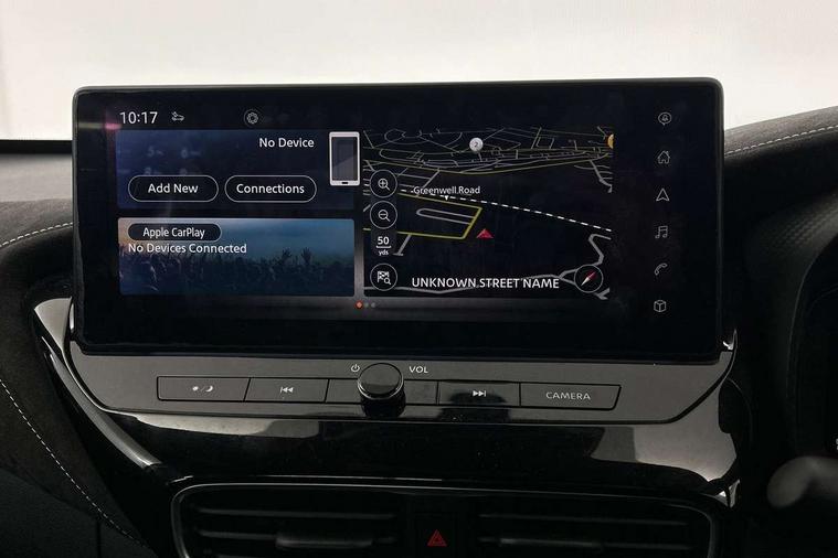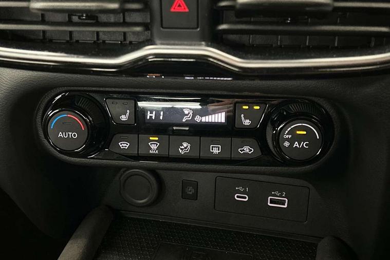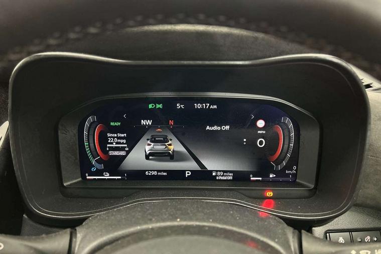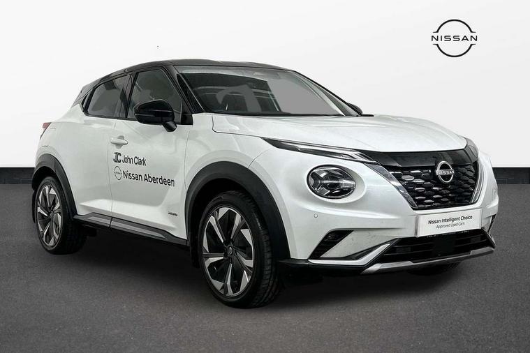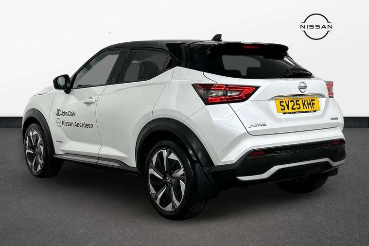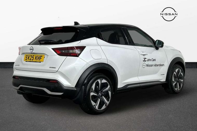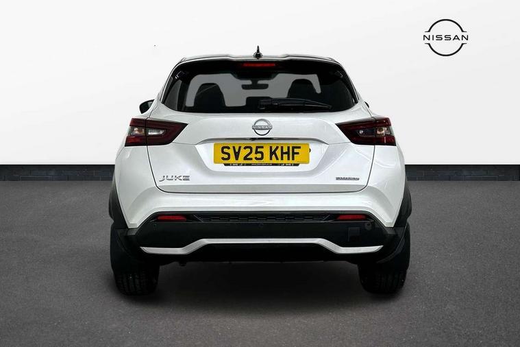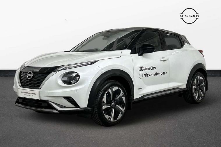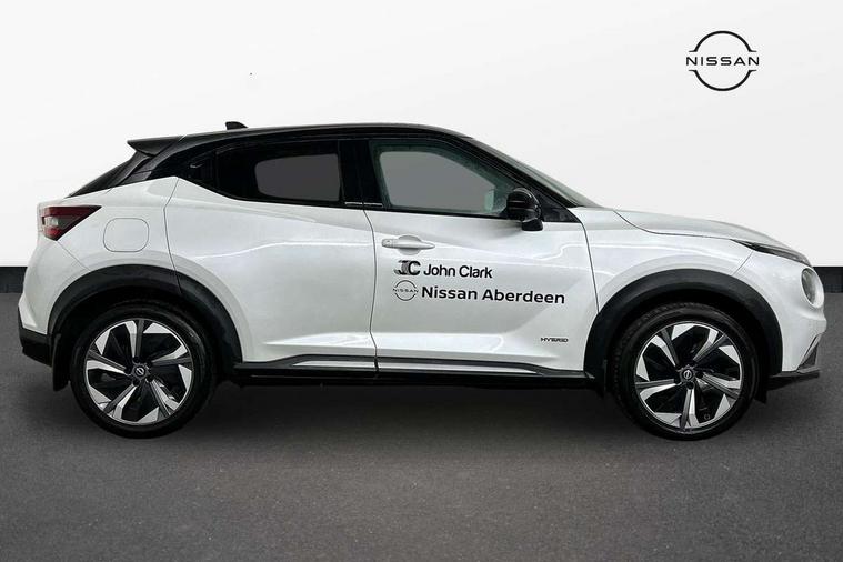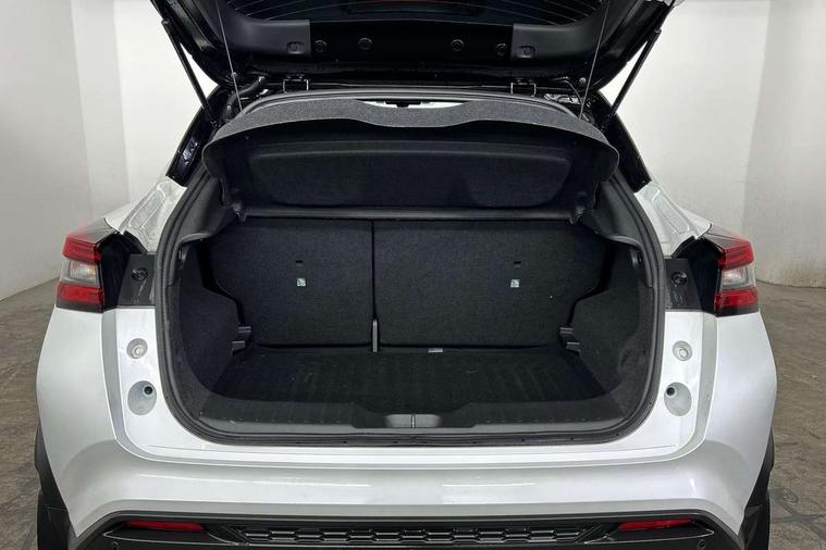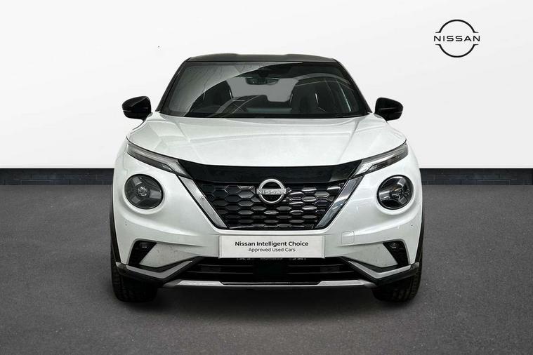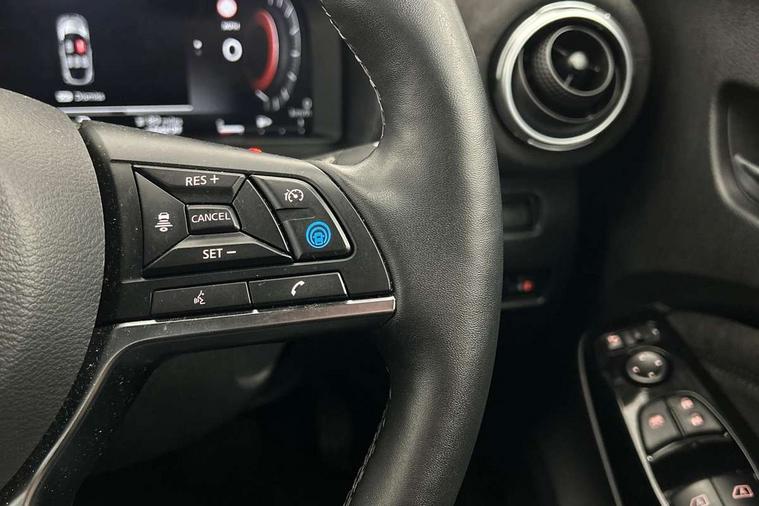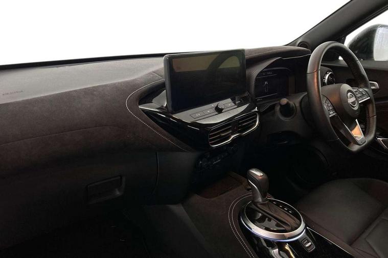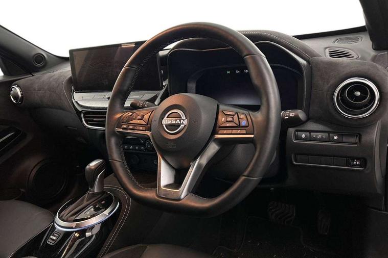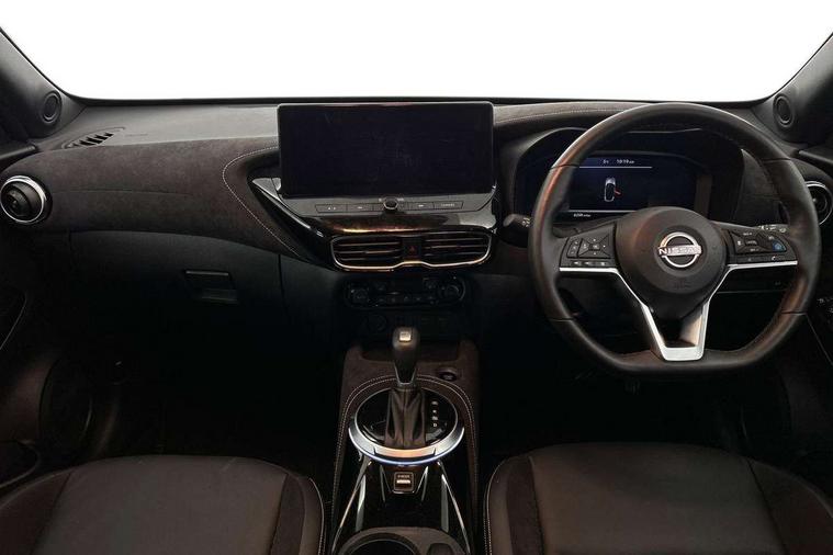 12.3" full colour TFT screen combimeter, Drive modes select (Eco, normal and sport), e-Pedal step, Emergency and breakdown call, EV mode switch, Front parking sensor, Intelligent driver alert system, Intelligent lane intervention, Lane departure warning system, Nissan connect 12.3" touch screen entertainment system, Nissan connect nav with TomTom traffic, Nissan connect services, Outside temperature sensor, Power Steering, Rear parking sensor, Stop/start button, Traffic sign recognition, Trip computer, Voice recognition, WiFi connectivity, Wireless Apple CarPlay and Google Android auto, Wireless Smartphone charger, 10 Bose speakers 6 speakers and 2 headrest speakers for driver/passenger seats, 2 X Rear console USB port, Bluetooth system, USB, Aux-in and 12V socket, Bose personal sound stage control, DAB Digital radio, Auto dimming frameless rear view mirror, Automatic hazard signal with emergency stop signal, Body colour door handles, Electrically adjustable door mirrors with integrated indicators, Follow me home headlights, Front and rear electric window with one touch driver window, Heated and auto folding door mirrors, High beam assist, LED 3rd brake light, LED daytime running lights, LED front fog lights, LED headlamps, LED rear fog lamp, LED rear lamps, One touch passenger window, Rain sensor windscreen wipers, Rear privacy glass, Rear side wing doors, Rear wiper, Roof spoiler, Shark fin roof antenna in solid Black, Three blink turn signal, 3 height adjustable rear headrests, 3 seat bench in 2nd row, 60/40 split folding rear seat, Automatic climate control, Card holder on driver sunvisor, Door ambient lighting, Driver seat back pocket, Driver side rear coat hanger, Driver/passenger sunvisors and vanity mirrors, Front and rear cabin lights, Front armrest, Front door pockets with bottle holders, Front head restraints, Front/rear passenger grab handles, Gear console ambient circle lighting, Height adjustable driver's seat, Internal chrome door handles, Leather gearshift knob, Luggage board, Luggage space lighting, Monoform sporty seats, Multifunction steering wheel, Passenger seat back pocket, Rear door bottle holders, Single front passenger seat, Smooth synthetic leather steering wheel, Synthetic leather kneepad, Telescopic steering wheel adjustment, Two cupholders in front centre console, Two rear isofix child seat anchorage points with top tether, Welcome light and console tray ambient lighting, Heat pack with height adjustable passenger seats - Juke, Interior personalisation pack - Juke, ProPilot pack - Juke Auto, Satin grey exterior personalisation pack - Juke, ABS with EBD and brake assist, Active ride control, Active Trace Control, Driver and passenger airbags, Driver and passenger side airbags, Electric handbrake with auto hold function, Electronic Stability Programme (ESP), Front and rear curtain airbags, Height adjustable seatbelts, Hill start assist, Intelligent emergency braking with pedestrian and cyclist recognition, Rear door child safety locks, Seatbelt reminder for driver/front passenger and rear seats, Three 3 point rear seatbelts, Traction control, Tyre pressure monitoring system, VDC Dynamic Vehicle Control, Alarm, Immobiliser, Intelligent key and start push button with walk away lock and approach unlock functions, Remote central locking, 19" Aero alloy wheels, Tyre puncture repair kit,