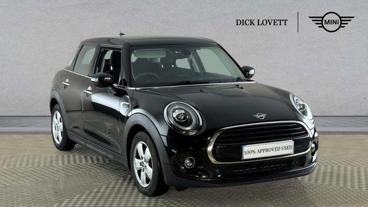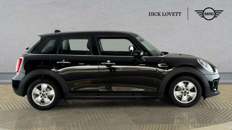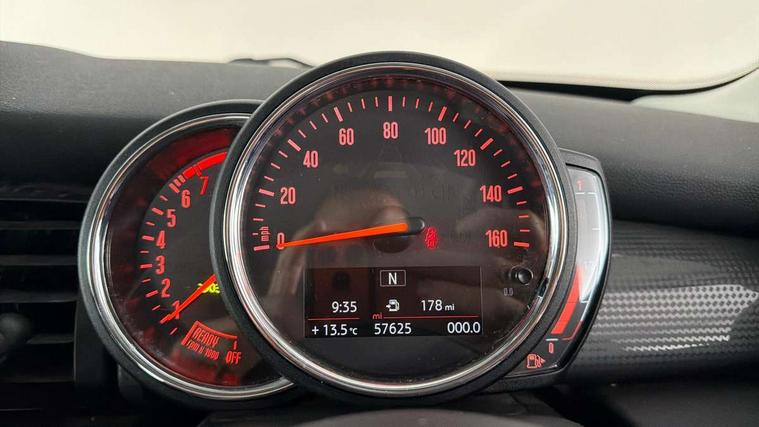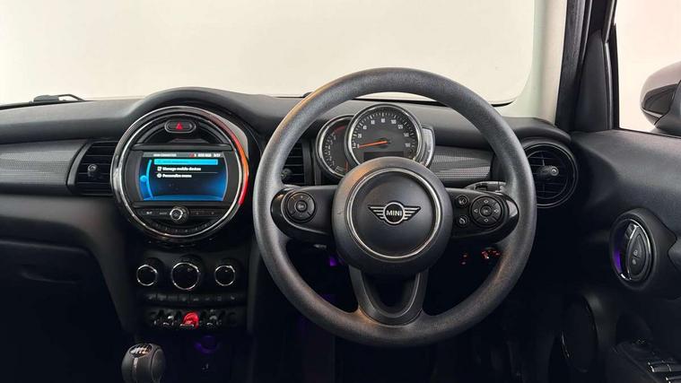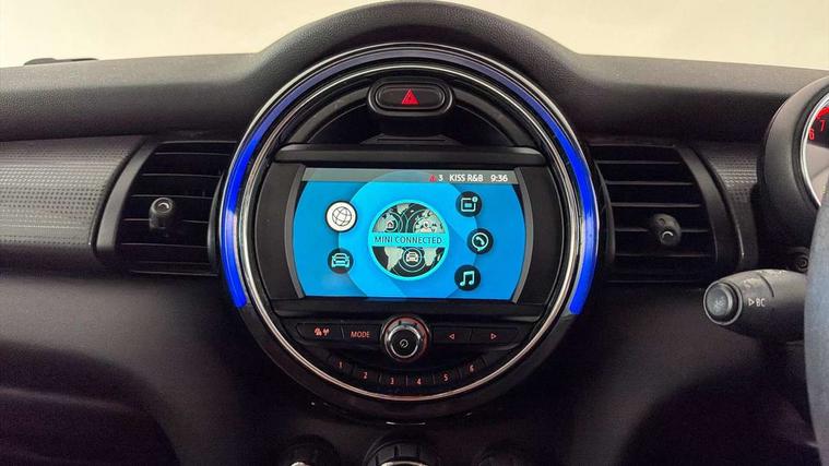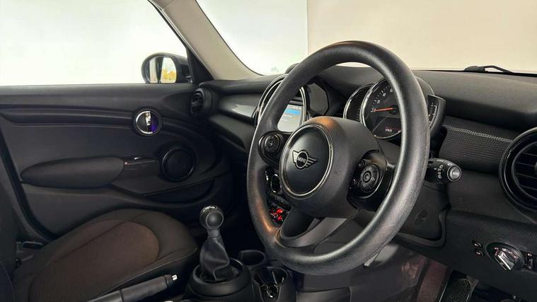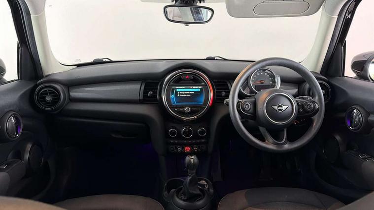 Automatic start/stop function with brake energy recuperation, Compatible mobile phone bluetooth with audio streaming, Electro-mechanical speed dependant steering assistance, Instrument cluster, Mini E-call, MINI TeleServices, On board computer, Service interval indicator, Double Vanos system, Fully variable valve control, Gear change indicator display, High precision injection, 6.5" touchscreen with LED ring, FM tuner and DAB digital radio, Automatic headlight activation switch, Body colour fuel filler cap, Chrome border high gloss black slats radiator grille, Dynamic brake lights, Electric front+rear windows, Heated rear window, Heated windscreen washer jets, LED headlight with closed ring and daytime driving lights, Left exhaust tailpipe with chrome finisher, Metal door sill strips with MINI imprint, Model logo Cooper on right of tailgate, Rain sensor window wipers, Rear fog lights, Rear LED lights with union jack design, Rear window wiper, Side scuttle panel with integrated indicator, Sun/heat protection glass, White indicator lenses, 12V Accessory socket in centre console, 4 lashing eyes in luggage compartment, 60/40 split folding rear seat, Carbon Black colour line, knee roll and door armrests, Chrome interior highlights, Colour line - Carbon black, Cupholders, Front and rear head restraints, Front and rear isofix with front passenger airbag deactivation, Glove compartment, Height and length steering column adjustment, Interior lighting with 12 basic colours selectable via toggle switch in roof, Leather gearshift lever and handbrake gaiters, LED reading lights, vanity mirror lights, front foot well light and spotlight on front seats, Manual air conditioning, Mechanical seat adjustment, driver seat height adjust, forward/back and front seats backrest, Mini logo projection on floor from drivers exterior mirror, Multifunction steering wheel, Satellite grey headlining, Storage compartments in doors, Sunvisors with vanity mirrors, 3 point seatbelts on all five seats, 6 Airbags - front, side, head and seat belt tensioners, Anti-lock braking system (ABS), DSC - Dynamic Stability Control, Front and rear disc brakes, Hill start assist, Single tone fanfare horn, Tyre pressure monitoring system, Alarm system with tilt sensor, monitoring doors, bonnet interior and tailgate, Electronic vehicle immobiliser, Start/stop toggle with keyless go, Tool kit, Tyre repair kit,