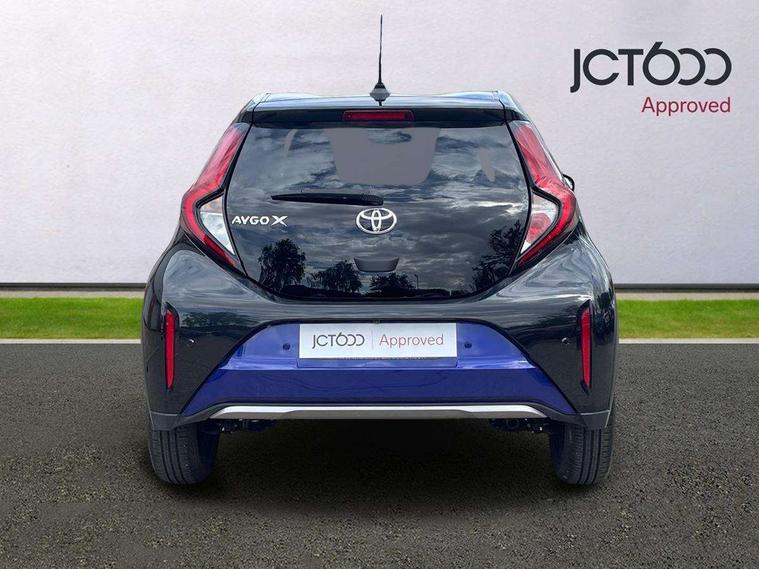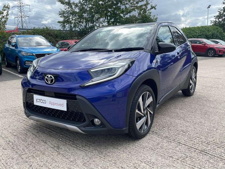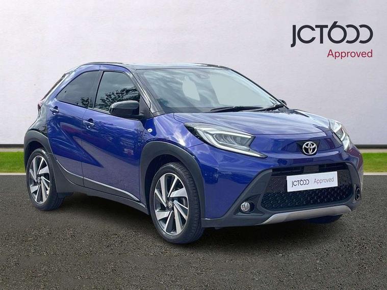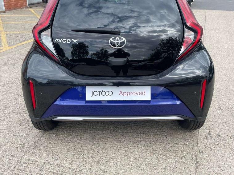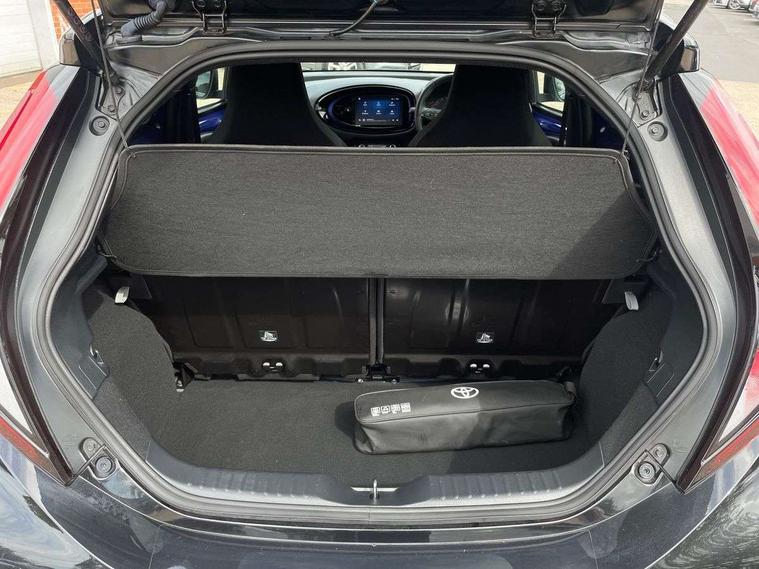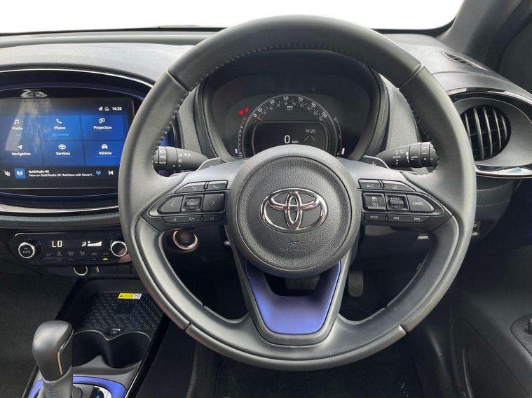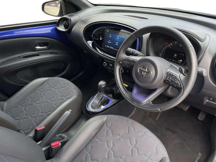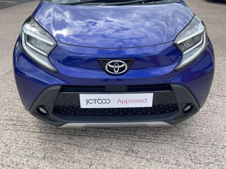 4.2" TFT colour screen, Adjustable speed limiter, Analogue speedometer, Bluetooth connectivity, Digital tachograph, Driver attention alert system, eCall emergency call system, ECO-driving indicator, Electric power steering, Front and rear parking sensors with auto brake, Intersection turn assist, Key reminder warning, Noise reduction kit, Pre collision system with emergency steering assist, Remote boot door release on key, Reversing camera with static guide lines, Smart entry and push button start, Speed limit display, Start and stop, Wireless charger, Wireless Smartphone Integration includes Apple CarPlay and Android auto, Vehicle Stability Control (VSC), 4 speakers, 9" HD multimedia display touch screen with Toyota smart connect, DAB digital audio broadcast, USB connector, Auto headlights, Auto wipers, Automatic headlights cut-off, Automatic high beam On/Off switch, Bicycle towing hook, Black fog light surrounds, Black side protection mouldings, Black wheel arch mouldings, Body colour door handles, Body coloured front bumper, Boot door scuff plate, Eclipse black rear bumper, Electric heated door mirrors, Follow me home headlights, Front and rear underruns in silver, Front fog lights, Front power windows, Gloss black door mirrors, Gloss black upper front grille, Headlight cut-off reminder, LED daytime running lights guide, LED front light guide, LED High mounted stop lamp, LED projector headlights, Manual day/night rear view mirror, Manual headlight levelling, Pagoda roof, Power adjustable door mirrors, Power back door, Privacy glass, Rain sensor, Rear combination lights LED bulb type, Rear side wing doors, Rear windscreen defogger, Rear windscreen wiper, Remote hazard lights system, Short antenna, Variable intermittent windscreen wipers, 12v power outlet - front, 2 seat bench in 2nd row, 3 spoke leather steering wheel, 50/50 split folding rear seat, Adhesive roof headlining, Adjustable speed limiter switch on steering wheel, Audio and telephone switches on steering wheel, Auto air conditioning, Black roof lining, Body colour satin anodised insert on steering wheel, Boot light, Centre room light, Chrome interior door handles, Chrome surround on air conditioning buttons, Clean air filter, Console box storage, Floor mats, Front and rear cup holders, Front head rest deco art, Front head restraints, Gear shift indicator, Height adjustable driver seat, Intelligent adaptive cruise control switch on steering wheel, ISOFIX child restraint system on rear seats, Lane departure alert switch on steering wheel, Leather gearshift knob, Light blue ambient lighting in centre console, Manual tilt steering wheel, Manually reclining and sliding driver seat, Manually reclining and sliding front passenger seat, Multimedia switches on steering wheel, Paddle shift levers on steering wheel, Partial synthetic leather upholstery, Pollen filter, Rear door pockets, Rear head restraints, Remote air-conditioning system, Satin silver insert on gear shift knob, Single compartment glovebox with lights, Single front passenger seat, Soft tonneau cover, Sun visors with mirror on driver and passenger side, Voice recognition switch on steering wheel, Toyota safety sense pack - Aygo X, Anti lock braking system + Electronic brake force distribution, Child safety door lock, Emergency brake light signal (EBS), Hill start assist control (HAC), Passenger airbag on/off switch, Seat belt reminder for front and rear seats, Supplement restraints system (SRS) - 6 airbags, Traction control, Tyre pressure warning system, Immobiliser, Remote power door locks, Black wheel centre caps, Tyre repair kit,