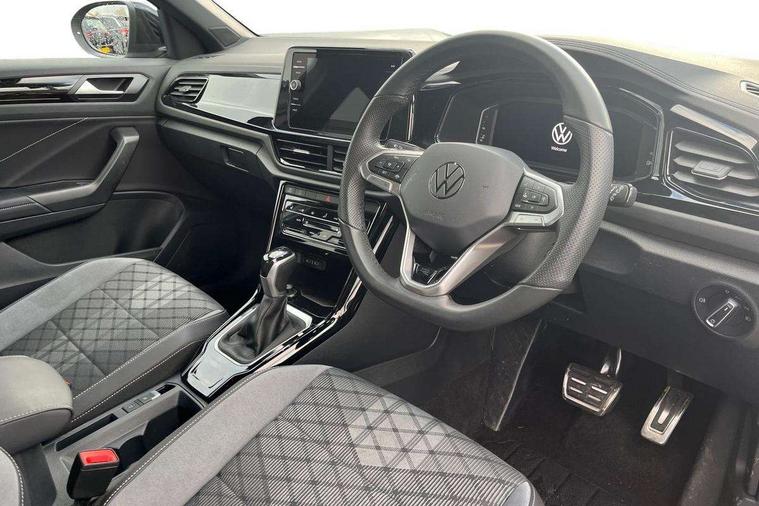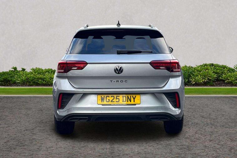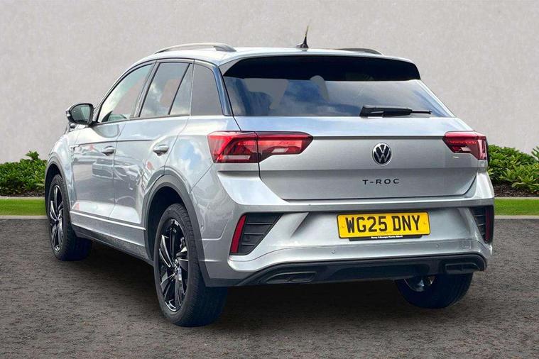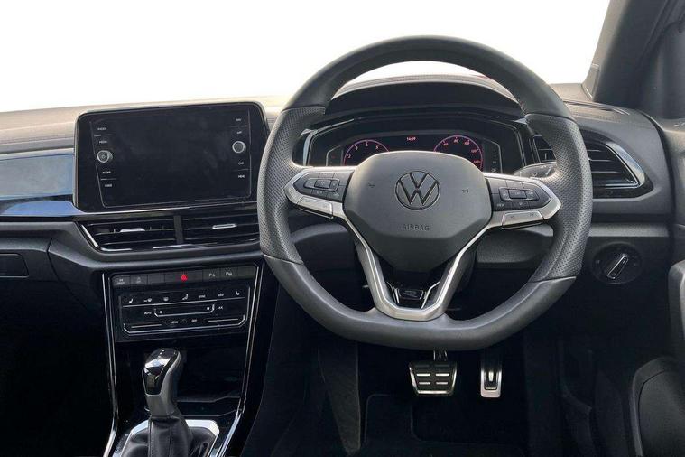 10.25" Digital cockpit pro, Advanced driver attention and drowsiness monitor, Emergency call service, Lane keeping system Lane Assist, Mobile phone interface, Modified key software - reduce switch off time for key status change to Long no motion, Online services, Park assist including front and rear parking sensors, Service interval indicator, Tailgate/trunk lid release from outside, Think blue trainer driver tips and journey analysis, Warning sound and light for front seatbelts unfastened, Wireless app connect, Battery regeneration during braking, Start/stop function with battery regeneration, DAB Digital radio, Diversity antenna for FM reception, Front and rear 6 speakers, Music playback - MP3, WMA and AAC files, Premium USB cable in choice of either Apple or Android smartphone compatibility, SD card slot, Simultaneous pairing of 2 compatible mobile devices, Title and cover art display, We Connect and We Connect Plus functionality, Auto dimming interior rear view mirror, Automatic hazard lights activation under emergency braking, Automatic headlight control with LED separate daytime running lights with coming/leaving home function, Body coloured exterior mirror housings and door handles, Electrically adjustable and heated door mirrors, Extended roof spoiler, Exterior mirrors aspherical on driver side, convex on front passenger side, External USB type C socket and charging sockets, Front windscreen wiper with intermittent wipe and 4 position delay, Heated rear window, LED 3rd brake light, LED rear combination lamps, LED rear number plate lights, Power windows with comfort operation and circuit breaker, Privacy glass for rear side windows and rear window, R-Line design body coloured bumpers, Rain sensor, Rear exhaust tailpipe, Rear fog light on one side and reversing lights on both sides, Rear side wing doors, Rear wash/wipe with intermittent wipe setting, Remote electrically foldable door mirrors, puddle lights and reverse activated passenger's door mirror, 12V power socket in centre console, 3 rear head restraints, 3 seat bench in 2nd row, 4 load lashing points in luggage compartment, Air care climatronic air conditoning system with active combination filter and 2-zone temperature control, Black roof lining, Chrome plated decorative trims, Chrome plated radiator grille inserts, air vent surrounds and light switch surrounds, Door and side trim panel with leatherette insert, Front + rear carpet mats, Front centre armrest, Front cupholders x 2, Front footwell illumination, Front reading light, Front scuff plates with R Line logo, Front seat back storage pockets, Glove compartment door with light, Instrument lighting, white adjustable panel illumination, Interior ambient lighting and surround lighting, Interior light delay, Isofix child seat preparation, Leather gearshift handle, Load-through provision with cup holder when folded down ('Unsplit rear seat bench, split folding backrest, with centre armrest), Luggage compartment lighting, Single front passenger seat, Stainless steel pedals, Storage compartment in left and right luggage area, Storage compartment in rear doors, Storage compartments in driver and front passenger doors, Sunvisors with illuminated vanity mirrors, Variable boot floor, height adjustable and removable, Driver assistance pack without proactive passenger protection - T-Roc, 3 point height adj front seatbelts + pretensioners, 3 point seatbelts in outer rear with ECE label, ABS, Child locks on rear doors, City emergency braking and pedestrian monitoring, Driver and front passenger airbag with front passenger airbag deactivation, Driver and front passenger safety-optimised head restraints, Drivers seatbelt reminder, Electronic parking brake, Electronic Stability Control (ESC) inc EDL (Electronic Differential Lock) and ASR (Traction Control), Front and rear passengers curtain airbag system including front side airbags, Hill start assist, Predictive pedestrian protection, Rear disc brakes, Two tone horn, Tyre pressure loss indicator, Volkswagen roadside assistance, Piano black decorative inserts in dashboard and front door trim panels, Trims for alloy wheels,