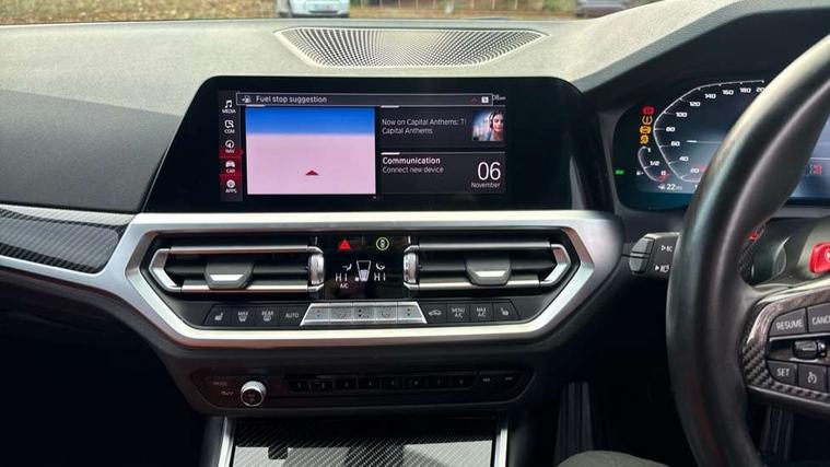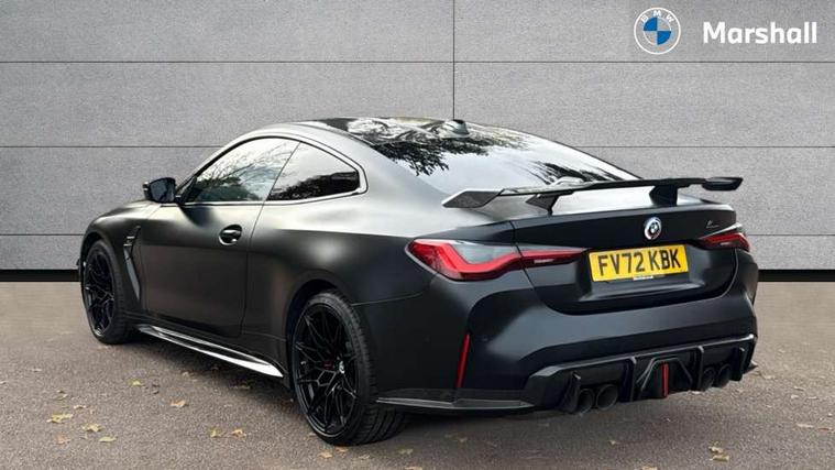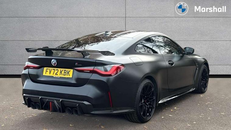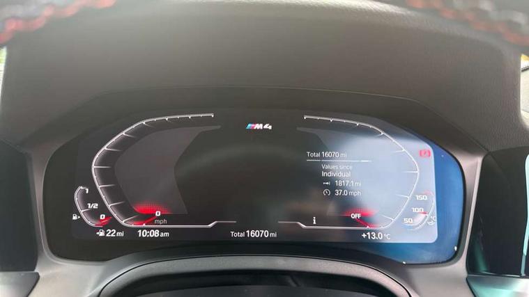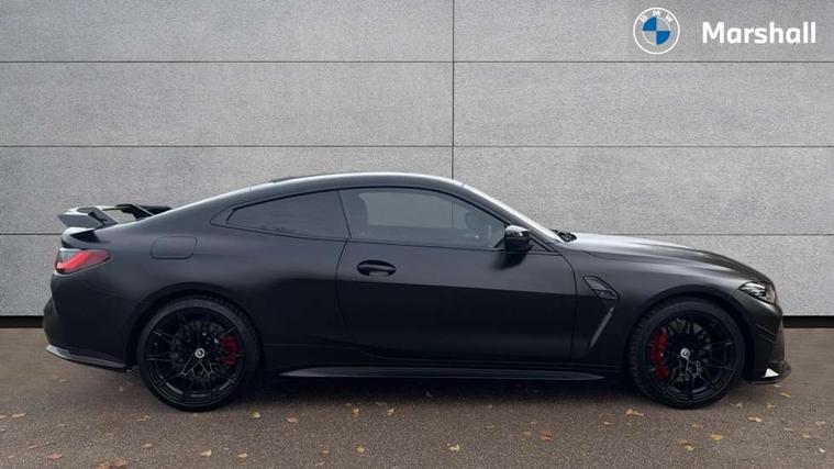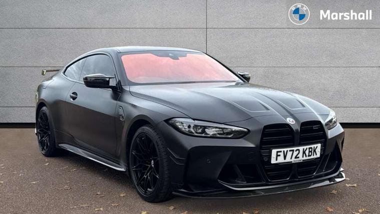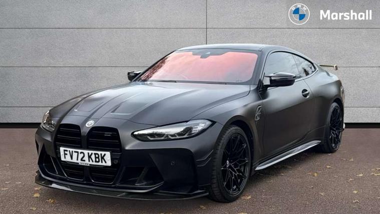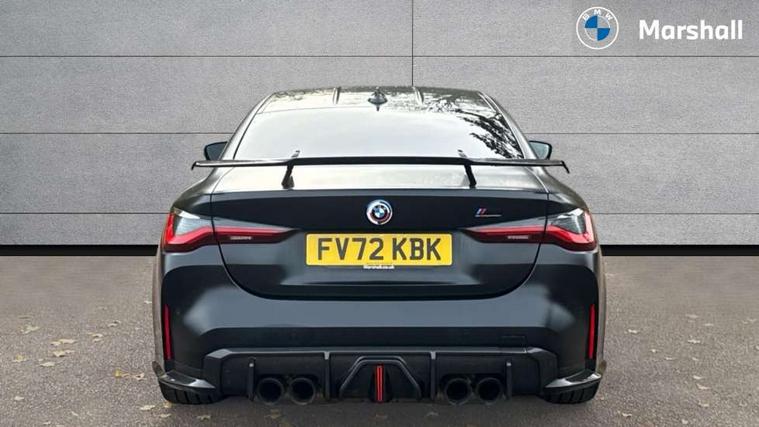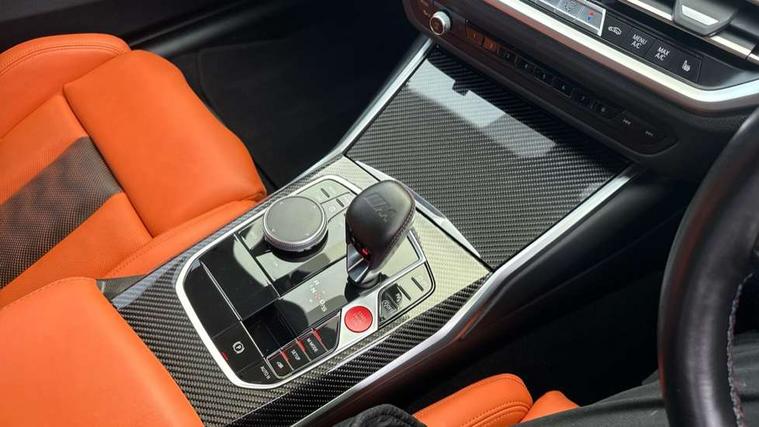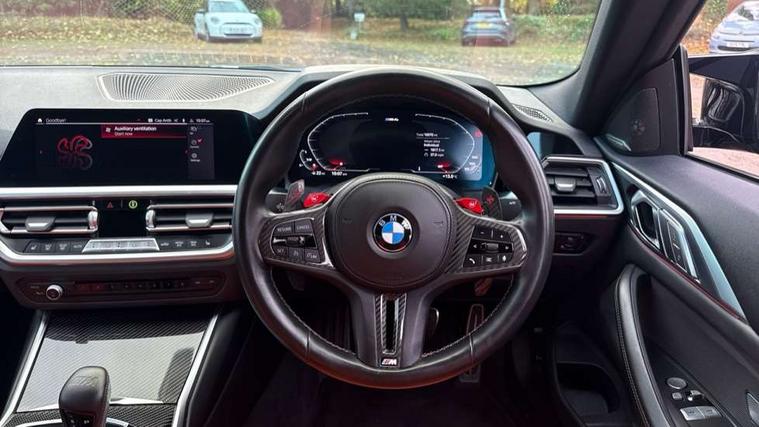 Active guard plus, Automatic start/stop system, BMW ConnectedDrive online services, BMW iDrive controller on centre console, BMW legal emergency call, BMW Live Cockpit Professional sat nav system with 12.3" instrument display and high resolution control display, BMW Teleservices, Brake pad wear indicator warning light, Condition based service, Connected drive services, Door/boot open warning light, Driving experience switch, Electric Power Steering (EPS) with Servotronic, Enhanced bluetooth with wireless charging, Head up Display, Instrument cluster with extended contents, Lights on warning, M drive buttons, Oil sensor for level and grade, warning by check control system, Oil temperature gauge, On board computer, On board diagnostics, Optimum shift indicator, Outside temperature display, Pull away assistant, Run flat indicator, Service interval indicator, Shifting point display, Speed limiter, Variable sport steering, Wi-Fi hotspot, Adaptive M Sport suspension, Double joint spring strut front axle, M Drive Professional including track mode, laptimer, traction control & Drift analyser, M Sport differential, M steptronic sport transmission with drivelogic, Safety battery terminal clamp, 8 programmable favourite buttons, Auxiliary point for auxiliary devices, BMW professional radio/CD/MP3, DAB Digital radio, Harman/Kardon loudspeaker system, Acoustic laminated side glass, Auto dimming driver's door mirror, Auto dimming rear view mirror, Automatic headlights + automatic windscreen wipers, Black chrome exhaust tailpipes, Black model designation badges, BMW high gloss shadow line with extended contents, BMW Individual shadowline lights, Body colour bumpers, Body colour door handles, Carbon fibre reinforced plastic (CFRP) roof, Day time running light, Door mirror integrated indicators, Door sill finishers with aluminium inserts, Dynamic brake lights, Electric adjustable heated door mirrors, Electric folding door mirrors, Follow me home headlights, Front and rear bumper system, Front electric windows with open and close fingertip control, anti trap facility and comfort closing, Headlight beam throw control, Heat protection, sun protection glazing, Heated washer jets, High beam assistant, High gloss black frameless kidney grille with M badge, LED number plate light, LED tail lights with 3D L-shaped LED light design, M designation, Mirror glass aspheric on driver's side, convex on passenger side, Rain sensor, Rear boot, Rear fog lights, Rear reflectors, Reversing light, Shark fin roof aerial, Third brake light, Visible VIN plate, Welcome lighting, 2 cupholders in front centre console, 2 rear head restraints, 2 x 12 V Power sockets (luggage compartment and front centre console), 2 x USB Type C ports for charging and data transmission in front centre console, 2 x USB Type C ports for charging in rear centre console, 40:20:40 split folding rear 2 seat bench with loading system, Ambient lighting, Anthracite headlining, Battery in luggage compartment, Carbon fibre centre console incl. cover for cupholders, Carbon fibre decorative steering wheel finishers, Carbon fibre shift paddles, Carbon fibre strip in instrument panel on front passenger side, Centre console armrest with storage compartment, Compartment in front of cupholder, Driver/passenger sunvisors with illuminated vanity mirrors + covers, Electric front seats + driver memory, English handbook, Floor mats in velour, Footwell lighting, Front and rear door exit lights, Front door storage bins with bottle holder, Front interior light, Front isofix attachment + airbag deactivation, Front seat backrest width adjustment, Front seats lumbar support, Front/rear door armrests, Gearshift lever with embossed M badge, Heated front seats, Height adjustable front headrests, Interior mirror lighting, Isofix on 2nd row outer seats, Lockable/illuminated glovebox, Luggage compartment lighting, Multifunction steering wheel, Rake/reach adjustable steering wheel, Single front passenger seat, Storage compartment in rear doors, Storage tray and compartment with cover in centre console, Three zone automatic air conditioning, Toolkit located in luggage compartment, Additional storage compartment pack - M4, Connected package professional - M4, High gloss shadowline exterior trim pack - M4, 4 x 3 point seatbelts, ABS/EBD, Automatic Stability Control (ASC), Brake energy regeneration, Brake fade compensation, Compound structure brake discs, Cornering brake control (CBC), Crash sensor, Curtain airbags, Driver/Front Passenger airbags, Dry braking, Dynamic brake control, Dynamic Stability Control with M Dynamic mode, Dynamic Traction Control - DTC, Electromechanical parking brake, Electronic differential lock control (EDLC), Front and rear head airbags, Front seat side impact airbags, Front seatbelt pretensioners + load limiters, Hill start assist, M Sport seat belts, Seatbelt warning, Side impact protection, Two tone horn, Tyre pressure sensor, Warning triangle and first aid kit, Centre lock switch, Closing system with central locking, Digital key, Electronic immobiliser, Remote central locking, Thatcham cat 1 remote alarm, Vehicle Key with 4 buttons including the integrated key, Galvanic finish to control surrounds, High gloss black interior trim, Tyre repair kit,