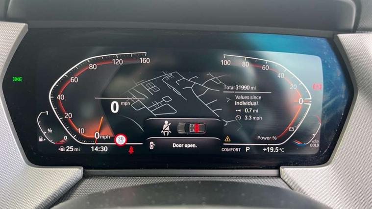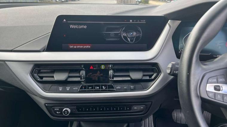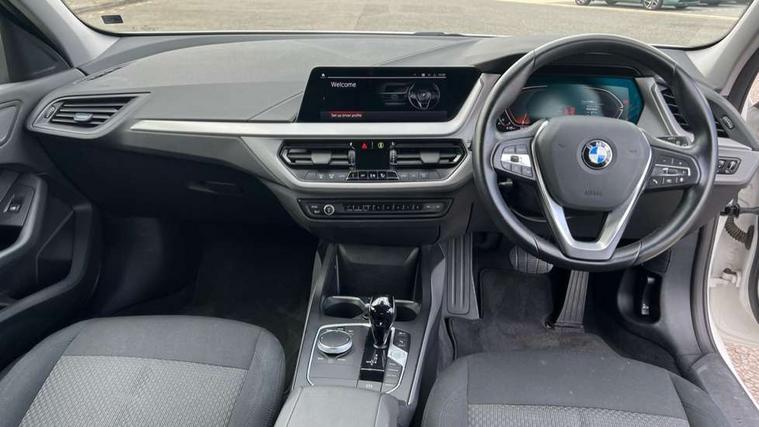 Active guard plus, Attentiveness assist, BMW ConnectedDrive online services, BMW Teleservices, Check Control warning system for monitoring of lights and door/luggage compartment open warning, Cruise control with brake assist, Eco pro mode, Electric power steering with Servotronic steering optimised at all speed ranges, Front axle single joint with specific axle kinematics to minimise drive influences on steering + provide increased rigidity agile driving behaviour, Integrated owners handbook, Lane departure warning system, Oil sensor for level and grade, On board computer, Optimum shift indicator, Personal Profile, Pull away assistant, Rigidly mounted rear subframe - Multi link construction with separate spring / damper configuration and excellent driving characteristics, Speed limit Info including no-overtaking indicator, Speed limiter, Aluminium lightweight construction, Anti roll bar front and rear, Balancer shaft, Double VANOS twin scroll turbocharging system, Drive Performance Control, Electronic differential lock, High precision injection, Petrol Particulate Filter, Suspension with twin tube gas filled shock absorbers with degressive characteristic curve, VALVETRONIC engine management, DAB Digital radio, Auto dimming rear view mirror, Automatic windscreen wipers and automatic headlight, Body colour door handles, Body colour mirror caps, Chrome exhaust twin tailpipes round 90mm in left, Direction indicator side lights in exterior mirrors, Fading support, Follow me home headlights, Front and rear bumper system with replaceable deformation elements, Front and rear electric windows with open and close fingertip control, anti trap facility and comfort closing, Front door sill finishers in black plastic with BMW designation, Green tinted heat protection glazing, Heated, electrically adjustable exterior mirror aspheric on driver side, convex on passenger side, High level third brake light, Integrated front windscreen with washer jets, Kidney grille with chrome frame with 14 High-gloss Black struts, LED daytime running lights, LED eyebrow turn indicators, LED front fog lights, LED Headlights, Lightweight engineering, Manual headlight beam throw control, Manual headlight levelling, Matt black air guide grilles, Matt black roof moulding, B pillar finisher and wheel arch trim, Matt black window frame, Matt black window recess finisher, Model designation on electric bootlid, Nearside reverse light in rear light cluster, Preparation for high beam assistant, Rear fog lights, Rear side wing doors, Rear window wiper, Shark fin antenna, Trailer stabilisation logic, Visible VIN plate, Welcome lighting, 12V power socket in front centre console with blanking plug, 3 rear seat head restraints, 3 seat bench in 2nd row, 3 spoke sports leather steering wheel in black leather with black stitching and decorative finisher in pearl chrome, Black boot net with lashing eyes, Cargo function on 2nd seat row, Child seat ISOFIX attachment for two outer rear seats and front passenger seat with anchorage points, Conditioned based service, Folding rear clothes hook, Four grab handles integrated in roof lining, Front and rear door pockets with bottle holders, Front and rear side armrest integrated into door trim, Front armrest, Glove compartment, Height adjustable front head restraints, Luggage compartment for bag hooks on left and right, foldable luggage compartment liner and four lashing eyelets, Manual adjust steering wheel, Multi-function controls for steering wheel, Single front passenger seat, Single zone automatic air conditioning, Storage compartment in centre console, Sun visors with vanity mirrors and insert tab, Two front centre console cupholders, Velour floor mats, BMW live cockpit professional pack- 1 Series, Connected pack professional - 1 Series, Interior lights pack - 1 Series, 2 tone horn, 3 point seatbelts on all seats, front pyrotechnic belt tensioners, stopper and belt force limiters, rear coded belt buckles, Airbags - Front driver/passenger, front and rear curtain head protection, front side, manual deactivation of front passenger airbag, Anti lock braking system (ABS) with brake assist, BMW emergency call, Brake drying, Braking readiness, Child proof locking system in rear door, City braking function, Comfort modes, Cornering brake control, Crash sensor activating central locking release, hazard warning lights, fuel cut off, interior lighting + activation of safety battery terminal clamp, Driver and front passenger seat belt security check, Dynamic stability control + (DSC+), Dynamic Traction Control - DTC, Electrically operated hand brake including automatic hold function, Front and rear disc brakes, Seatbelt warning, Side impact protection, Tyre pressure monitoring system, Warning triangle and first aid kit, Central locking switch for all doors, fuel filler cap and luggage compartment, Deadlocking function system to all doors, Drive away locking system on all doors and luggage compartment with de-activated in iDrive settings, Locking wheel bolts, Remote central locking with two Integrate key, one button for opening and closing all lock, open and close window, button for open luggage compartment, Start/stop button illuminated in centre console with keyless engine start and auto start stop deactivation button, Thatcham Cat.1 alarm and immobiliser, Wheel slip limitation close to the actuator (ARB), Quartz Silver matt interior trim, Electrically powered 12V compressor, Reduced rolling resistance tyres,