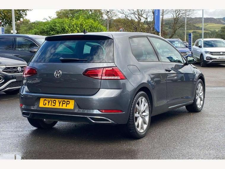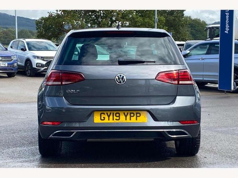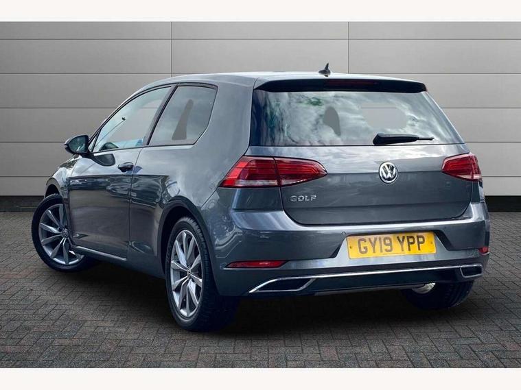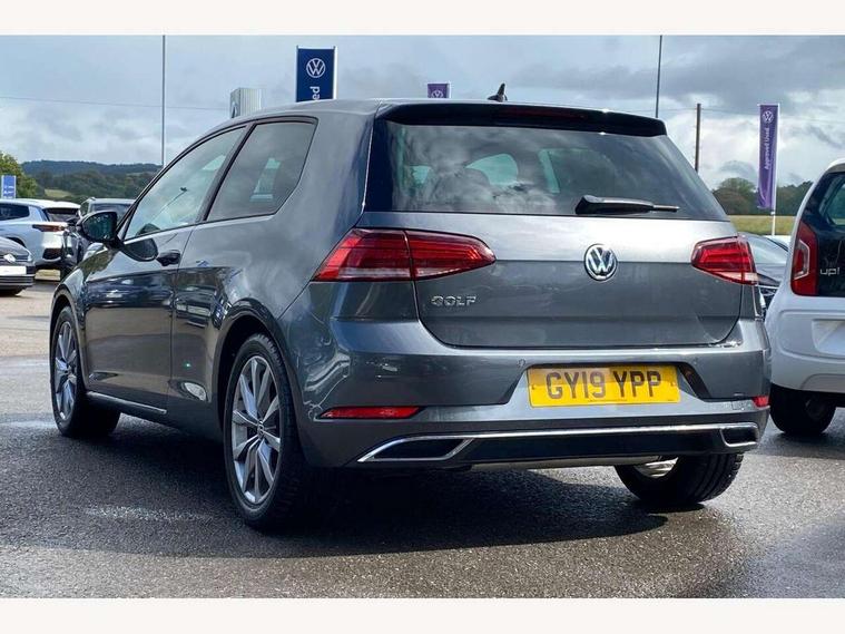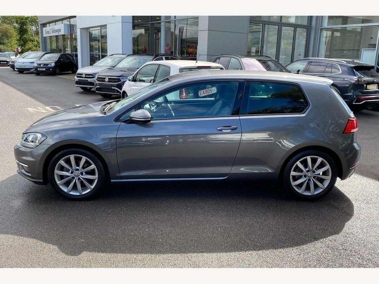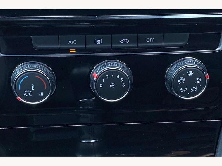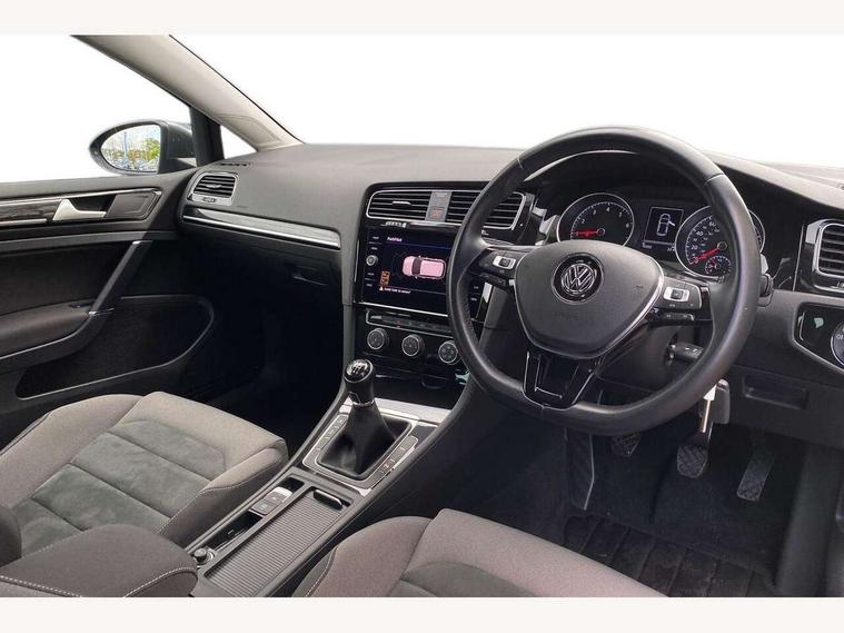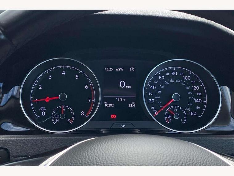 'Lights On' Reminder warning buzzer, ACC - Adaptive cruise control with front assist, forward collision warning, distance monitoring, city emergency brake and speed limiter, Bluetooth telephone and audio connection for compatible devices, Brake pad wear indicator warning light, Driver alert system, Driver profile selection, Driving Mode Selection with four preset modes - Eco, normal, sport or individual modes, Instrument cluster in white, Multifunction computer with visual gear change recommendation for fuel consumption, Power assisted speed sensitive electro-mechanical steering, Push tank flap, Speed limit display, Speedo, rev counter, electronic odometer, trip, service interval display, exterior temperature and fuel gauge, Stop/start system, Warning buzzer and light for front seatbelts unfastened, Battery regeneration during braking, Lowered sports suspension, XDS electronic differential lock, Composition media system, DAB Digital radio receiver, MP3/WMA compatability, Multi device interface (MDI) with USB connection, Premium USB cable in choice of either Apple or Android smartphone compatibility, SD card slot, SMS Functionality, USB and SD card connectivity, Volkswagen media control, Black front air intake and radiator grille with chrome insert, Black rear diffuser, Body colour bumpers, Body colour door handles, Body colour door mirrors with integrated indicators, Dusk sensor + automatic driving lights, Electric front windows, Electric rear windows, Electrically adjustable and heated door mirrors, Fully galvanised body, Heated rear windscreen, Hidden exhaust pipe, High level 3rd brake light incorporating LED Technology, LED daytime running lights, LED front fog lights with static cornering light function, Rear fog lamp, Rear tinted glass 65% light absorbing from B pillar backwards, Rear window aerial, Rear window wash/wipe with intermittent wipe, Reflectors in all doors, Tailgate with integrated rear roof spoiler, Windscreen wipers/ intermittent wipe + 4 position delay, 12V socket in luggage compartment, 3 rear headrests, 4 load lashing points in luggage compartment, 60/40 split folding rear seat backrest, Bag hook in luggage compartment x 2, Cooled glovebox, Dust/pollen filter, Easy entry slide seats (access to rear seats), Front + rear carpet mats, Front centre armrest with storage compartment and two rear air vents, Front seat back storage pockets, Grab handles front x 2, rear x 2 with integrated coat hooks, Height and reach adjustable steering wheel, Illuminated vanity mirrors, Instrument lighting white adjustable panel illumination, Interior light delay, Isofix preparation for 2 rear child seats, Load through provision with rear centre armrest and cupholders x2, Luggage compartment lighting, Overhead storage box, Pearl grey headlining, Storage box in luggage compartment, Storage compartment in roof console with cover, Storage compartments in front doors, Storage compartments in rear doors, Stowable luggage compartment cover, Sun visors, Variable boot floor, height adjustable and removable, Ambient lighting pack - Golf, Convenience Pack - Golf, Light and Sight pack - Golf, Mirror pack - Golf, 3 rear three point seatbelts, Airbags - Driver's and front passenger's, curtain airbag, Driver's knee, front side impact and passenger's airbag deactivation switch, Anti-lock Braking System (ABS) with Hydraulic Brake Assist (HBA), Automatic post collision braking system, Child locks on rear doors, Driver/Passenger optimised head restraints, Electronic parking brake with auto hold, Electronic stability control (ESC) including Electronic differential lock (EDL) and ASR (Traction control) with deactivation via infotainment system, Front ventilated disc brakes and rear disc brakes, Pre crash preventive occupant protection, Three point height adjustable front seatbelts with tensioners, Tyre pressure loss indicator, Alarm with interior protection and deactivation via infotainment system, Electronic engine immobiliser, Remote central locking with 2 remote folding keys, Chrome plated air vent surround, Chrome plated electric mirror adjustment light switch surround, Piano black centre console, Tumbler decorative inserts, Steel space saver spare wheel,