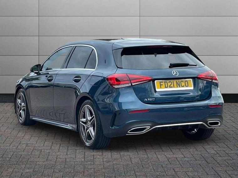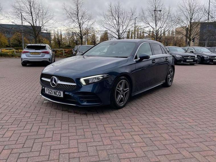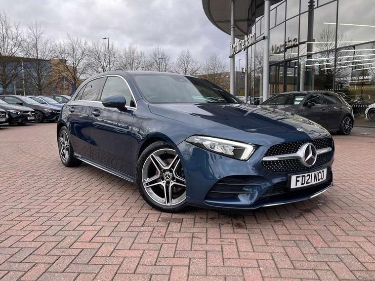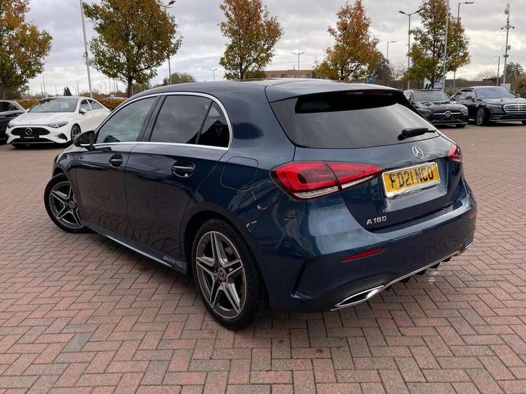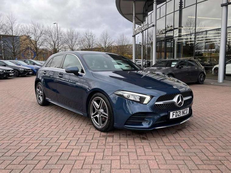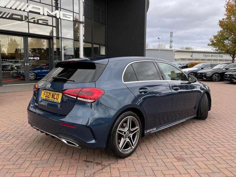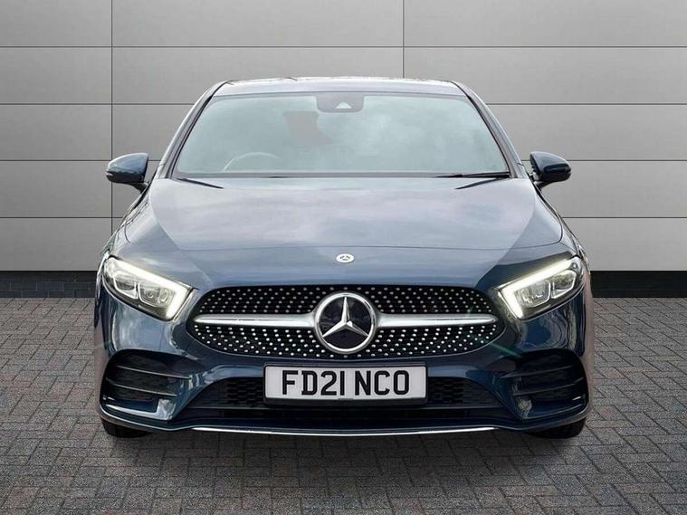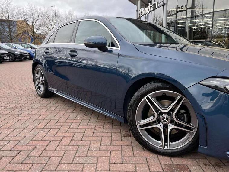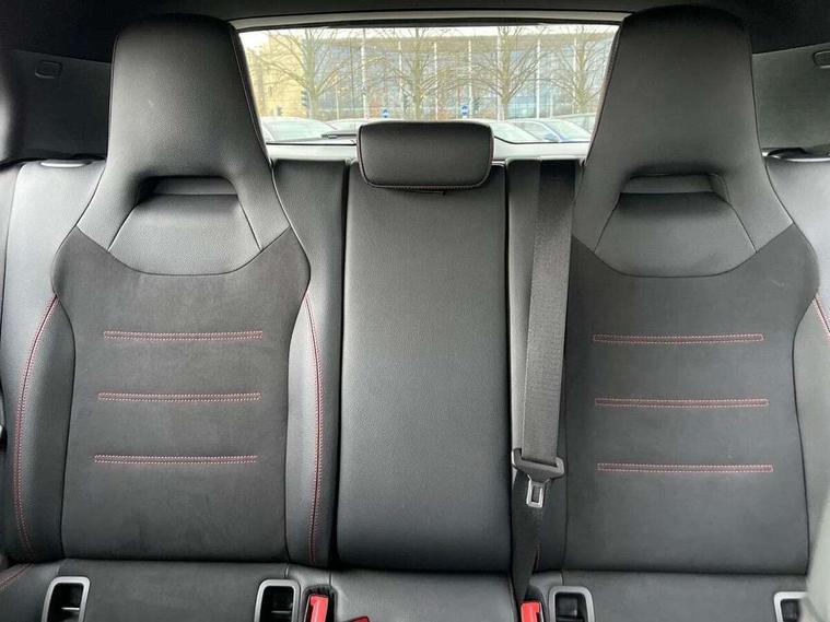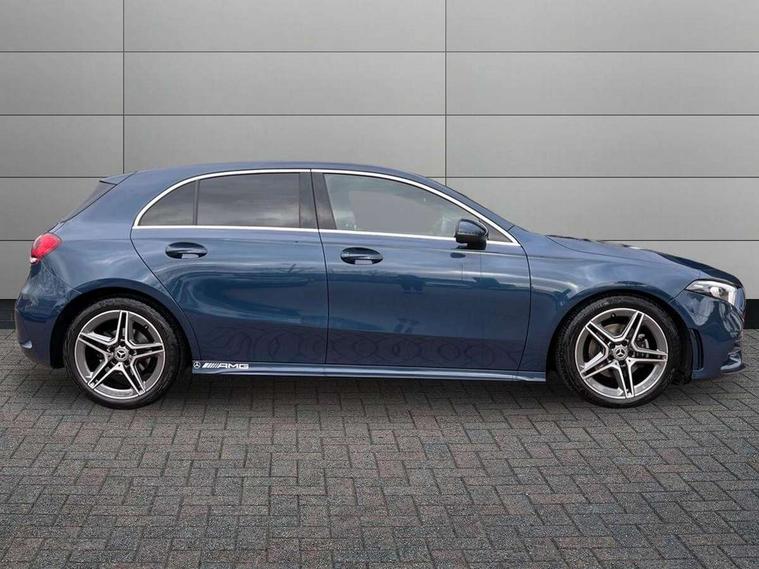 180 degree rear view camera with parking guidelines, 7" colour screen in instrument panel, 7" touchscreen media display, Attention assist, Brake pad wear indicator warning light, Car wash mode, Cruise control + speed limiter, Direct steering, Dual bluetooth interfaces, DYNAMIC SELECT with a choice of driving modes (ECO, Comfort, Sport and Individual), ECO start/stop function, Fluid level warning indicator for fuel, oil, coolant and washer fluid, Hard-disk navigation, Hey Mercedes Voice activation, Lamp failure indicator, Mercedes me connect including emergency call system, accident recovery, breakdown and maintenance management, Mercedes me remote services, Outside temperature gauge, Owners manual in English, Pre-installation for private car sharing, Preinstallation for Mercedes Benz link, Service indicator (ASSYST), Speed sensitive power steering, Trip computer, Lowered comfort suspension, Rear axle torsion beam, 2 USB ports (type C) in rear stowage compartment and one in front of center console, 6 speakers, DAB Digital radio, MBUX multimedia system with DAB digital radio and touchpad including satellite navigation, Mercedes-Benz sound system - 100W, 4 Electric Front and Rear windows, Adaptive brake lights, AMG bodystyling - Front apron with splitter in chrome, rear apron with chrome trim and chrome visible trim elements in tailpipe, Black weather strip, Body colour bumpers, Body colour door handles, Body colour side skirt, Body coloured door mirrors, Chrome beltline trim, Diamond radiator grille with chrome pins and silver louvre + chrome insert, Electric adjustable and heated door mirrors with integrated LED side indicators, Exhaust system - Twin visible tailpipes in polished stainless steel, Headlamp assist automatic headlamp activation, Heated glass rear windscreen + timer control, LED high performance headlamps with integrated LED daytime running lights, LED tail lamp, LED third brake light, Privacy glass, Radio aerial, Rain sensing windscreen wipers with two sensitivity settings, Rear fog lights, Rear wiper, Window line trim strip in chrome, 3 Spoke flat bottom leather multi function steering wheel with perforated leather in grip area, 40:20:40 split folding rear seats, Artico man-made leather/Microfibre Dinamica upholstery with red contrast stitching, Auto Mercedes-Benz child seat recognition sensor, Black air vents with surround in silver chrome, Black roof lining, Brushed stainless steel sports pedals with rubber studs, Controller on centre console with chrome surround, Floor mats with stitched edging and AMG lettering, Front centre armrest with storage compartment, Front door sills with Mercedes Benz lettering, Front seat backs luggage nets, Front seat cushion length adjustment, Heated front seats, Height/reach adjustable steering column, Interior mirror with reading lamps in black and frameless, Manual height adjustable front seats, Rear head restraints, Seat occupancy sensor for front passenger seat, Sports seats with integrated headrests, Sunvisors with illuminated vanity mirrors, Touchpad on center console, Twin front cupholders, Two zone thermotronic luxury automatic climate control, Light and sight pack - A Class, Seat comfort pack - A Class, 3 rear 3 point seatbelts, ABS with Brake Assist, Active bonnet, Active brake assist includes forward collision warning system with autonomous braking, Adaptive brake assist with hold function and hill start assist, Black seatbelts, Childproof locks manually operated for rear doors and electrically operated for rear power windows, Crash responsive emergency lighting, Driver and passenger head and side airbags, Drivers knee airbag, Dual stage driver/passenger airbags, Electronic parking brake, ESP curve dynamic assist, ESP with ASR, Front and rear seatbelt reminder, Front brake callipers with Mercedes Benz lettering, ISOFIX and top tether child seat fixing points in two outer rear seats, Tyre pressure monitoring system, Warning triangle and first aid kit, Window airbags, Alarm system/interior protection/immobiliser, Keyless Go, Remote central locking and crash sensor with emergency opening function, Urban guard vehicle protection system with immobiliser and interior protection, Dinamica microfibre trim in black, 18" AMG 5 twin spoke light alloy wheels in titanium grey with highsheen finish, Summer tyres, Tirefit sealant kit,