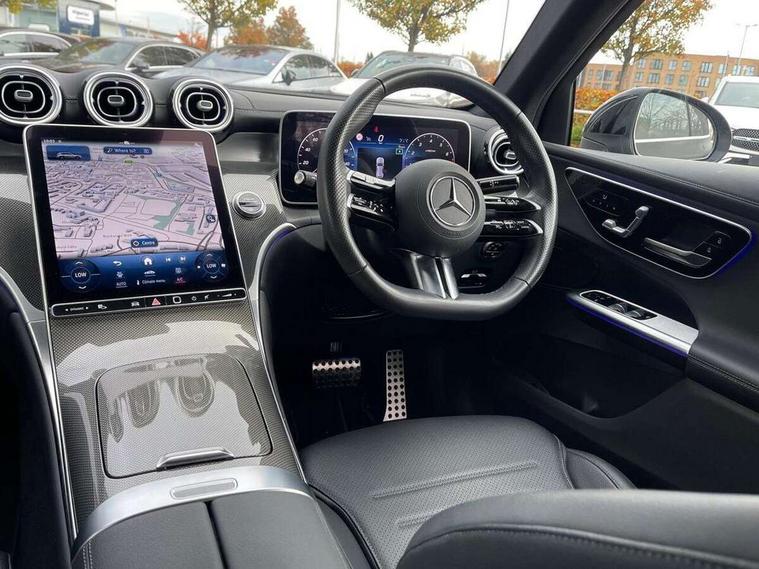 11.9" high resolution multimedia colour display, 12.3" Digital individually configurable instrument display, Acoustic presence indicator, Active lane keeping assist, Attention assist, Blind spot assist, Bluetooth interface for hands free telephone, Collision prevention assist plus, Cruise control with speedtronic variable speed limiter, Direct steer speed sensitive steering, DYNAMIC SELECT with a choice of driving modes (ECO, Comfort, Sport, Sport+ and Individual), Easy pack automatic powered tailgate, eCall emergency call system, ECO start/stop function, Fingerprint scanner, Fluorescent jacket for driver, Hard disc navigation, Instrument display in miles with English lettering, MBUX navigation premium, MBUX voice control activated by keywords "Hey Mercedes", Mercedes me connect, Outside temperature display, Remote boot release, Remote services, Service indicator (ASSYST), Smartphone integration, Speed limit assist, Status display for rear seat belts in instrument cluster, Traffic sign assist, Trip computer, Wireless charging, 48V Mild hybrid technology, 4MATIC permanent four wheel drive, 62 litre fuel tank, 9G TRONIC plus automatic transmission, Petrol Particulate Filter (PPF), Sport suspension, DAB digital radio tuner, MBUX extended functions, Mercedes benz sound system, Pre installation for Mercedes Benz Link, Adaptive brake lights, Adaptive high beam assist, Aluminium look running boards with rubber studs, Aluminium roof rails, AMG bodystyling front apron, rear apron and side skirts, AMG Line exterior, Auto headlights, Body colour bumpers, Body colour door mirrors, Electrically adjustable door mirrors, Front and rear electric windows, Headlight washers, Heat insulating dark tinted glass, Heated rear window, High level LED brake light, LED high performance headlamps with integrated LED daytime running lights, LED indicator lights, LED rear fog lights, LED tail lamp, Radiator grille with Mercedes Benz pattern and integreated Mercedes star and louvre in dark grey matt with chrome inlay and black frame, Rain sensor windscreen wipers, Range adjustable headlights, Rear side wing doors, Rear wiper, Two chrome plated tailpipe trim elements, Variable front intermittent wipers, Welcome and follow-me home light functionality, Wider wheel arch for AMG wheels, 3 seat bench in 2nd row, 40:20:40 split folding rear seats, Ambient lighting premium, AMG line interior, Artico man-made leather upholstery, Audio and onboard settings control on multifunction steering wheel, Automatic child seat recognition sensor, Black fabric roof lining, Black floor mats with AMG lettering, Double cup holder in centre console, Easy-pack removable load compartment cover, Electrically height/reach adjustable steering column, Front centre armrest with stowage compartment, Front head restraints, Galvanised steering wheel gearshift paddles, Heated front seats, Illuminated door sill panels with Mercedes Benz lettering, Illuminated glove compartment, Instrument panel and beltlines in ARTICO manmade leather in nappa look, Multifunction sports steering wheel in nappa leather, Rear centre headrest, Rear head restraints, Rear top tether child seat ISOFIX attachment, Single front passenger seat, Sports pedals with stainless steel surfaces and rubber studs, Sports seats, Sun visors, THERMATIC 2 zone automatic climate control, Anti theft protection package - GLC, Boot comfort package - GLC, Exterior chrome package - GLC, Interior chrome package - GLC, Interior lighting pack - GLC, Memory pack - GLC, Mirror pack - GLC, Parking package with reversing camera - GLC, Seat comfort package - GLC, Stowage space package - GLC, USB Package - GLC, 3 rear 3 point seatbelts, Active braking assist, Anti-lock braking system (ABS), ASR traction control, Automatic front passenger airbag deactivation, Black seat belts, Brake calipers with Mercedes-Benz lettering + perforated brake discs, Braking system with larger brake discs on the front axle, Child proof door locks, Dual-stage airbags - driver and front passenger, driver knee bag and window bags for driver, front passenger and rear passengers, Electronic parking brake, Electronic stability programme (ESP) with curve dynamic assist and cross wind assist, Front and rear seatbelt reminder, Front passenger seat occupancy sensor, Front seatbelt pretensioners, Hill start assist, Tyre pressure monitoring system, Warning triangle and first aid kit, Automatic door locking, Guard 360 degree vehicle protection plus, Interior protection/immobiliser, Keyless Go starting function, Remote central locking, Centre console in metal structure finish, Metal structure trim, 19" AMG 5 spoke aerodynamically optimised light alloy wheels in painted black with high sheen finish, Summer tyres, TIREFIT with tyre inflation compressor,