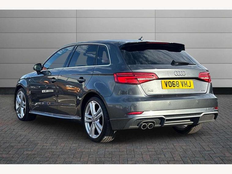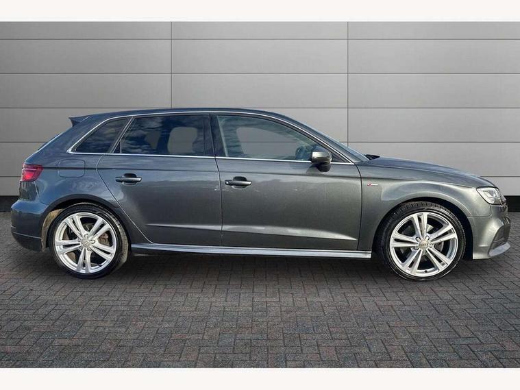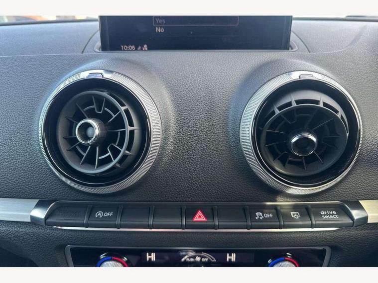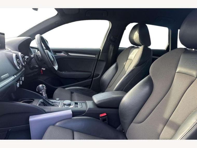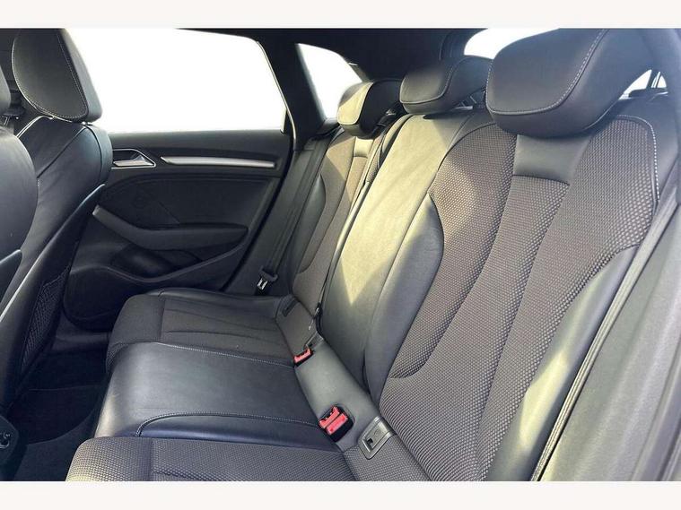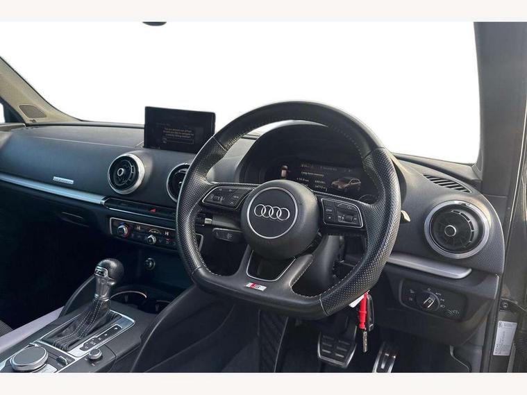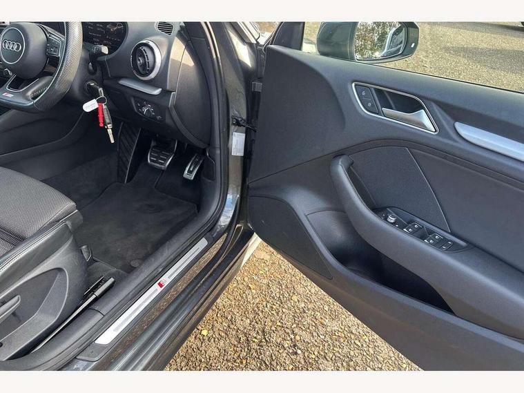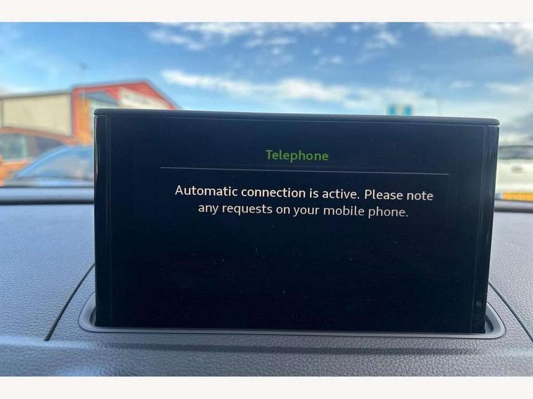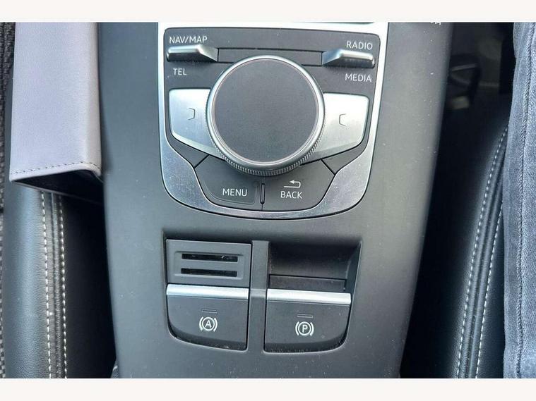 Audi connect, Audi drive select, Audi smartphone interface, Automatic start/stop system, Colour driver's information system display, Electro - mechanical power assisted steering, Electro-mechanical PAS, HDD satellite navigation system radio single CD/DVD player MMI control system, Mobile telephone preparation - bluetooth interface, Service interval indicator, Speed limit display, Voice control system, Diesel particulate filter, 2 USB ports, Audi music interface, Auxiliary input socket, CD player, DAB Digital radio, MMI radio plus with 7" colour MMI screen and MMI controller, Aluminium window trim, Auto dimming rear view mirror with light and rain sensors, Body colour bumpers, Body colour door mirrors, Body colour door mirrors with integral indicators, Body colour roof spoiler, Chrome exhaust tailpipes, Electric front windows, Electric operated/heated door mirrors, Electric rear windows, Electrically adjustable and heated door mirrors with integrated LED side indicators, Heated windscreen washer jets, Matt black radiator grille, Rear wiper, S Line body styling, Sport specific side air inlet grille and diffuser insert, 3 adjustable rear headrests, 3 spoke flat bottomed multi-function leather steering wheel, 4 lashing points to secure luggage, Adjustable front centre armrest, Black cloth headlining, Dual zone electronic climate control, Front and rear interior lights with delay, Front passenger seat isofix location point, Front sports seats, Front/rear floor mats, Height/depth adjustable steering column, Illuminated glovebox, ISOFIX child seat preparation+airbag deactivation, Jack and tool kit, Stainless steel pedals, Steering wheel gearshift paddles, Storage compartment in centre console, Storage compartment under front seats, Storage compartments in doors, LED interior light pack - A3/RS3, Non smoking pack - A3, Storage and luggage pack - A3/RS3, 3 point seatbelts on all seats, ABS/EBD, Active bonnet, Active front headrests, ASR, Curtain airbags, Driver and passenger side airbags, Driver/Front Passenger airbags, Drivers knee airbag, EDL, Electromechanical parking brake, ESC - Electronic Stability Control + traction control, Front passenger airbag deactivation, Manual rear child locks, Multi-Collision braking, Seatbelt warning, Tyre pressure warning, Warning triangle and first aid kit, Anti theft alarm, Anti-theft wheel bolts, Remote control central locking, Thatcham category 1 alarm + immobiliser, Aluminium air vent surrounds, Aluminium trim elements, Matt brushed aluminium inlays, Space saver spare wheel,