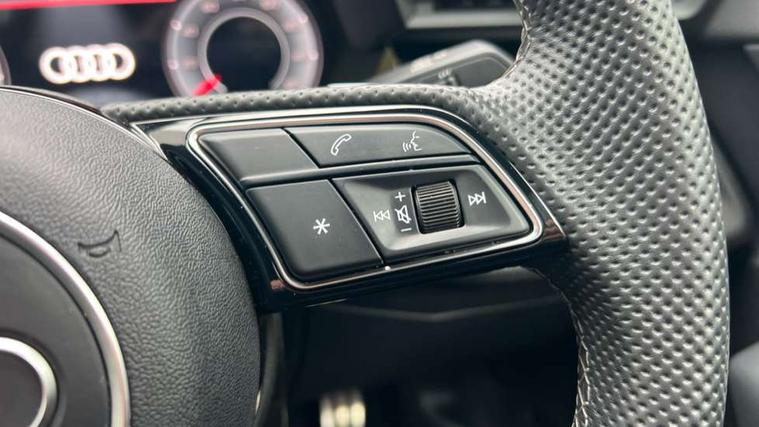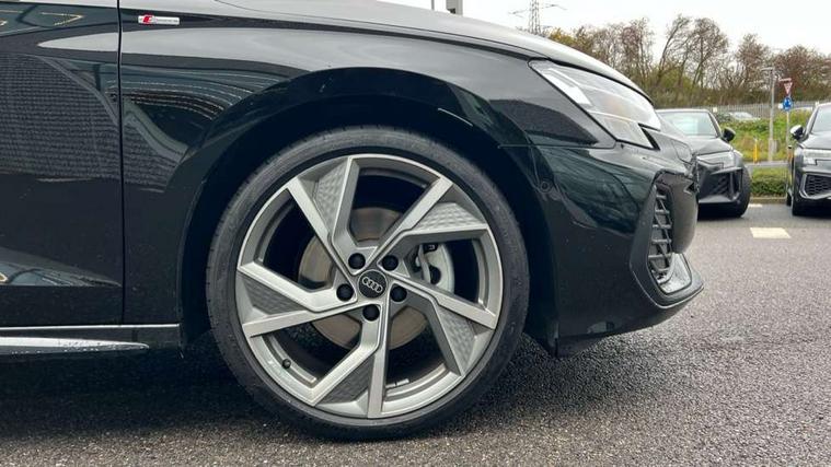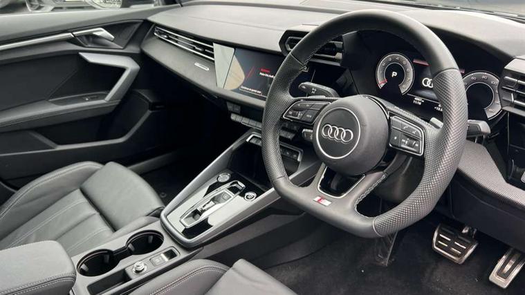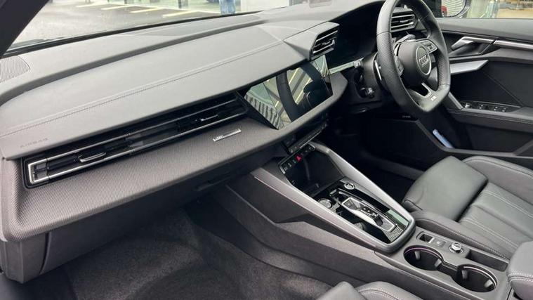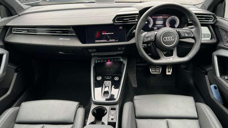 Adjustable speed limiter, Audi drive select, Audi smartphone interface with app store includes wireless Apple carplay, Android auto and Amazon alexa integration, Audi virtual cockpit plus - 12.3" full HD resolution dynamic digital instrument cluster, Automatic start/stop system with recuperation, Bluetooth interface, Camera based traffic sign recognition, Collision avoidance assistant, Cruise control, Distraction and Fatigue warning, e-Call (emergency call), Electromechanical power speed sensitive steering, Emergency assist, Lane departure warning system, MMI Navigation Plus with high resolution 10.1" colour touch screen display, Park Assist with parking system Plus, Service indicator, Trip computer, Voice control system with natural language interaction, Sports suspension, Audi Phonebox light with wireless charging, Audi sound system - 10 loudspeakers including centre loudspeaker and subwoofer, DAB Digital radio, USB ports with charging function in the rear, Acoustic glass windscreen, All weather light, Anthracite grey Audi rings (front and rear), Audi beam uses LEDs to project the Audi logo onto the ground as you exit your A3, Auto dimming frameless rear view mirror, Automatic dynamic range control, Black accents front and rear bumpers, Black accents in the area of the Audi single frame grille, Black accents window trims strips, Dipped beam, main beam, position light and turning light, Electrically adjustable/heated/folding/auto dimming door mirrors with integrated LED indications + kerb view function for passenger side, Exterior model badging, Front and rear side air inlets in grained matt black with dark liquid chrome frame, Front electric windows, Heat insulating glass windscreen, Illuminated door sills with aluminium inserts at the front with S logo, Intersection light, LED 3rd brake light, LED brake lights, LED daytime running x3, LED headlights with LED rear lights and dynamic rear indicators, LED rear number plate lights, LED reverse light, LED tail lights, Light and rain sensors, Manoeuvring light, Motorway light, Privacy glass - dark tinted rear window, rear door and side windows, Rear boot, Rear diffuser and grill in grained matt black with inlay in dark liquid chrome, Rear electric windows, Rear side wing doors, Static Cornering lights, 12V socket and storage compartment in front centre console, 3 seat bench in 2nd row, 3 spoke flat bottomed leather multifunction sport steering wheel with gear shift paddles, 3-zone deluxe automatic air conditioning, 4 way electrically adjustable lumbar support for driver and front passenger, 40/20/40 split folding rear seat bench, Black cloth headlining, Black front and rear floor mats, Front and rear centre armrest in artificial leather with contrasting stitching on armrests and instrument panel, Front and rear headrests, Heated front seats, Height and reach adjustable steering wheel, Manual boot compartment lid, Manually adjustable front seats, Rear centre armrest with cupholder, S badging on the steering wheel, Seat side bolsters, Single front passenger seat, Stainless steel pedals and front footrest in black, Twin leather upholstery with front sports seats S embossed logo, Aluminium interior elements pack - A3, 3x3 point rear seat belts, Driver and front passenger airbag with passenger airbag deactivation, Electronic Stabilisation Control (ESC) including ABS, ASR and EDL, First aid kit with warning triangle and 2 safety vests, Front side airbags with head airbags and interaction airbag, Hill hold assist, Pre-sense front with pedestrian and cyclist detection, Seatbelt monitoring, Tyre pressure loss indicator, Anti theft alarm, Anti-theft wheel bolts, Electronically operated child locks, Immobiliser, Remote central locking with safelock, Black dashboard,