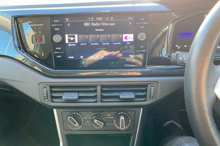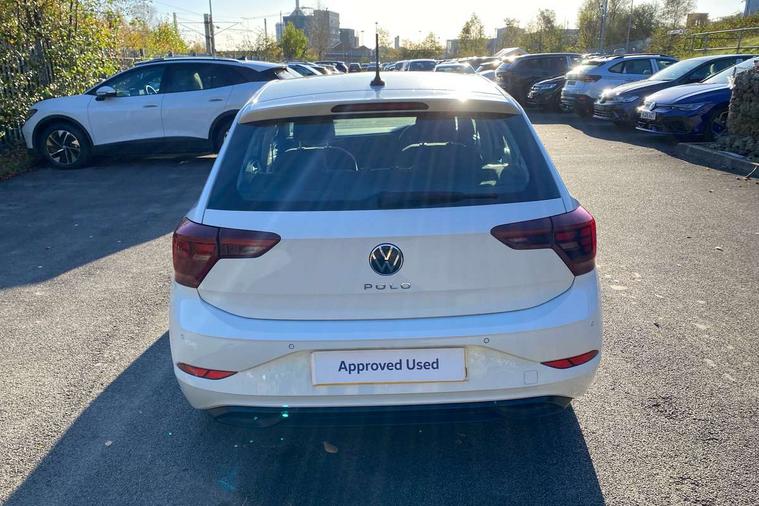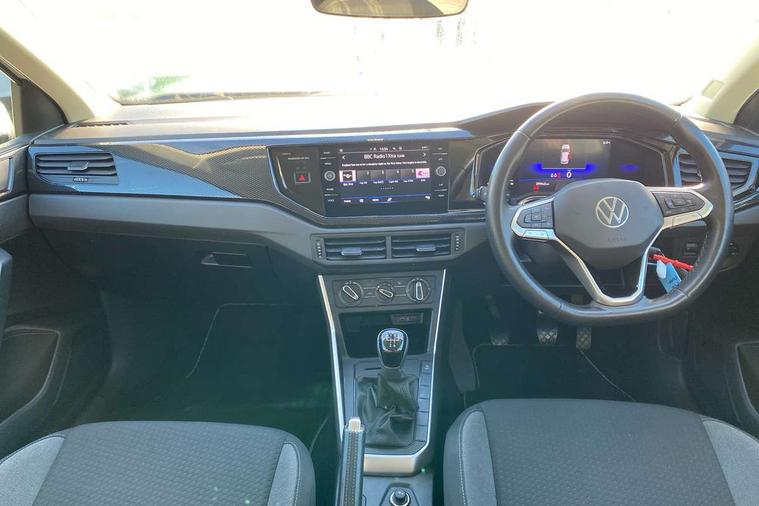 Adaptive cruise control without follow-to-stop and speed limiter, Bluetooth mobile phone interface, Driver alert system, Emergency call service, Front assist system, Power assisted speed sensitive steering, Preparation for We connect and We connect plus, Speedo and rev counter, electronic odometer, trip, service interval display and fuel gauge, Standard rear axle, Travel Assist - Lane keeping system and traffic jam assist, Travel assist including emergency assist, Trip computer, Warning signal and warning light for front and rear seatbelts not fastened, Washer fluid level indicator, Wireless app connect, Front wheel drive, Rear shock absorpion, Start-stop system with battery regeneration (recuperation - energy recovery during braking), DAB Digital radio, Diversity antenna for FM reception, Automatic dimming interior rear view mirror, Body colour bumpers, Body colour door handles, Body colour door mirrors, Electric front windows, Heat insulating darkened glass in side and rear windows, Heat insulating glass windscreen, Power folding adjustable/heated exterior mirrors and front passenger exterior mirror lowering function, Rain sensor, Rear electric windows, Rear fog light, Rear side wing doors, Rear windscreen washer and wiper with interval delay, Third brake light, 12V power socket in centre console, 2 front and 2 rear reading lights, 2 USB-C ports in the front, 2 USB-C charging sockets on the center console in the rear, 3 rear head restraints, 60/40 split folding rear seat and rear seat bench not split, Ceramique headliner, Chrome plated radiator grille inserts, air vent surrounds and light switch surrounds, Door and side trim panel, Driver and front passenger seat height adjustment, Driver/passenger sunvisors with illuminated vanity mirrors, Front centre armrest, Front seat backrest storage pockets, Front standard seats, Handbrake lever handle in leather, Hartley/Thomas cloth upholstery, Isofix child seat preparation easy-fit (for two outer rear seats, and front passenger seat) compatible with I-size, Leather trimmed gear knob, Luggage compartment cover, Luggage compartment floor, Luggage compartment lighting, Multifunction steering wheel, Single front passenger seat, Standard pedal cluster, Light and vision pack - Polo, 3 point height adj front seatbelts + pretensioners, 3x3 point rear seatbelts, ABS, Driver and front passenger airbag with front passenger airbag deactivation, Drivers and front passengers safety optimised head restraints, ESC (Electronic stability control) + EDL (Electronic Differntial lock) and ASR (Traction control), Extended and predictive pedestrian/ cyclist protection, Front curtain and side airbags with center airbag, Front disc brakes, Hill hold control, Manual child lock in rear doors, Rear drum brakes, Single tone horn, Tyre pressure loss indicator, Alarm with interior protection, Anti-theft alarm system with interior monitoring, backup horn, and towing protection, Anti-theft wheel bolts, Electronic engine immobiliser, Lava stone black gloss/matt decorative inserts in dash and front door panels, Low rolling resistance tyres,